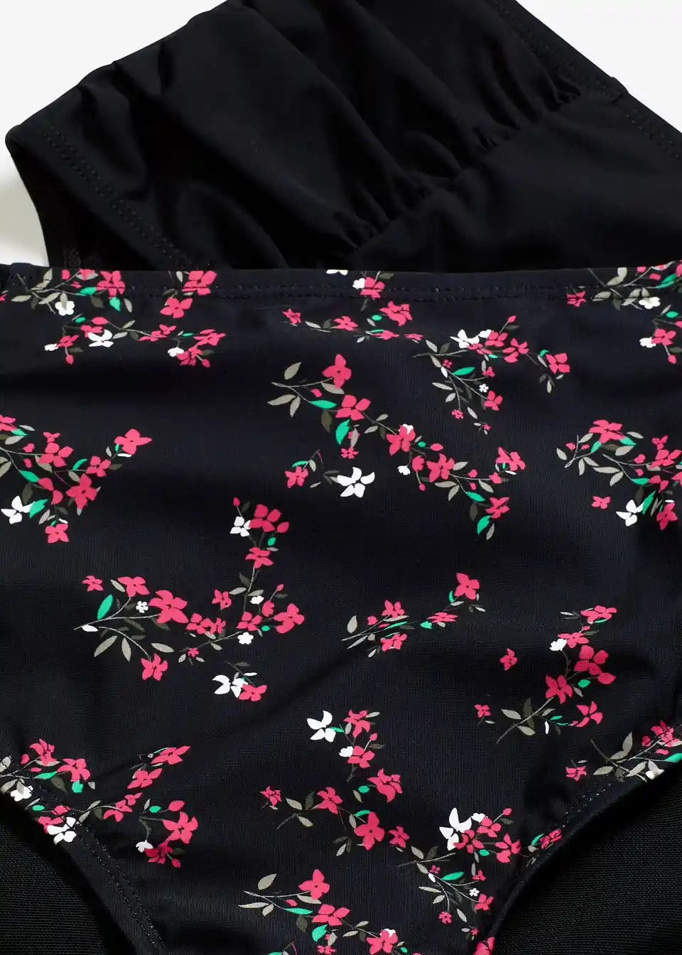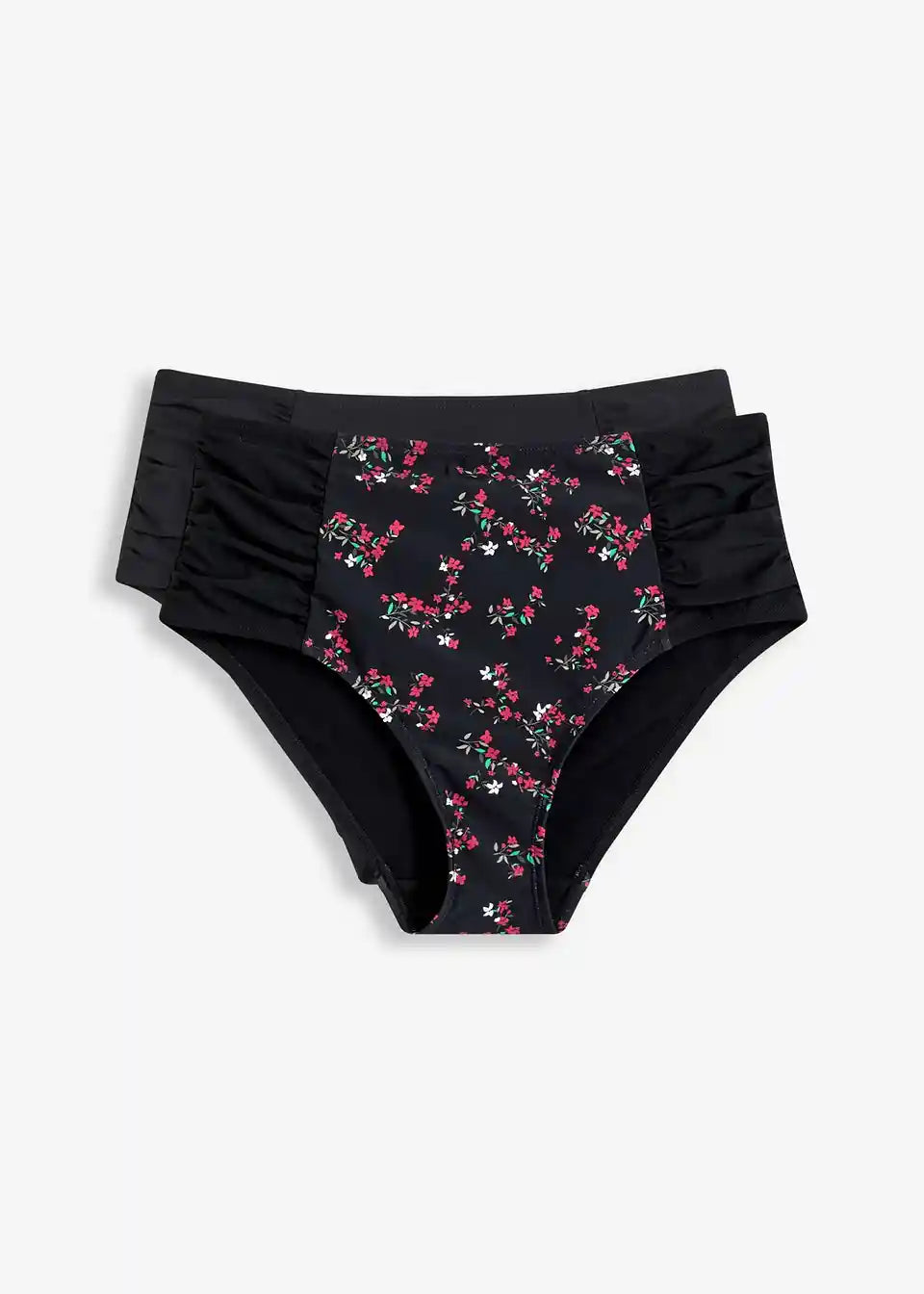 Elegantne shaping bikini hlačke v pakiranju po 2 kosa črna + črna s cvetličnim vzorcem