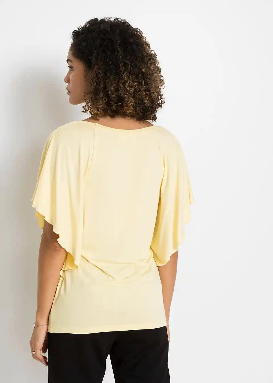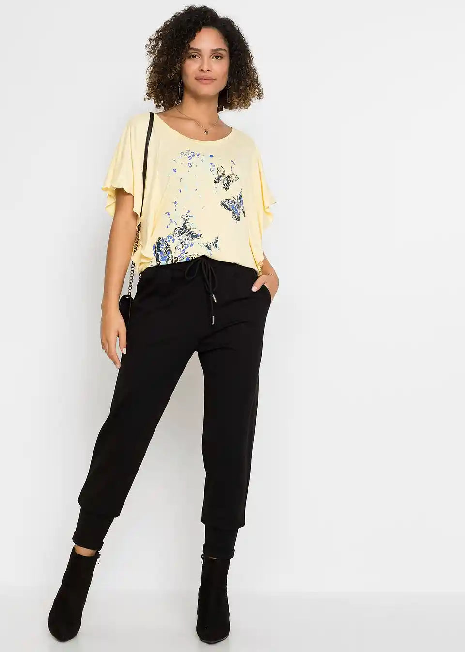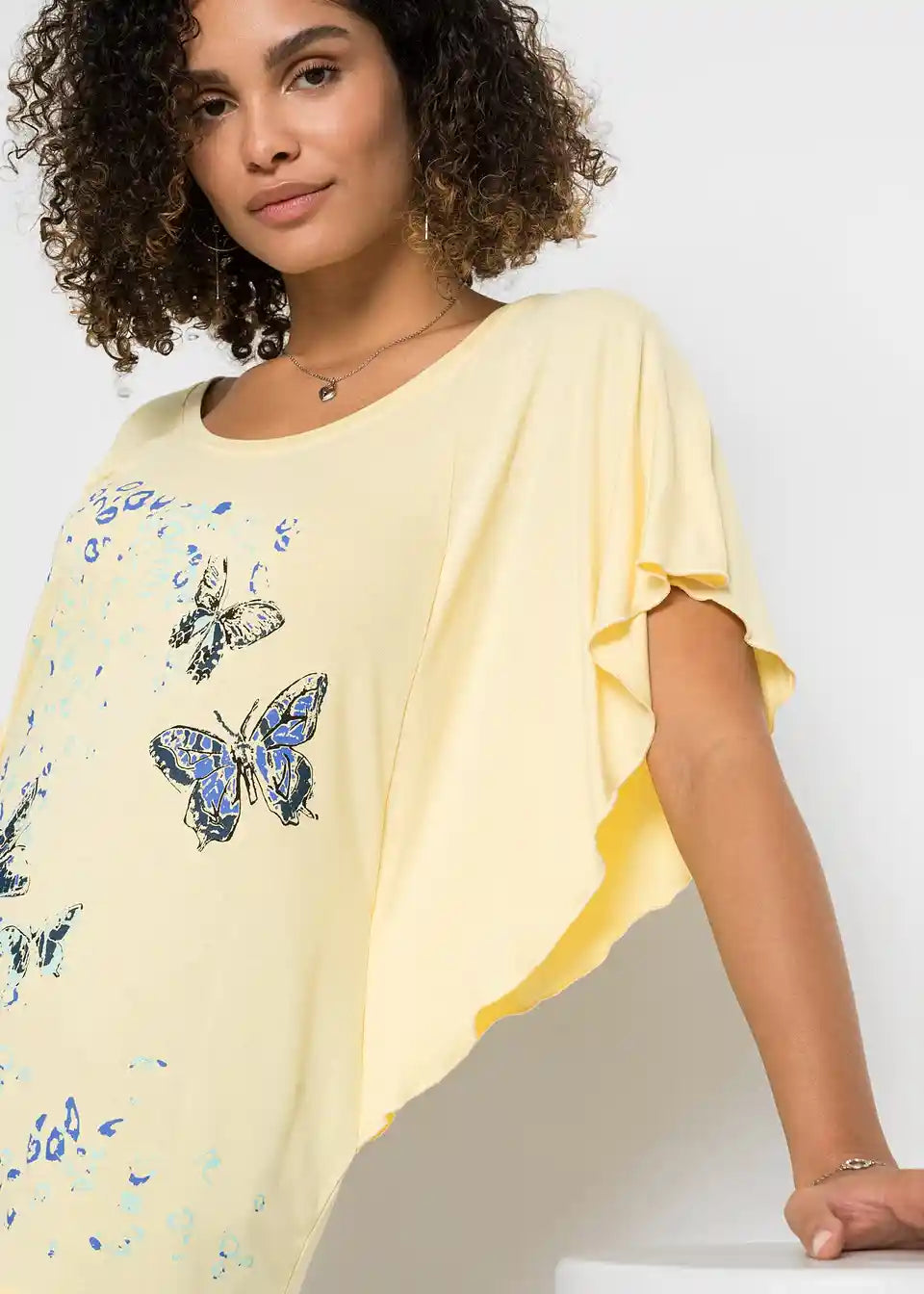 Iz kolekcije znamke BODYFLIRT prihaja ta privlačen netopirski shirt z okroglim izrezom. Različica z modnim metuljevim potiskom je prav tako elegantna kot enobarvni model. Poleti se k zgornjemu delu z netopirskimi rokavi in krojem, ki lepo pade, odlično prilegajo kratke hlače. V kombinaciji s stilskimi sandali in lepo torbico je videz za modno ozaveščeno damo popoln.