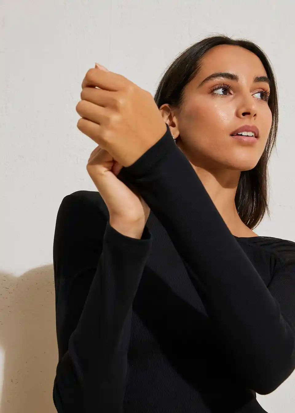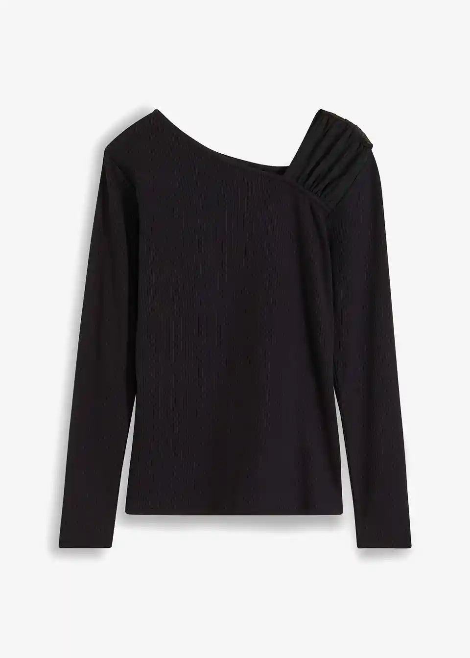 Modna majica z dolgimi rokavi z domiseljnim mrežastim vložkom na rami.