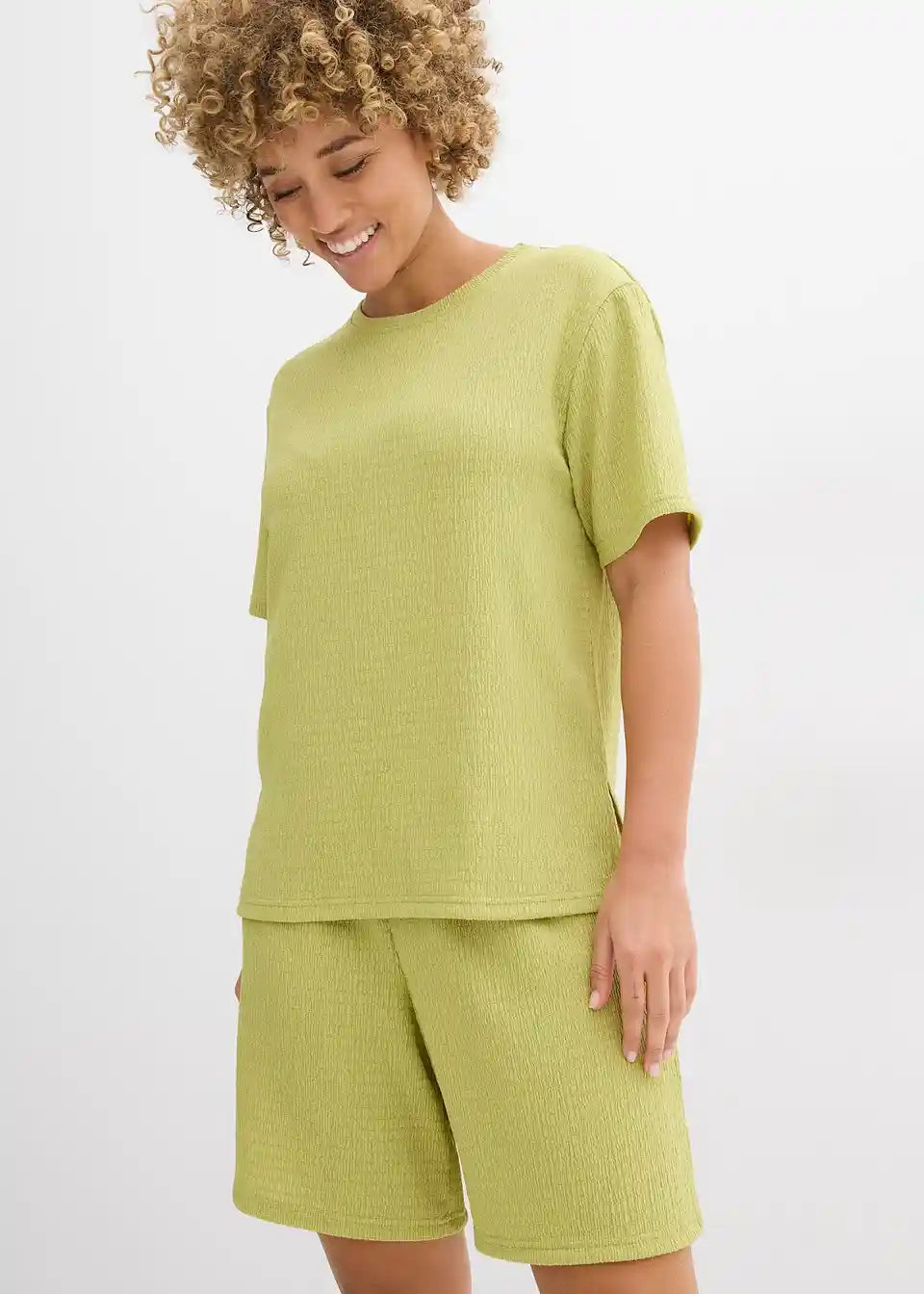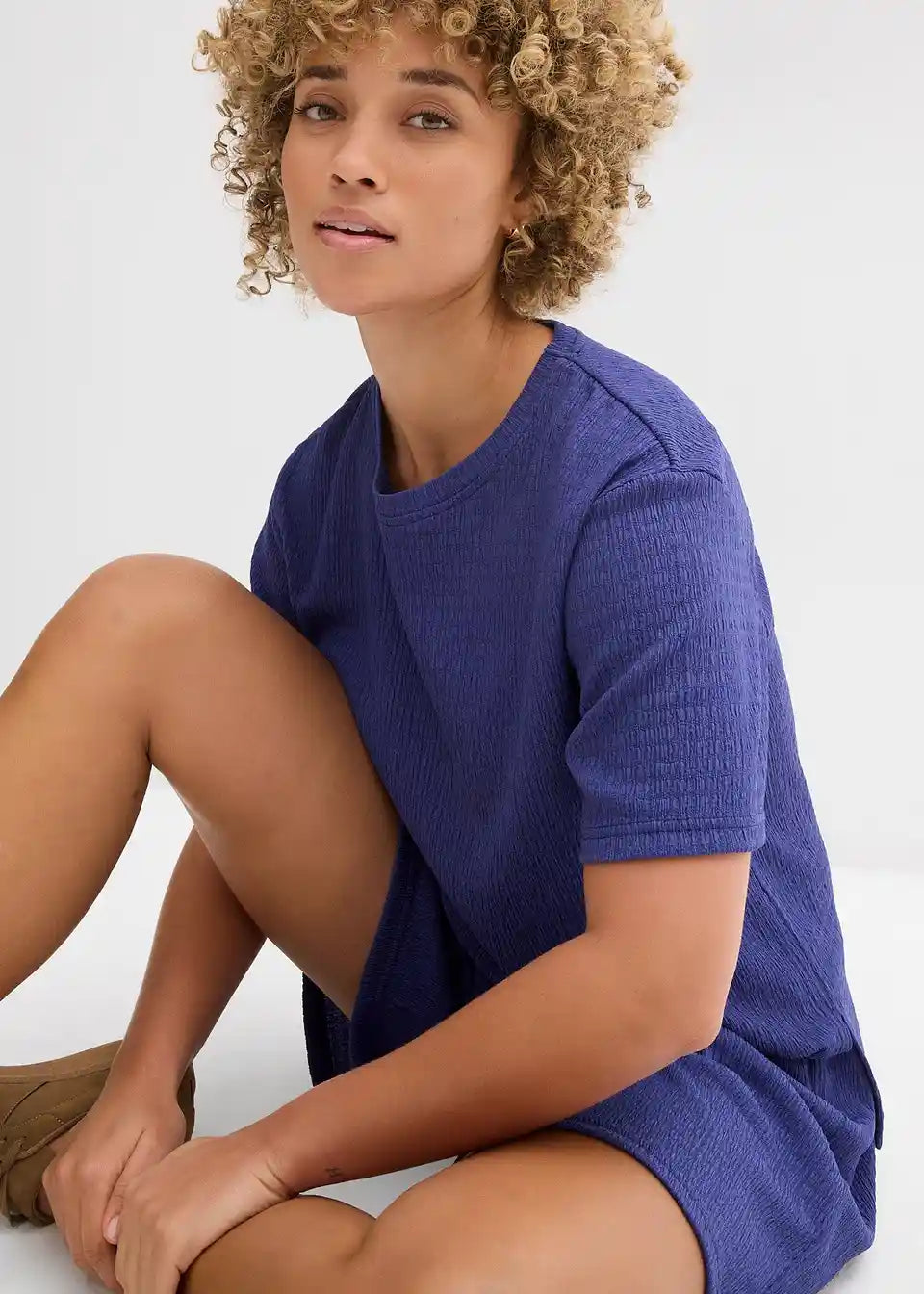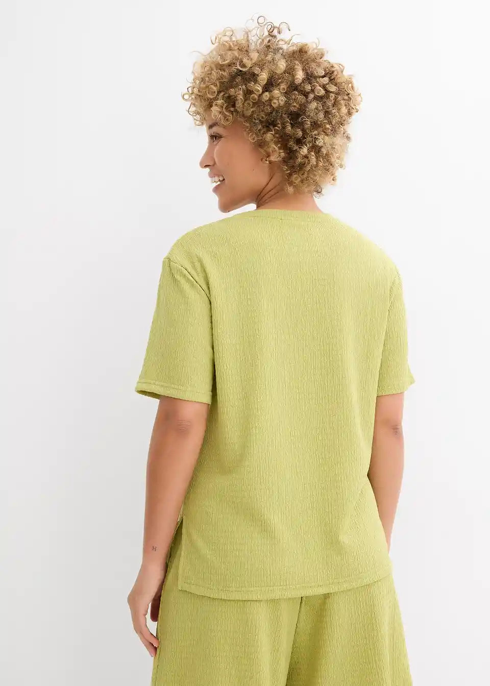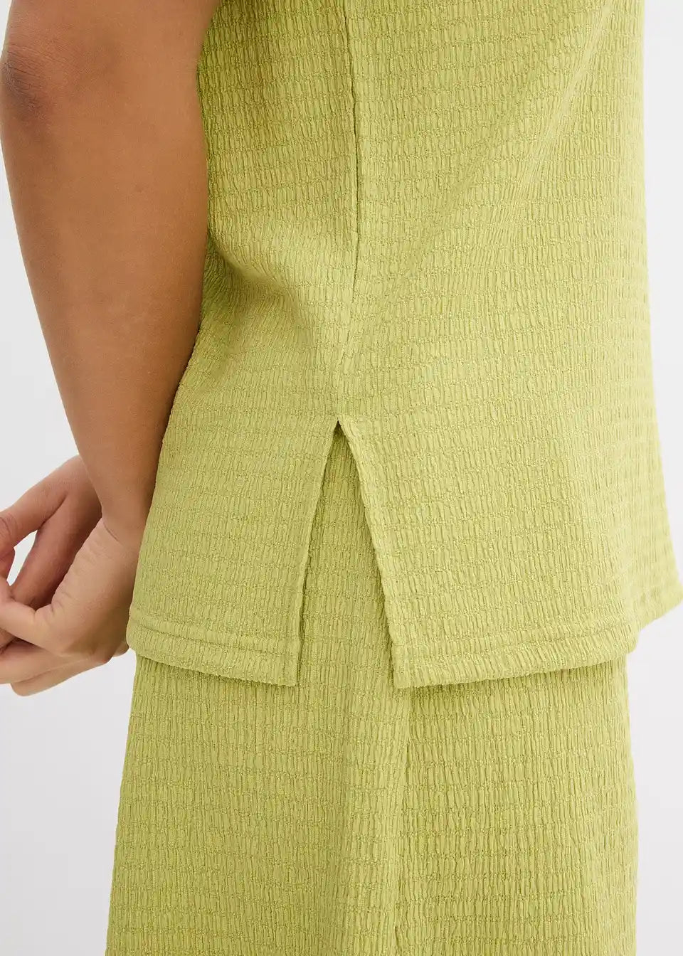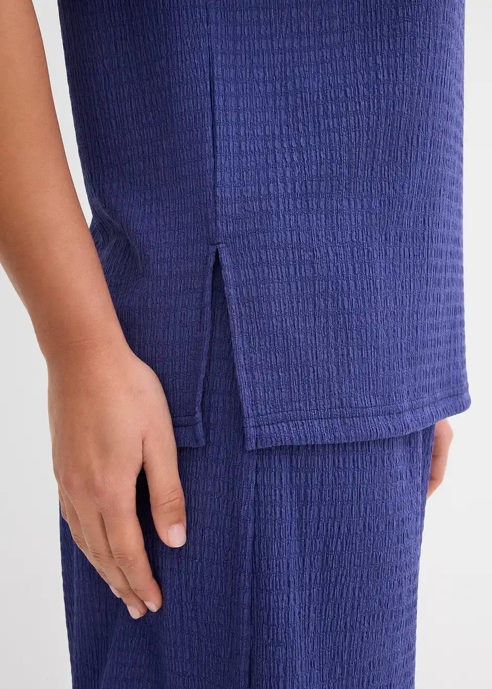 Bokovno daljši shirt iz lahkega strukturiranega materiala s stranskimi razporki