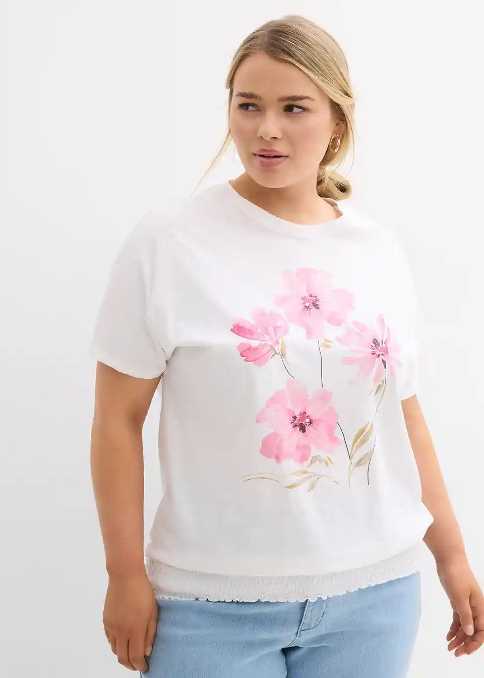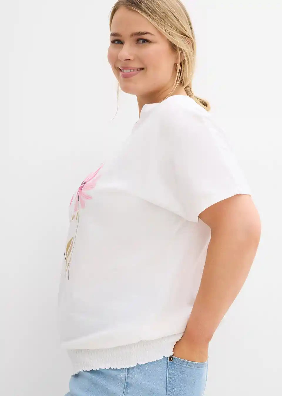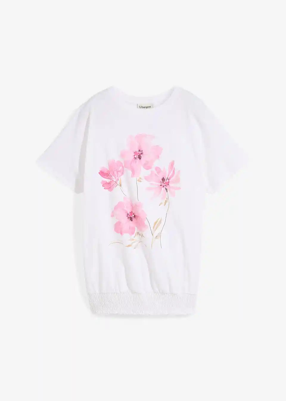 Shirt s cvetličnim potiskom in smock pasom v dolžini do bokov
