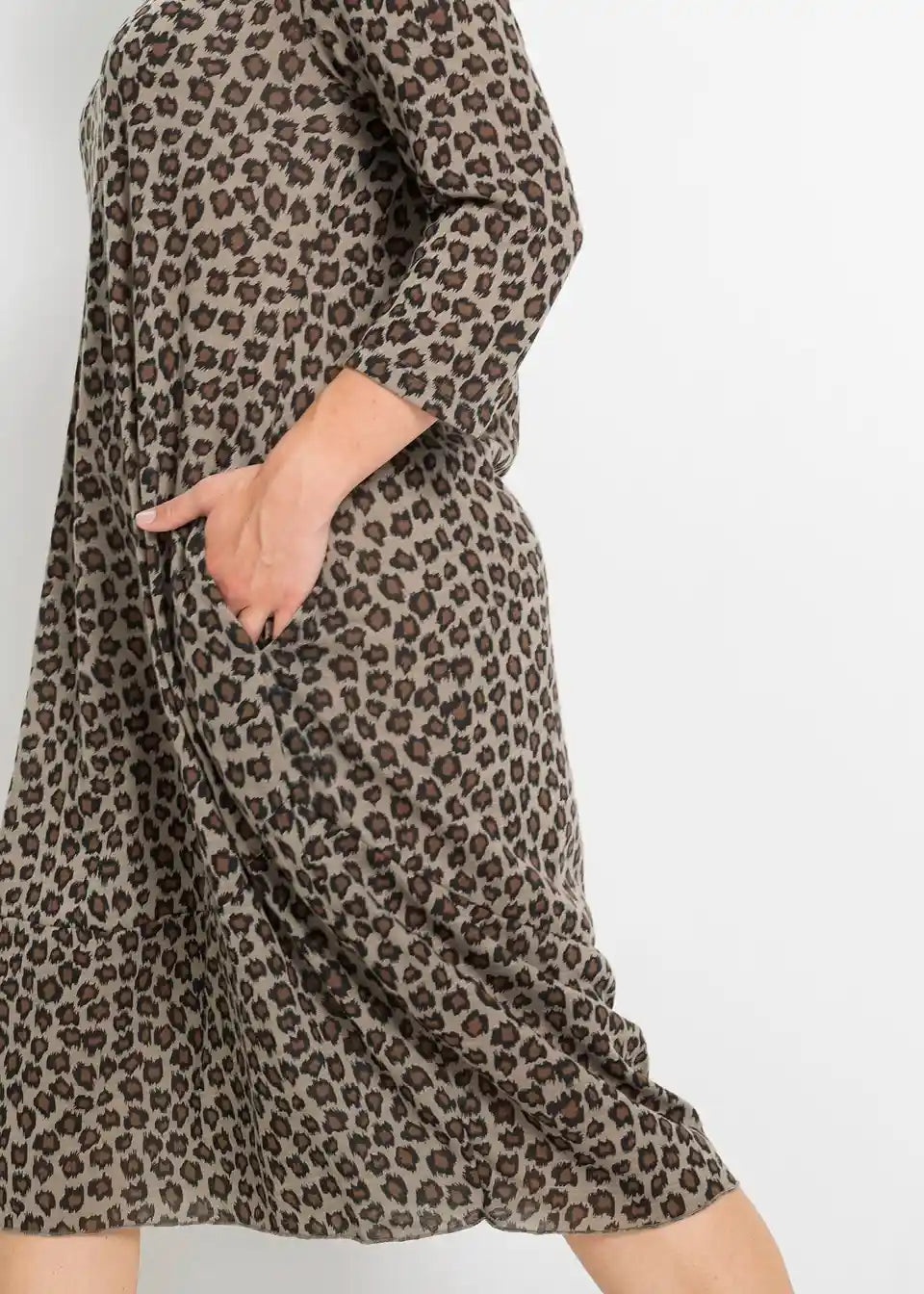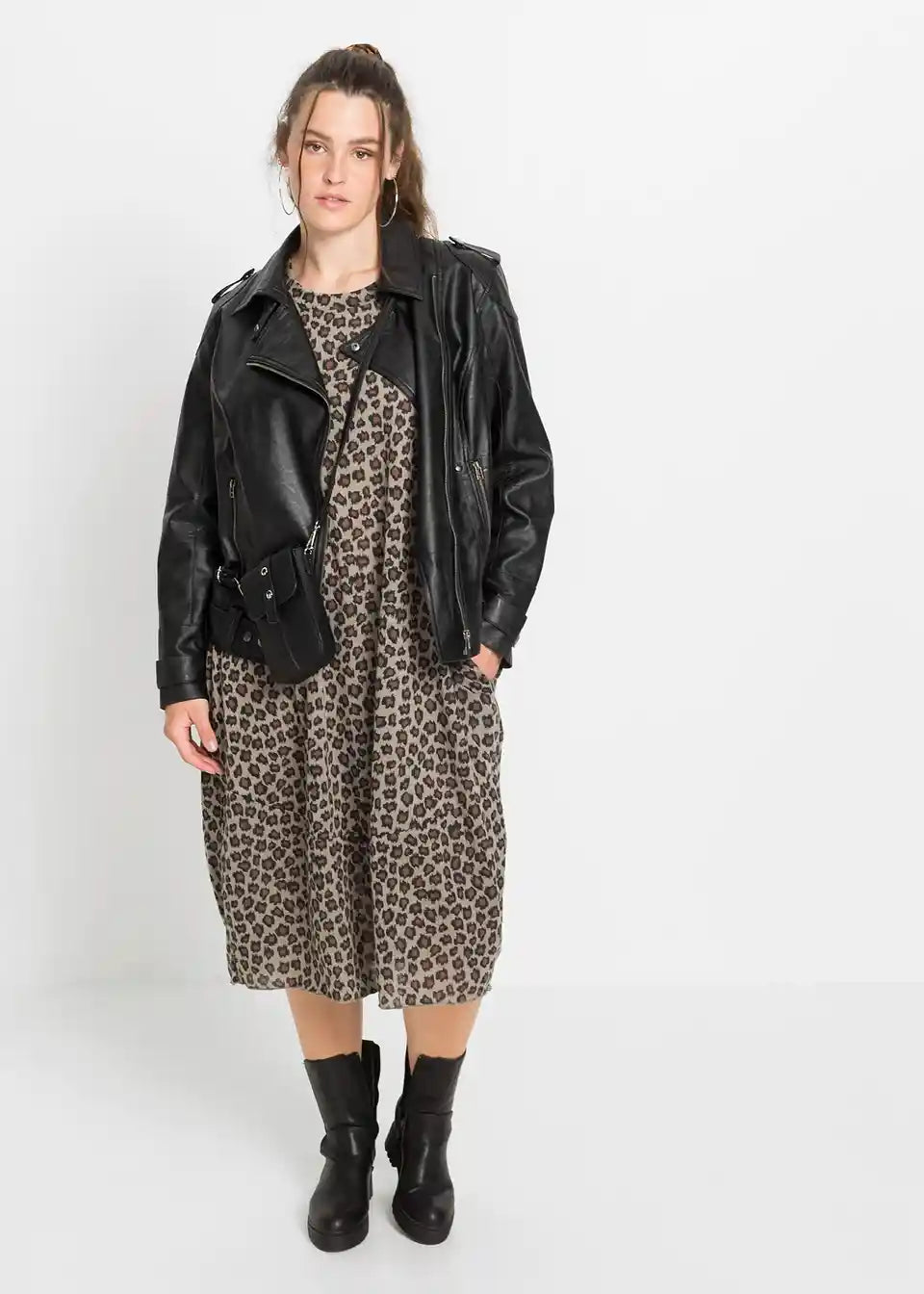 Ta maxi shirt obleka navdušuje s svojim allover leo vzorcem. Le-ta doda modelu z okroglim izrezom znamke RAINBOW vznemirljivo noto. Trendovski Egg-Shape laskava postavi. Za čudovit pas poskrbi širok lakast ali preklopni pas. Stranski žepi za roke zaokrožujejo videz. Kul maxi shirt obleka dobi z biker jakno in škornji rock pridih. Nekoliko bolj sproščeno izgleda z jeans jakno. Odlično ji pristaja tudi dolg oversize kardigan z grobim pletenjem.