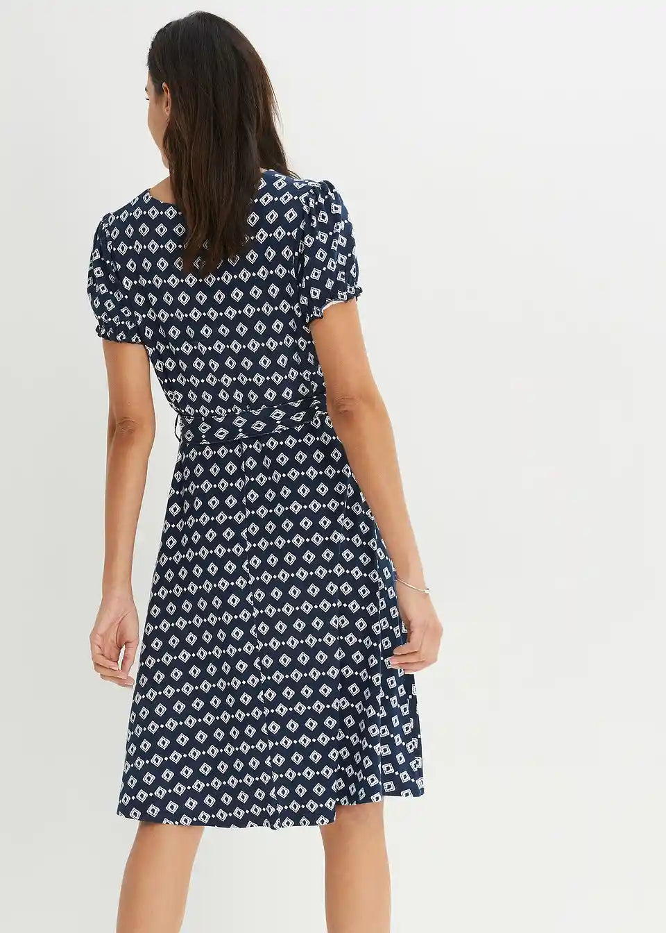 Figura objemna obleka z Allover potiskom in zavezovalnim pasom
