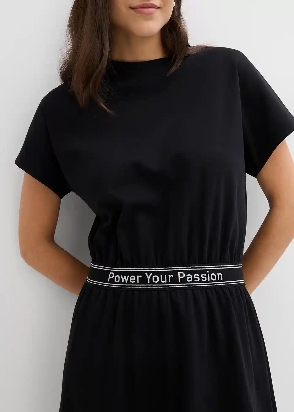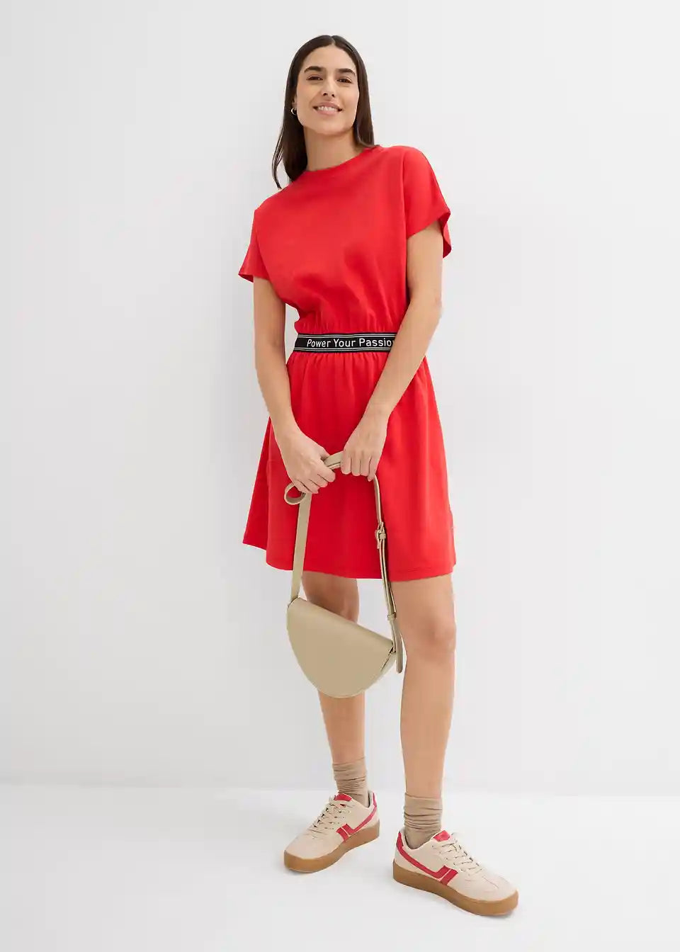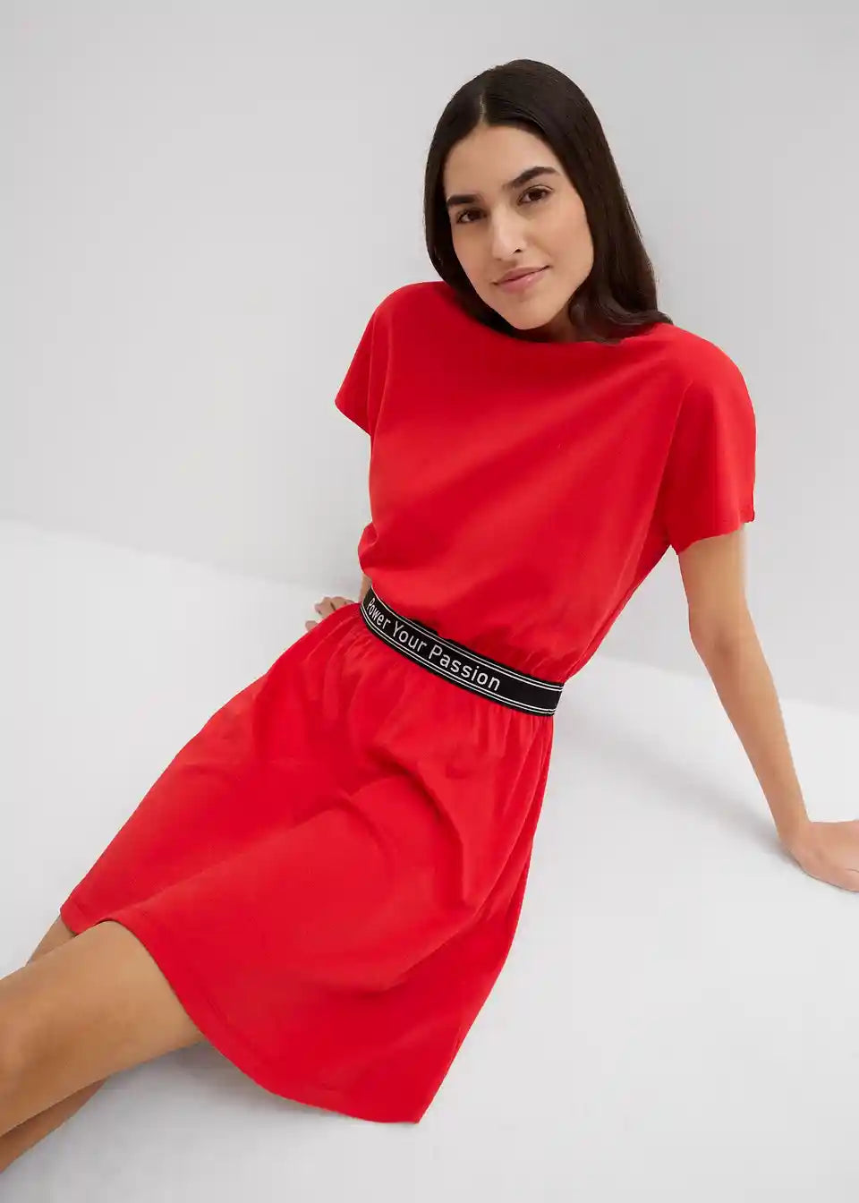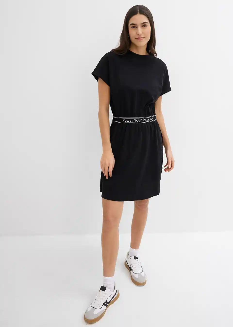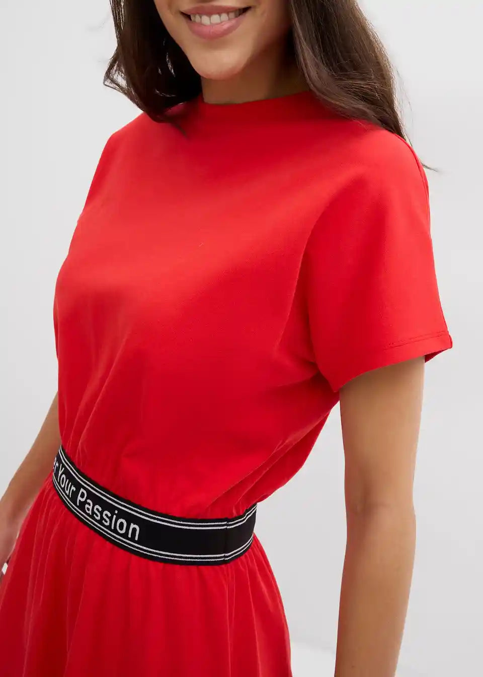 Modna shirt obleka s športnim pasom in kratkimi rokavi