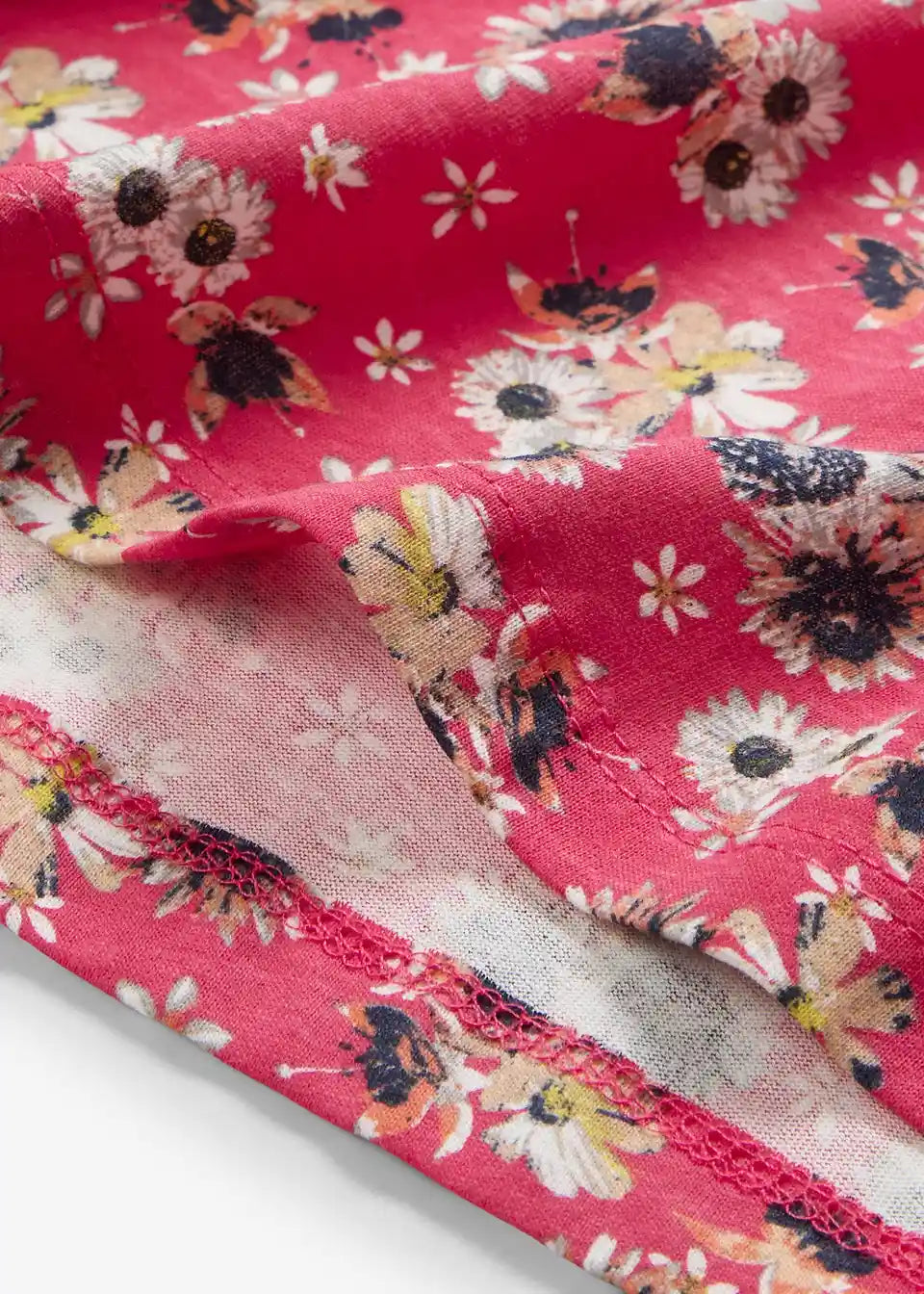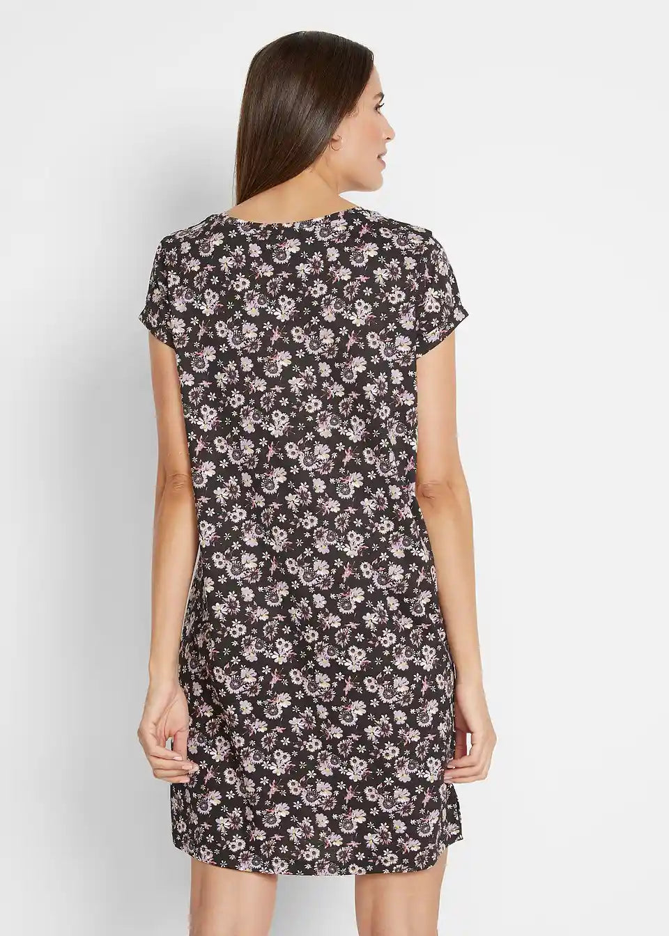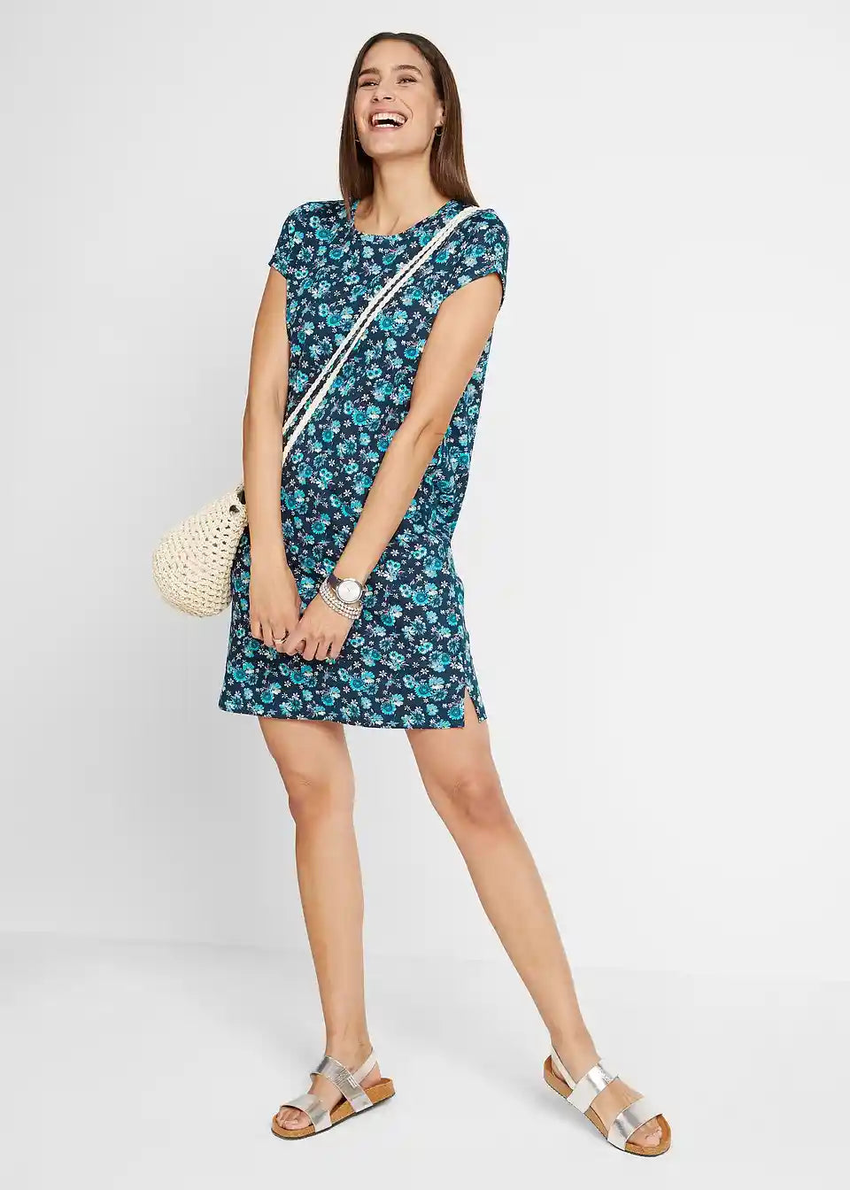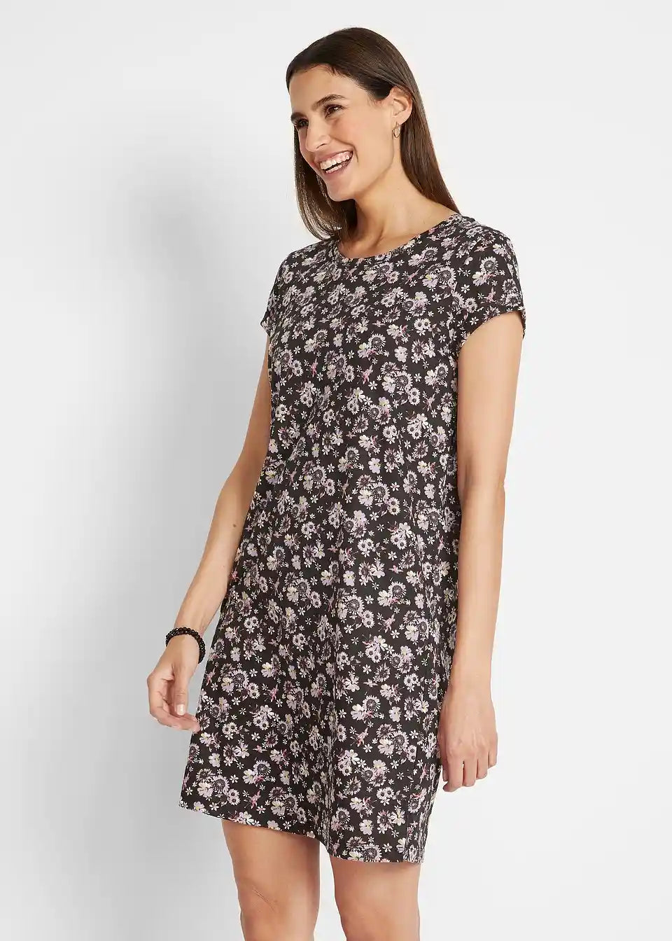 Osnovna bombažna obleka s kratkimi rokavi, rahlo razširjena oblika, dvojni paket