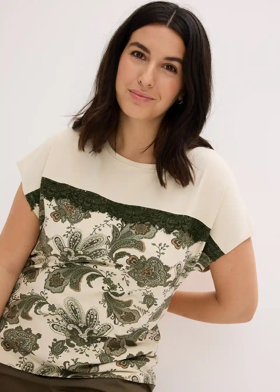 elegantna majica s čipkastim trakom in izrazitim Paisley potiskom