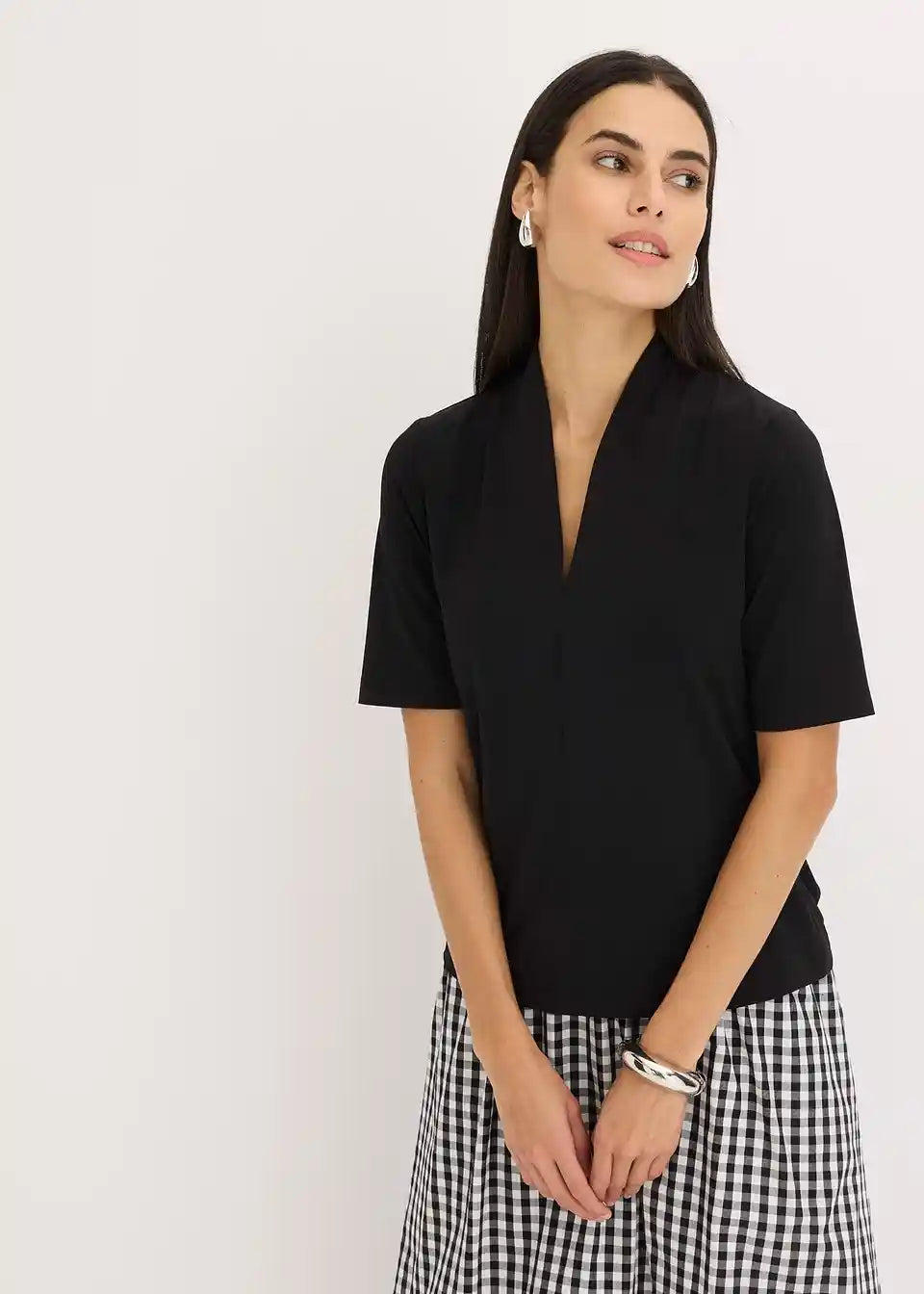 elegantna majica s stoječim ovratnikom in V-izrezom
