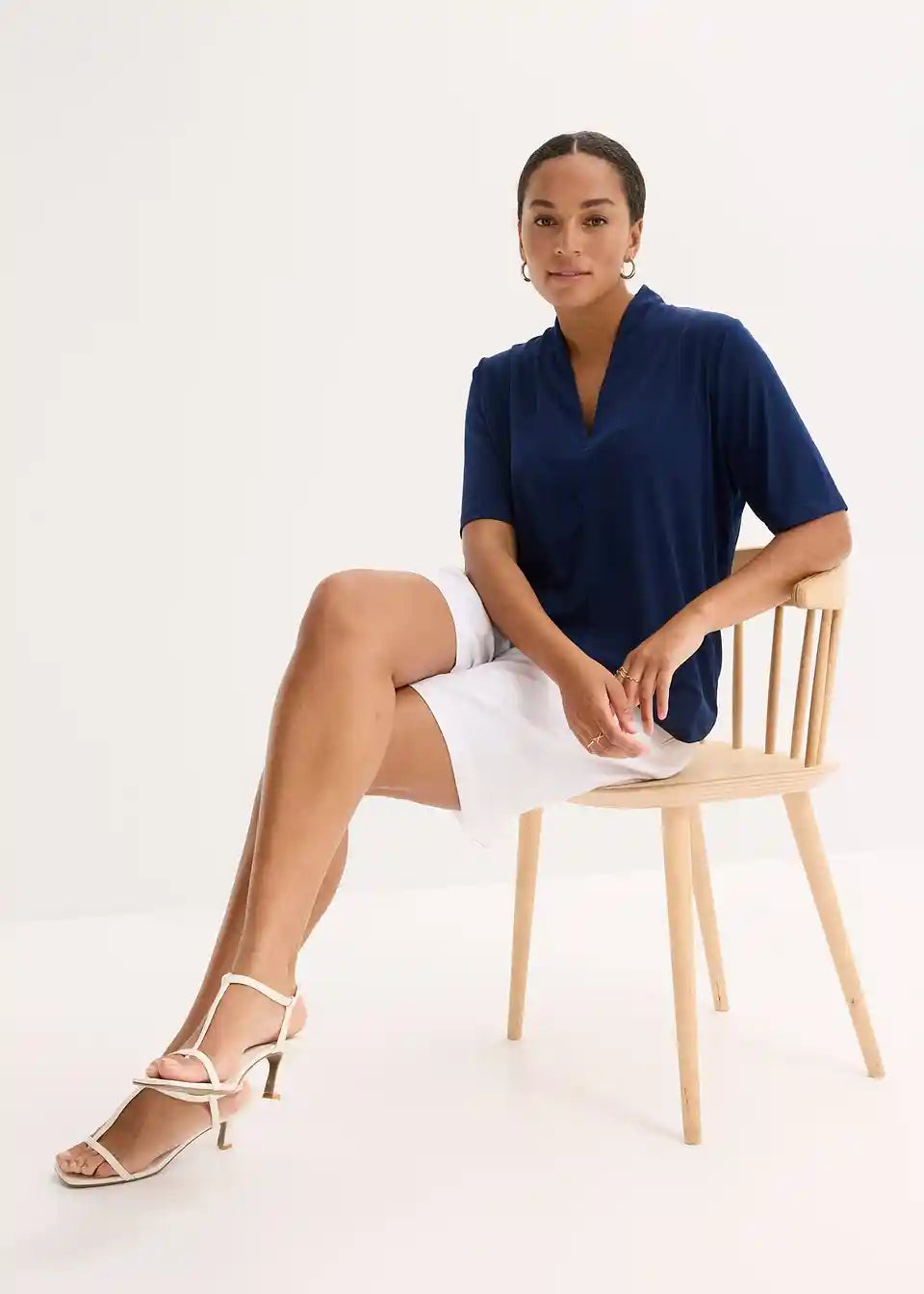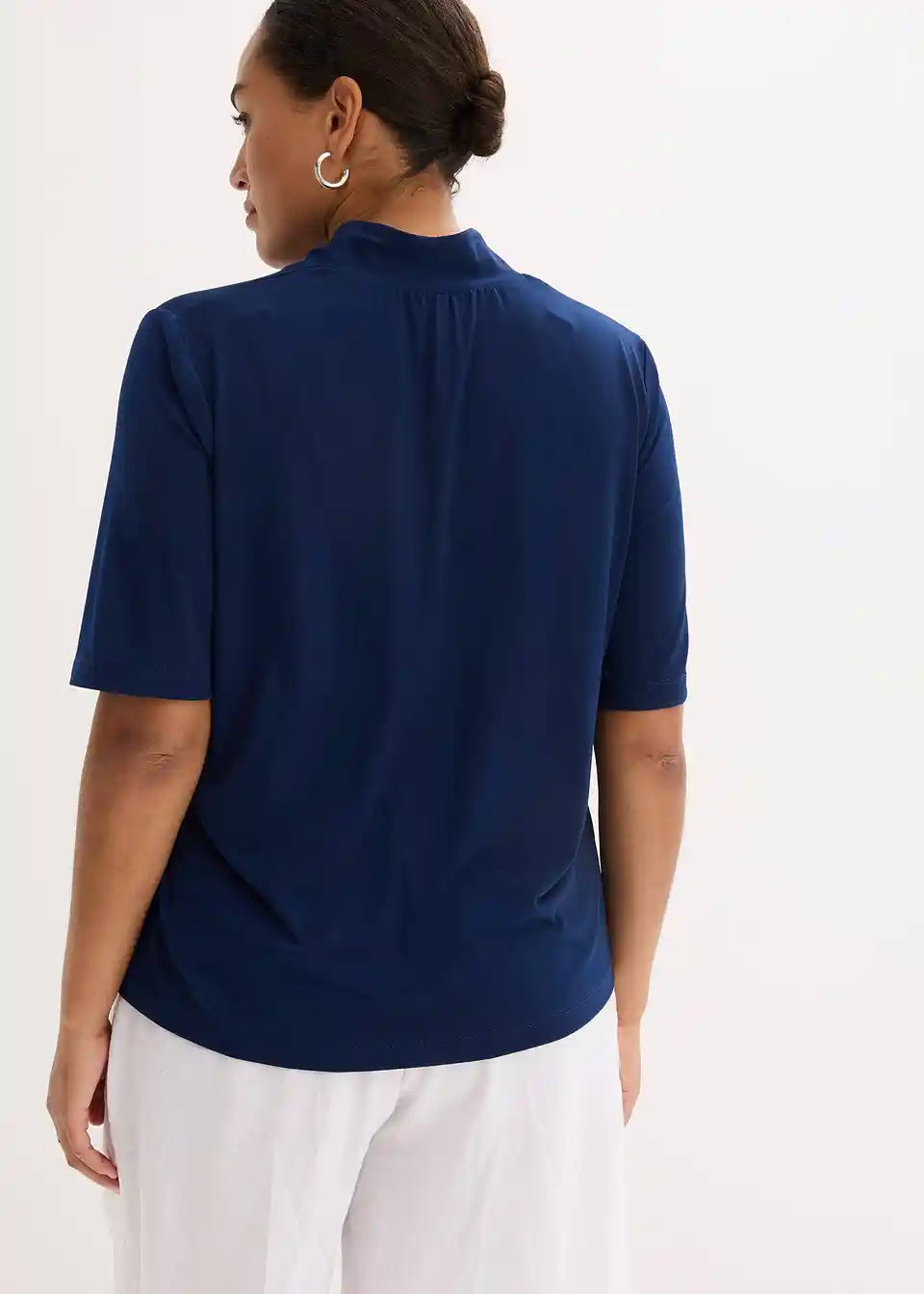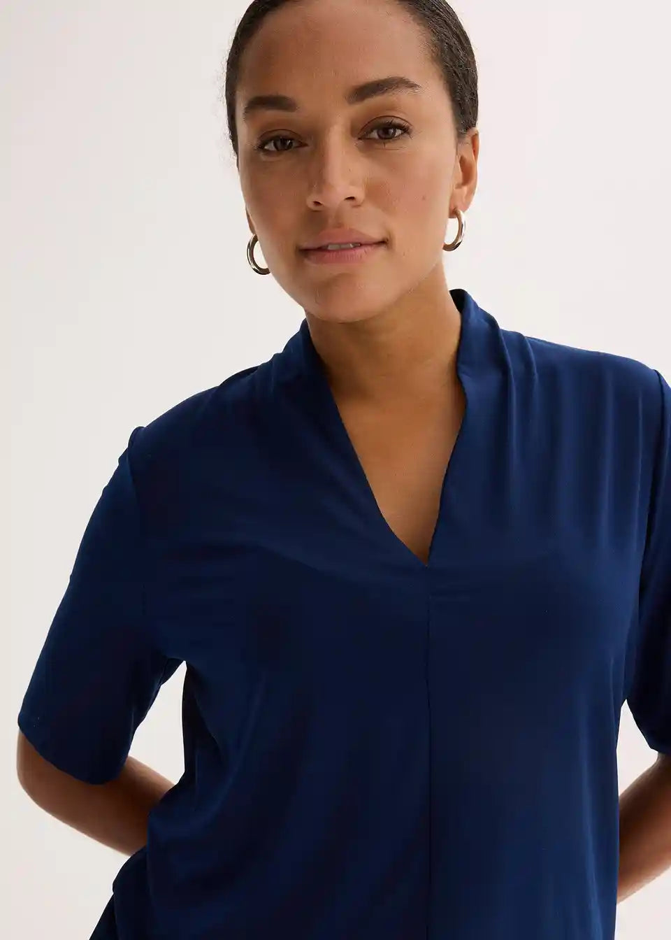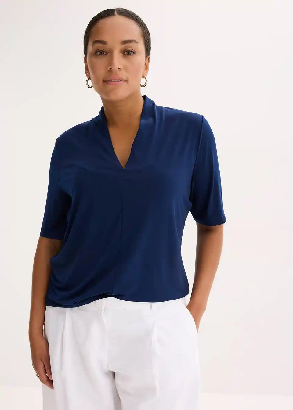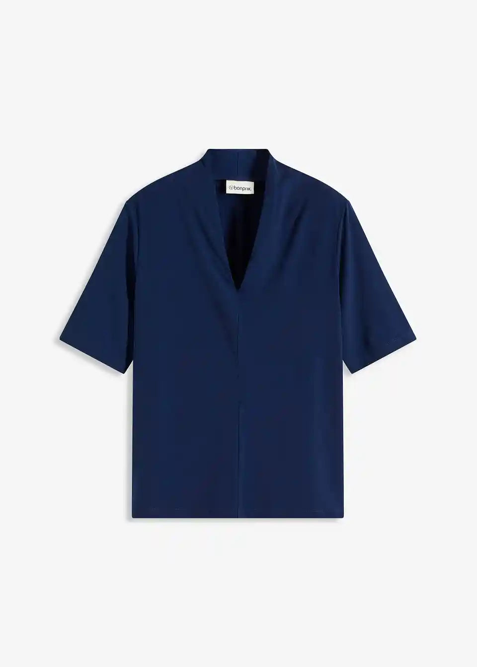 elegantna majica s stoječim ovratnikom in V-izrezom