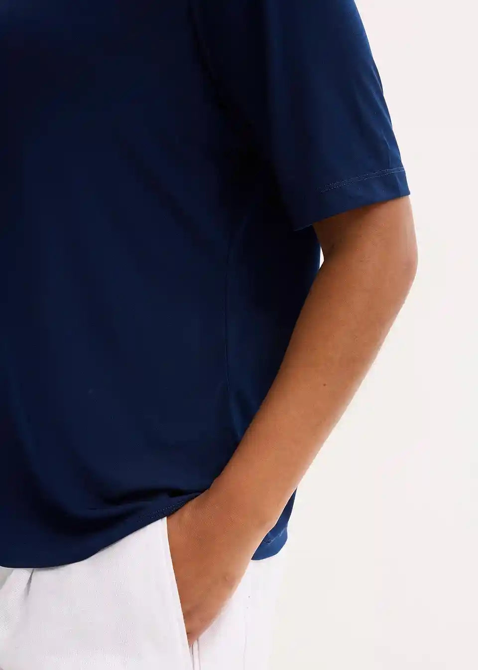Majica s stoječim ovratnikom, ki je spredaj prirezan