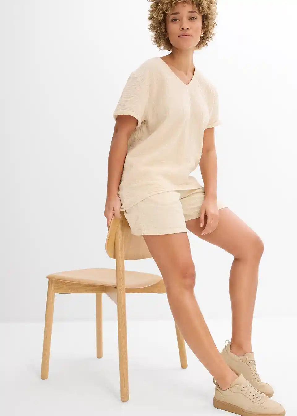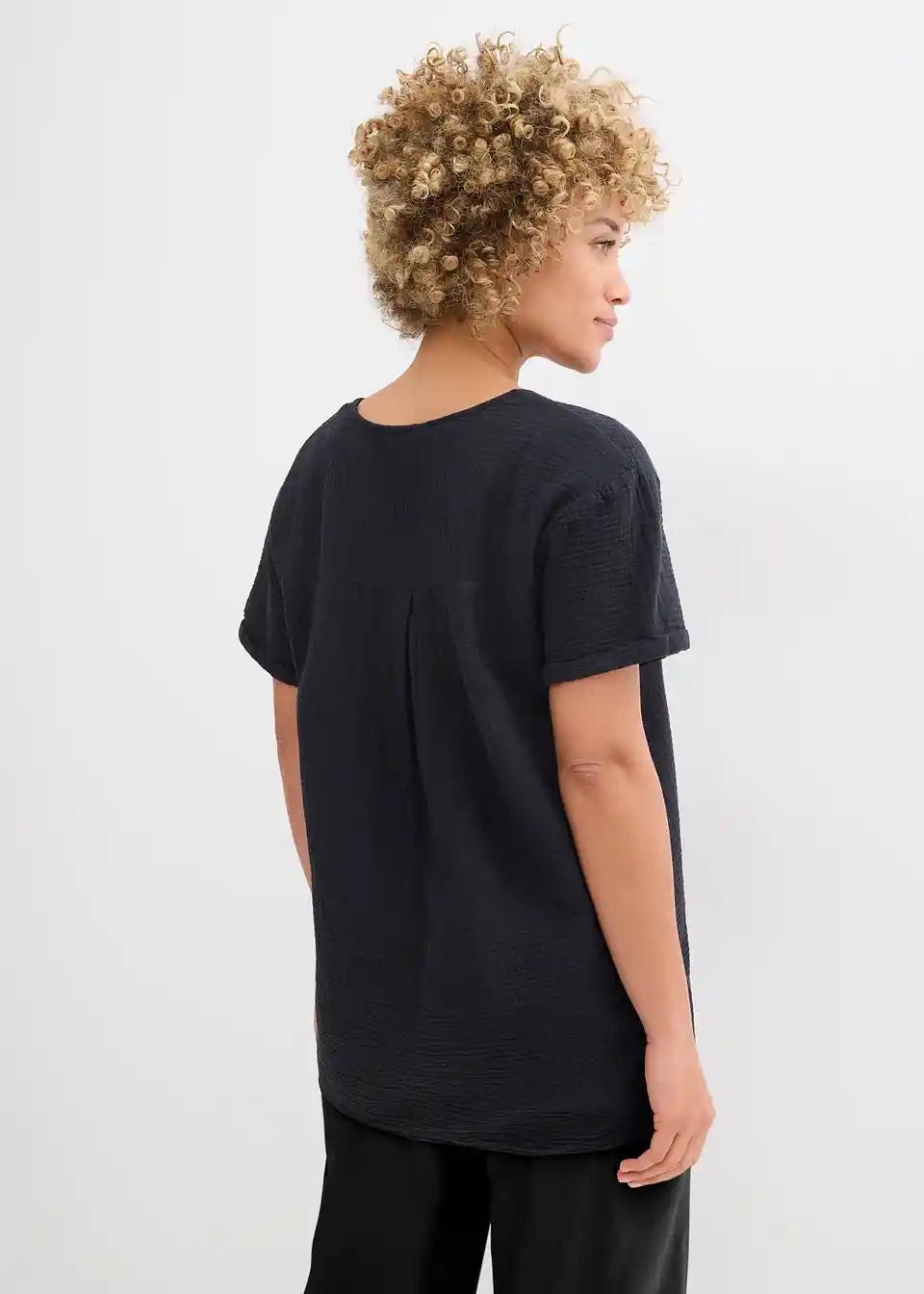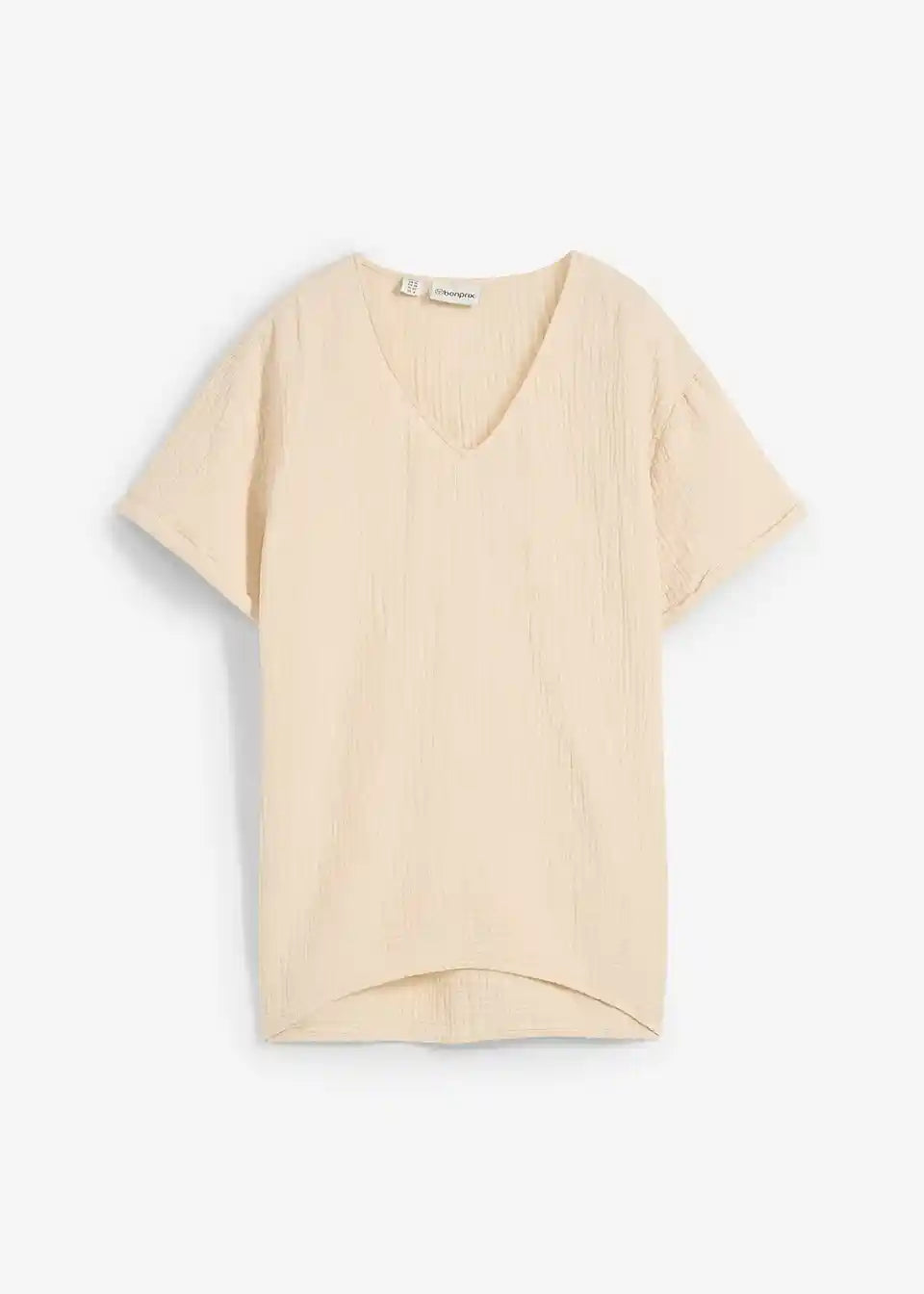 Shirt-Tunika s spuščenimi rameni, zavihanim robom rokava in podaljšanim zadnjim robom