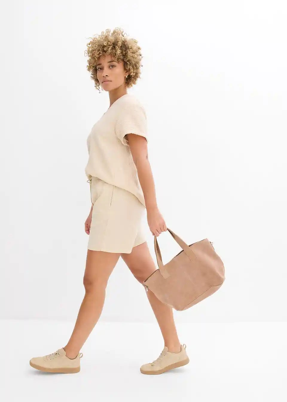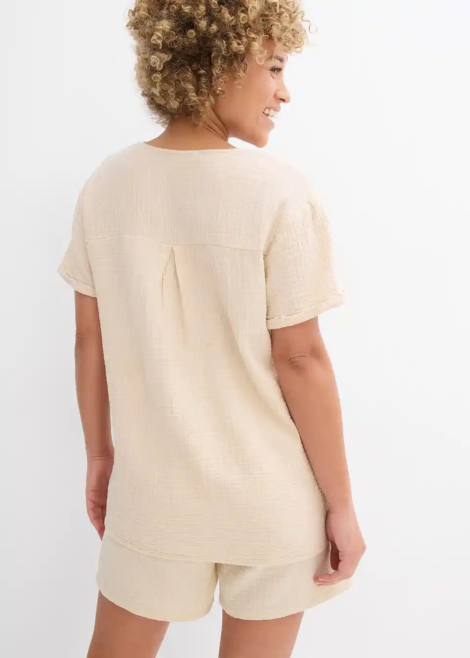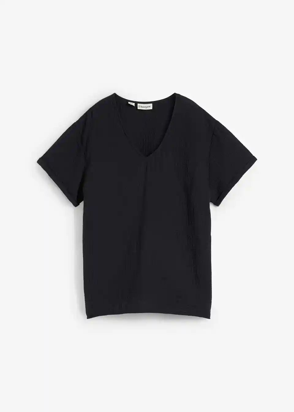 Shirt-Tunika s spuščenimi rameni, zavihanim robom rokava in podaljšanim zadnjim robom