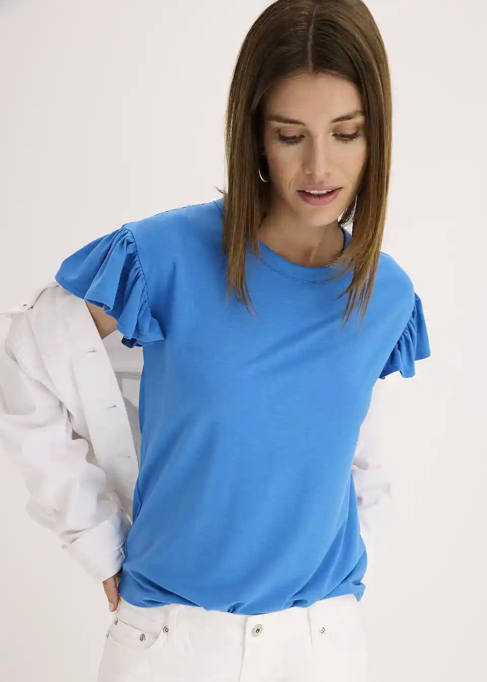 Majica z volani na rokavih