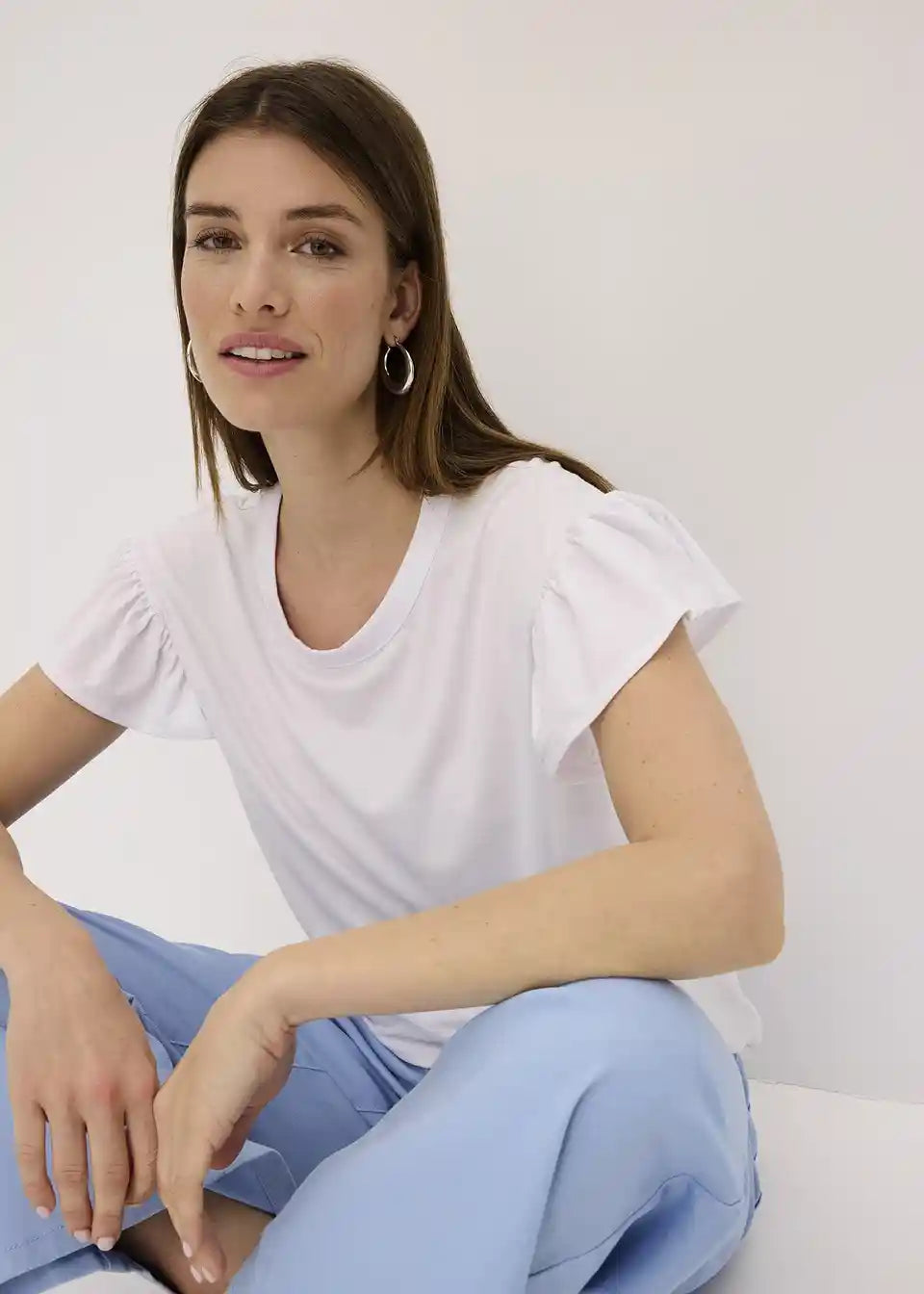 Majica z okroglim izrezom in mehko padajočimi krilci rokavi