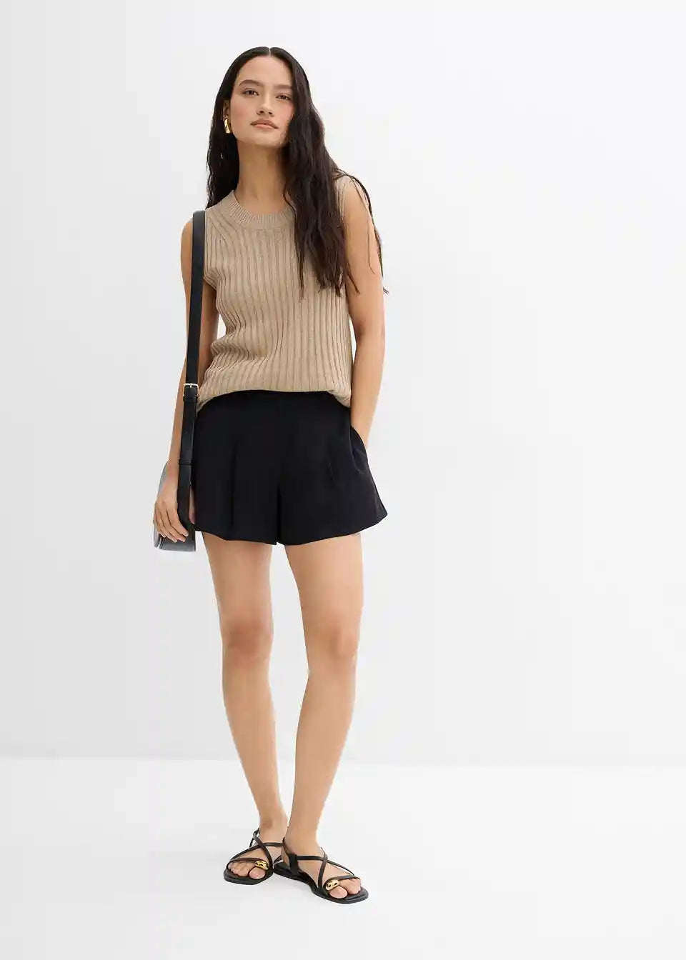Shorts z visokim pasom, stranskimi žepi in sprednjimi všitki
