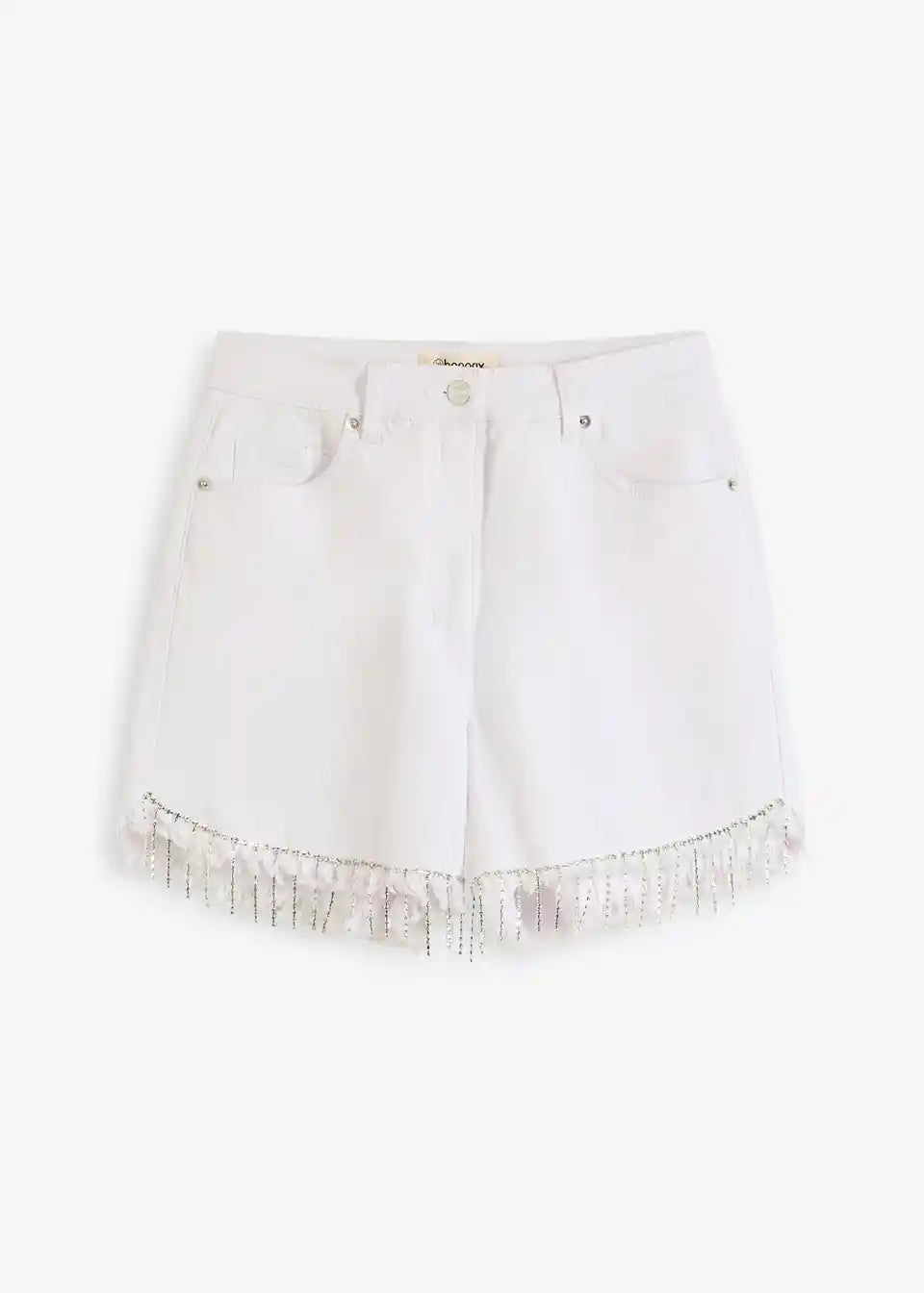 Stilski Shorts z odličnim krojem in dekorativnimi verižnimi kamenčki