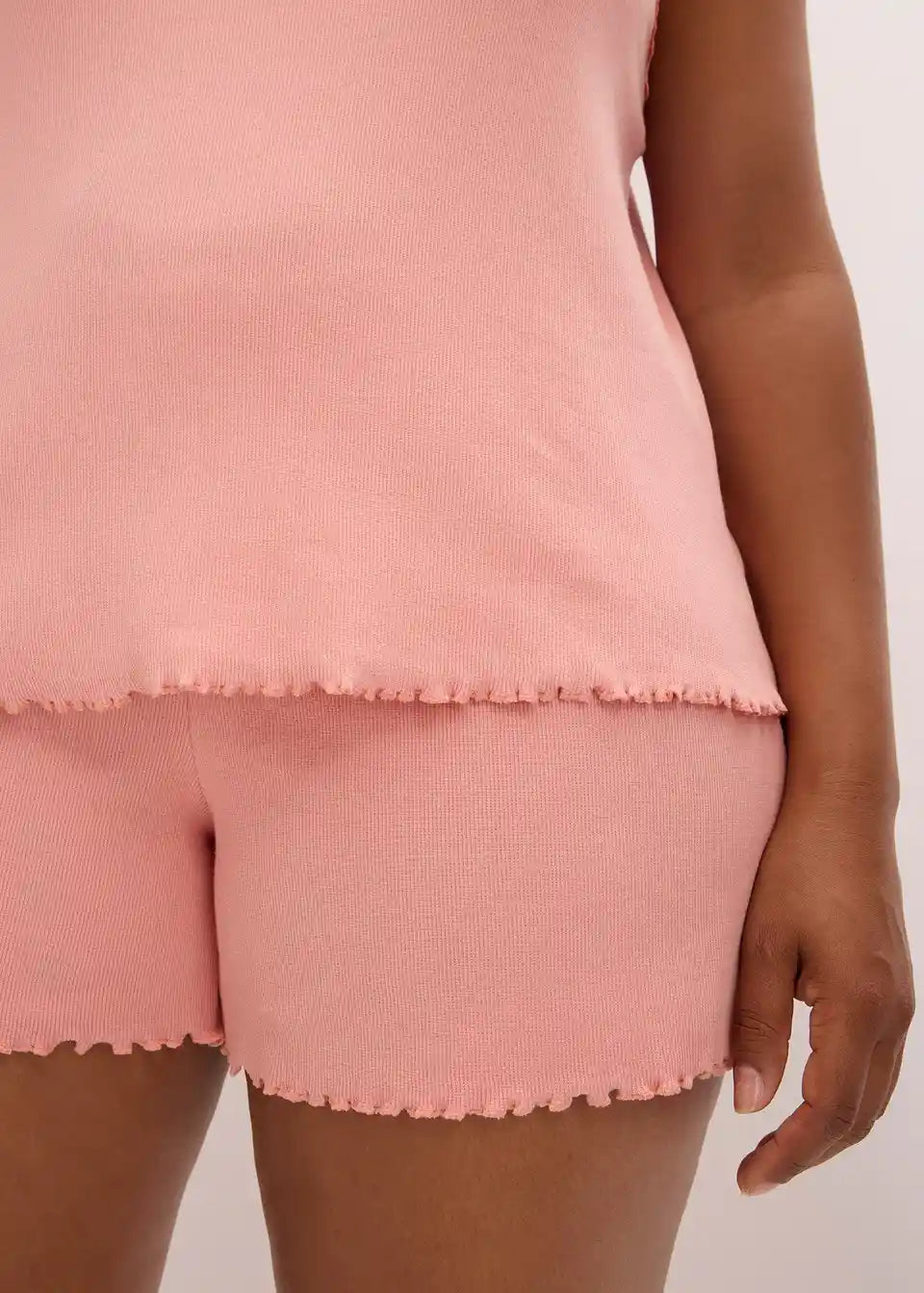 Udoben shorty iz rebrastega materiala z lepim čipkastim robom