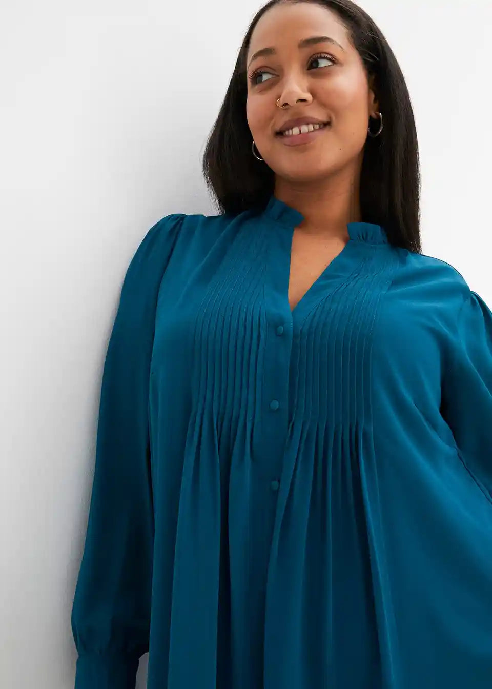 ženstvena obleka z gubami spredaj pri izrezu