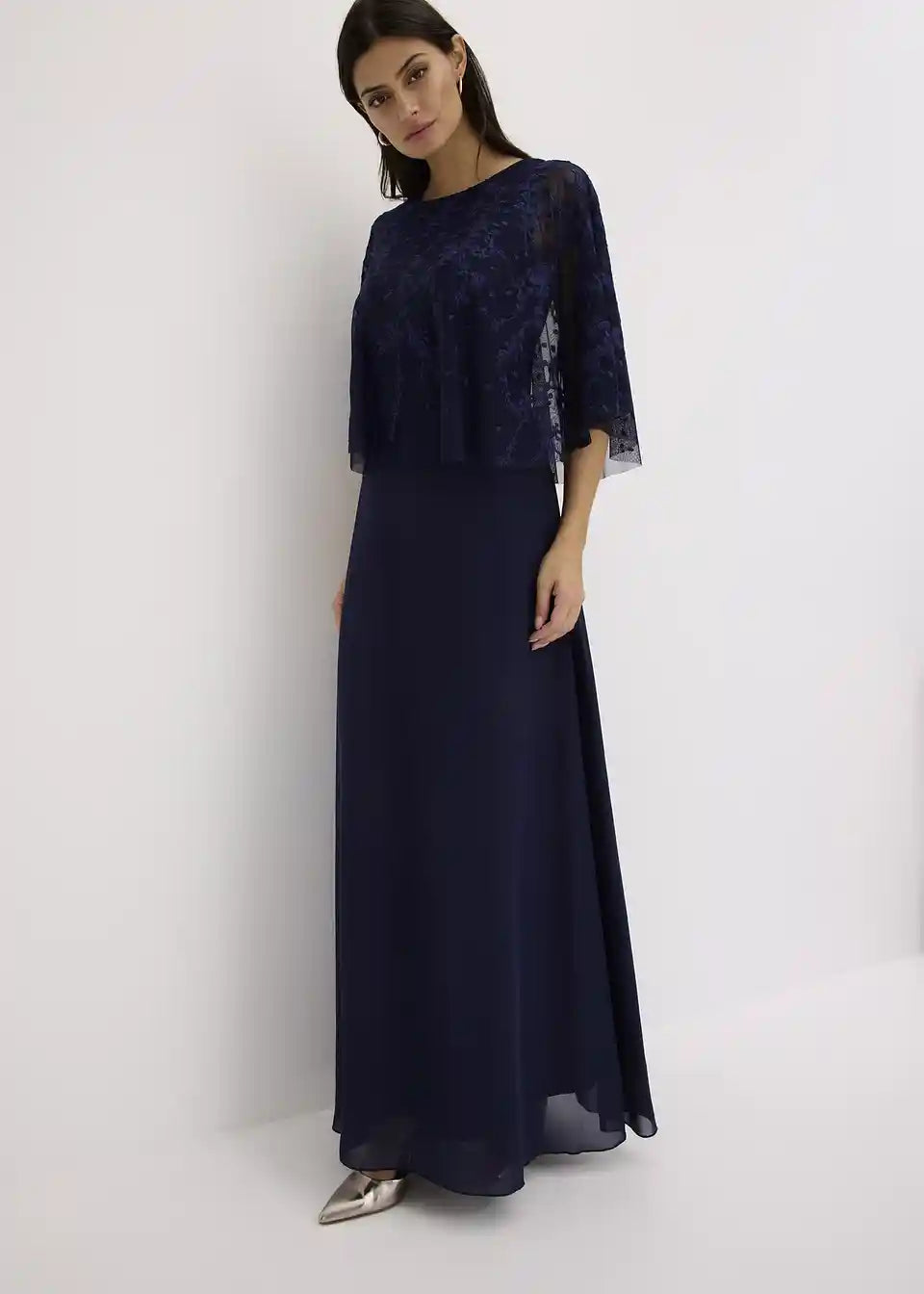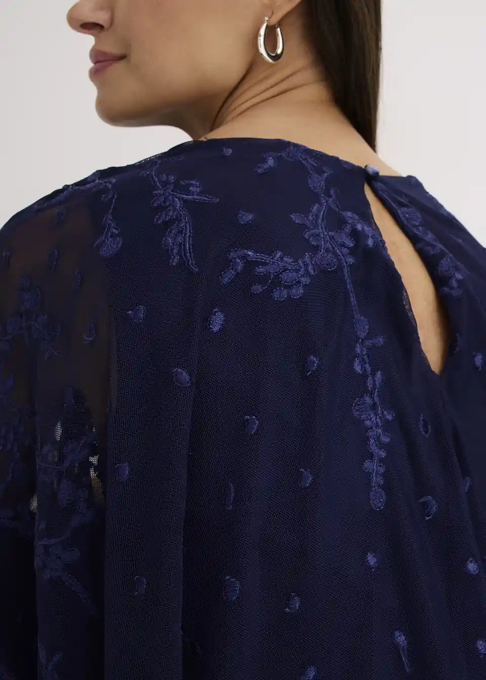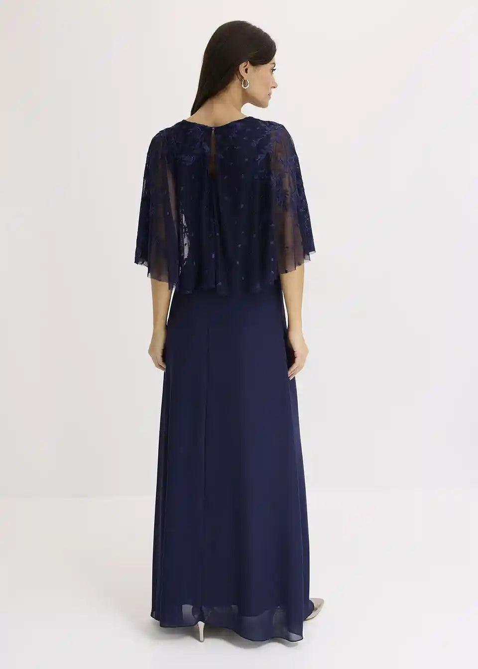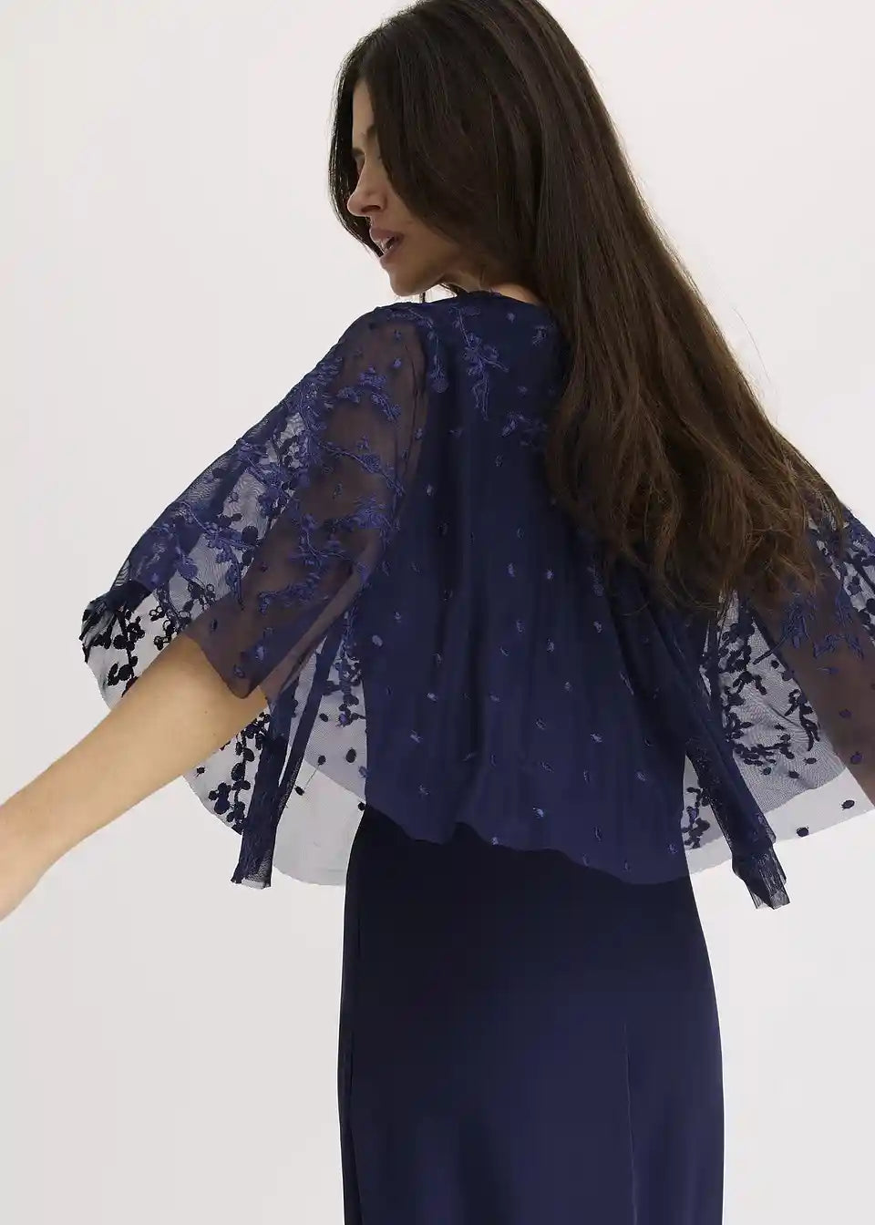 Romantična in ženstvena: večerna obleka iz nežnega tila z rožastim vezenjem