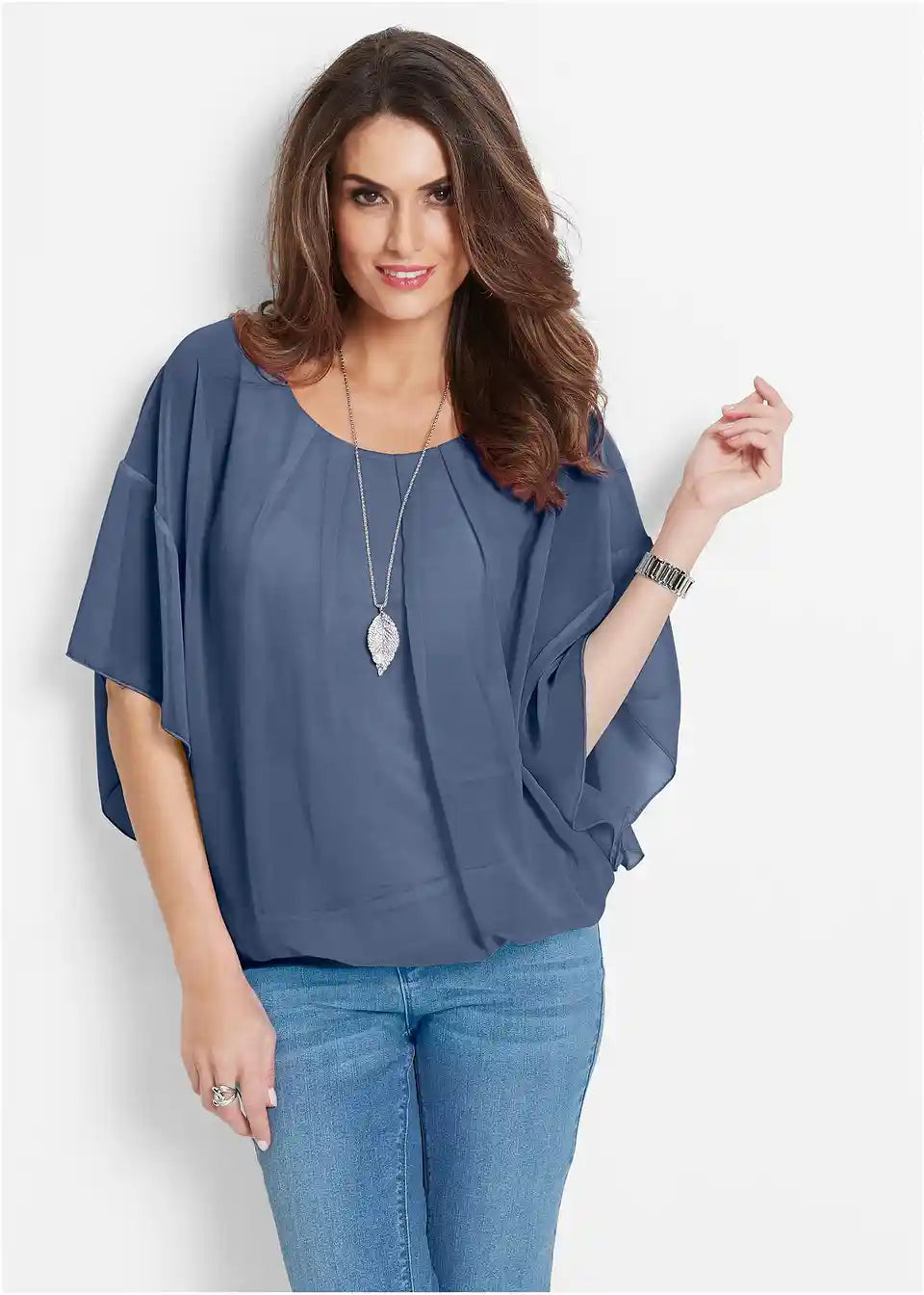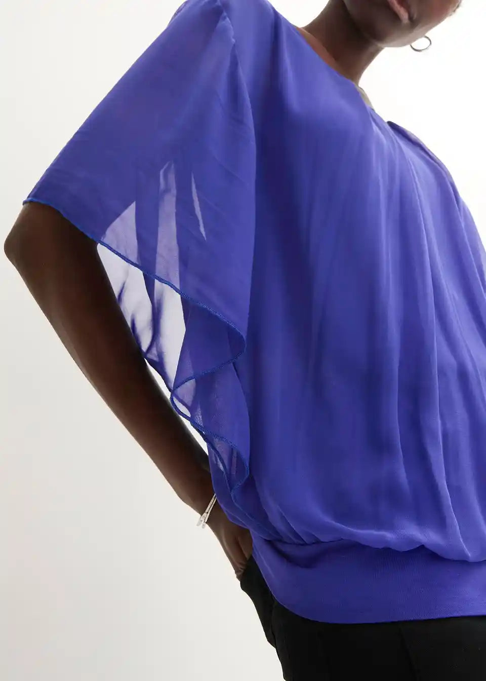 praznična bluza z netopirskimi rokavi in elastičnim robom