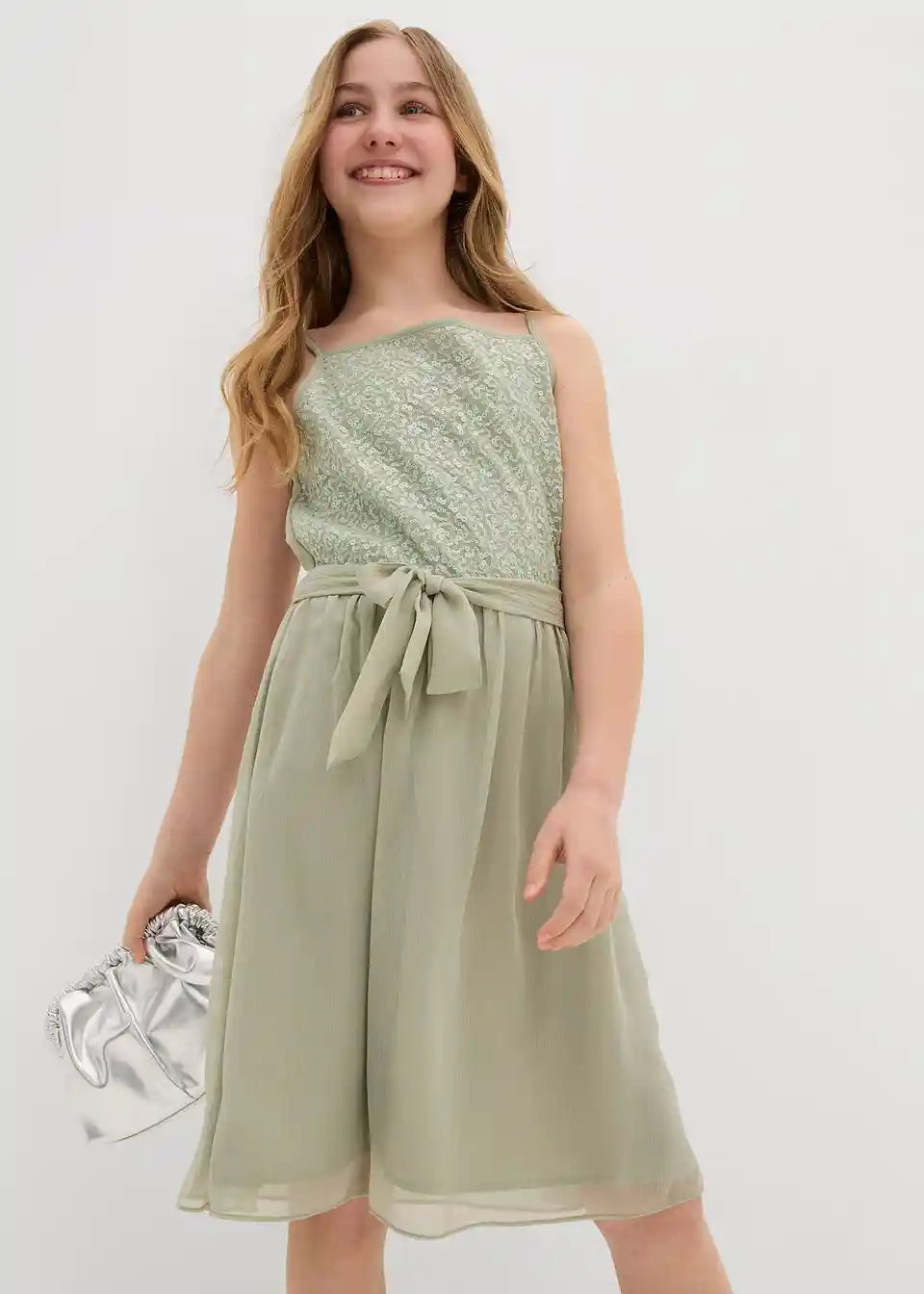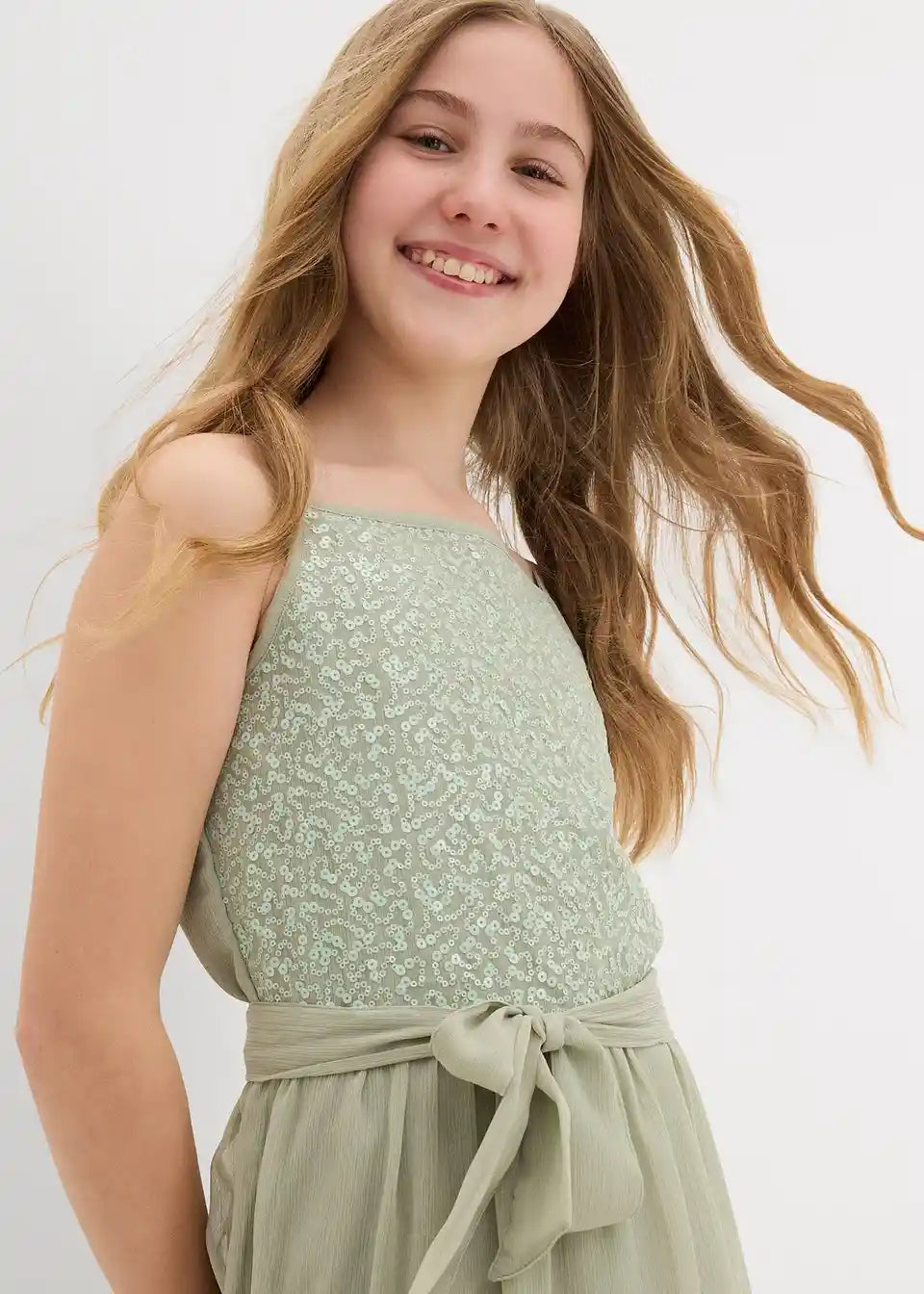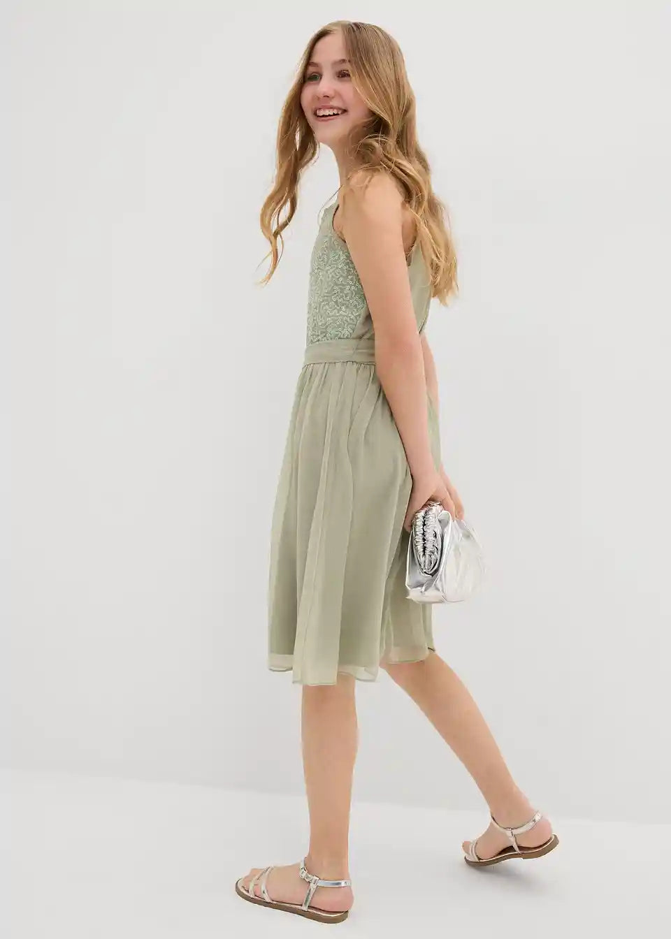 Praznična šifonska obleka za dekleta z okrasnimi bleščicami