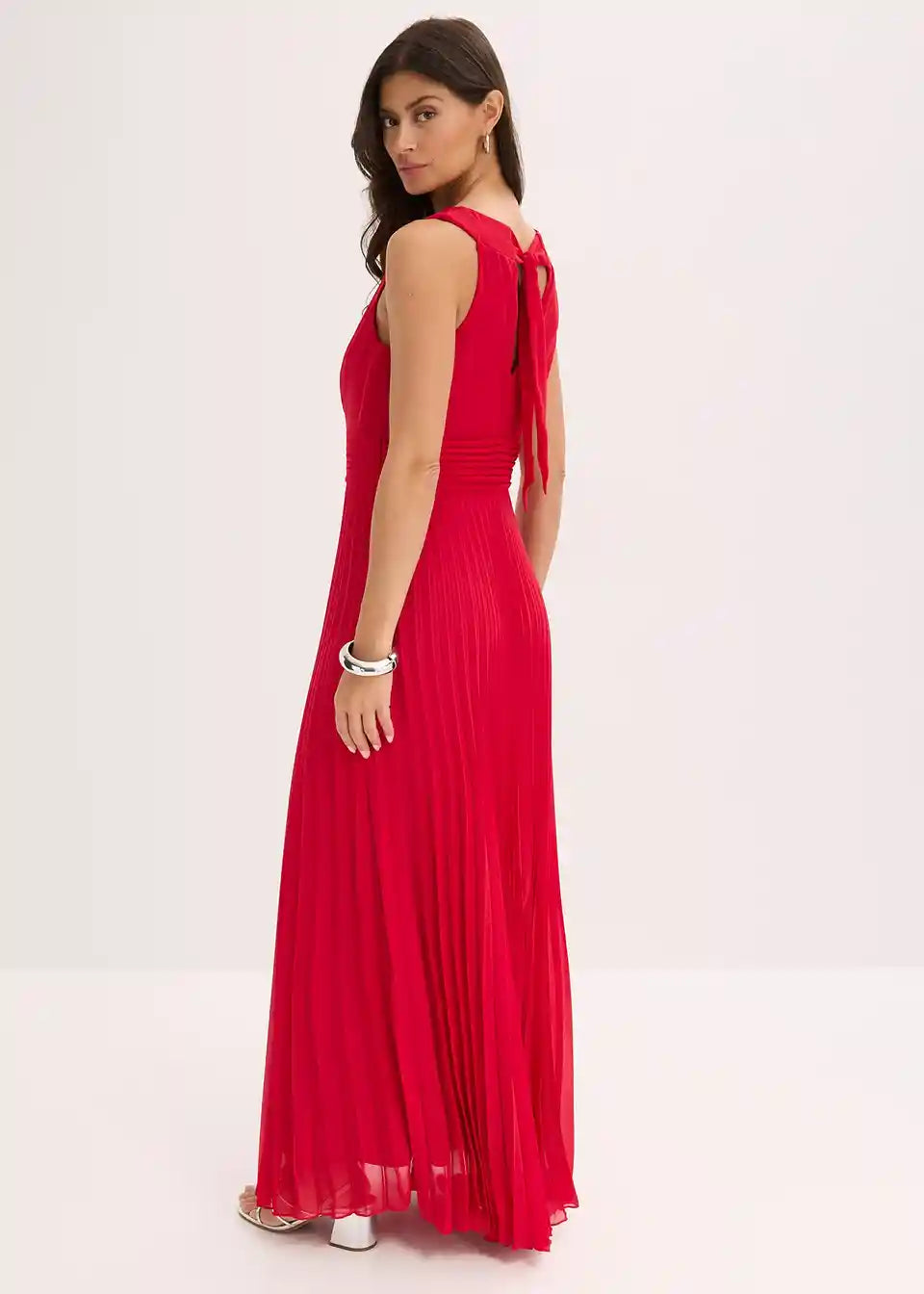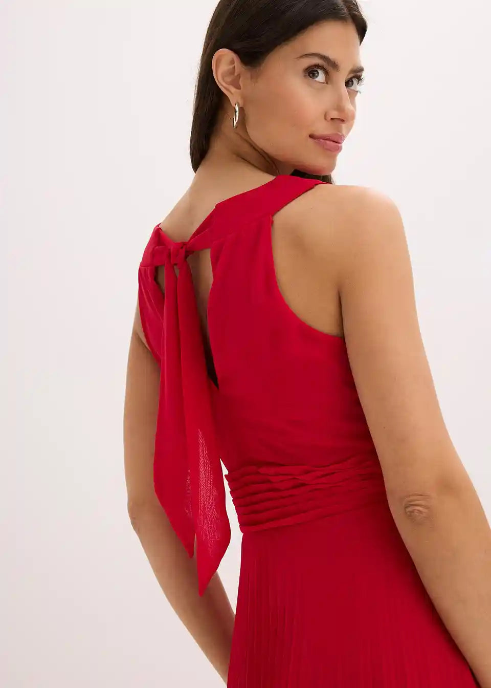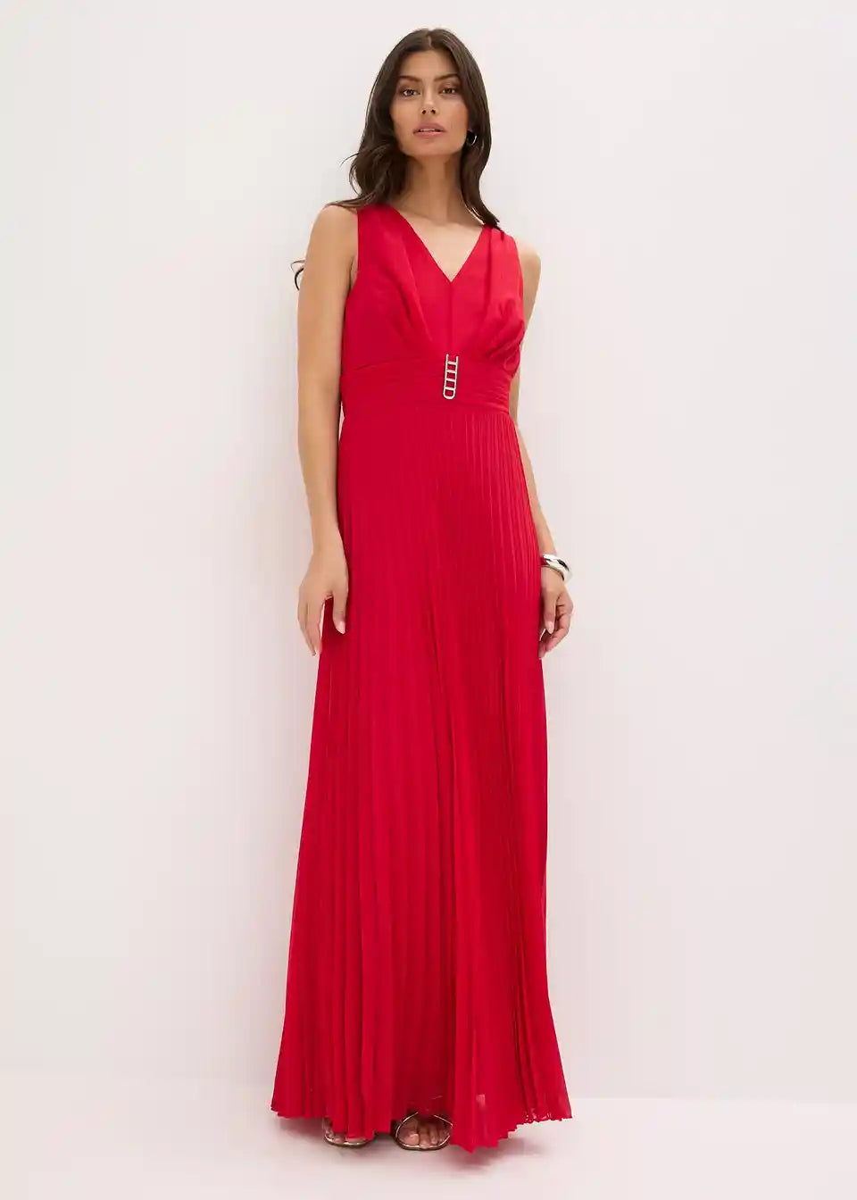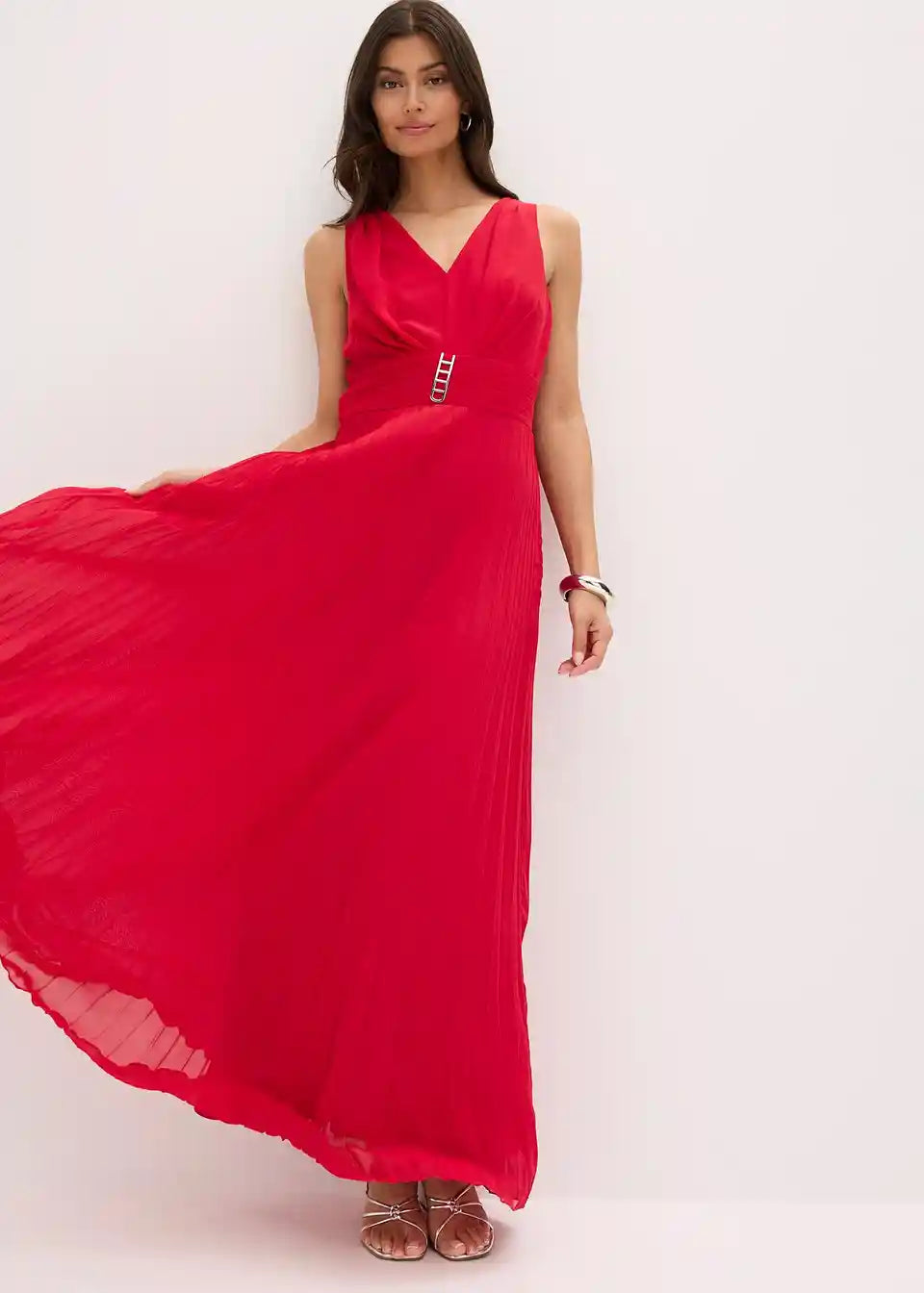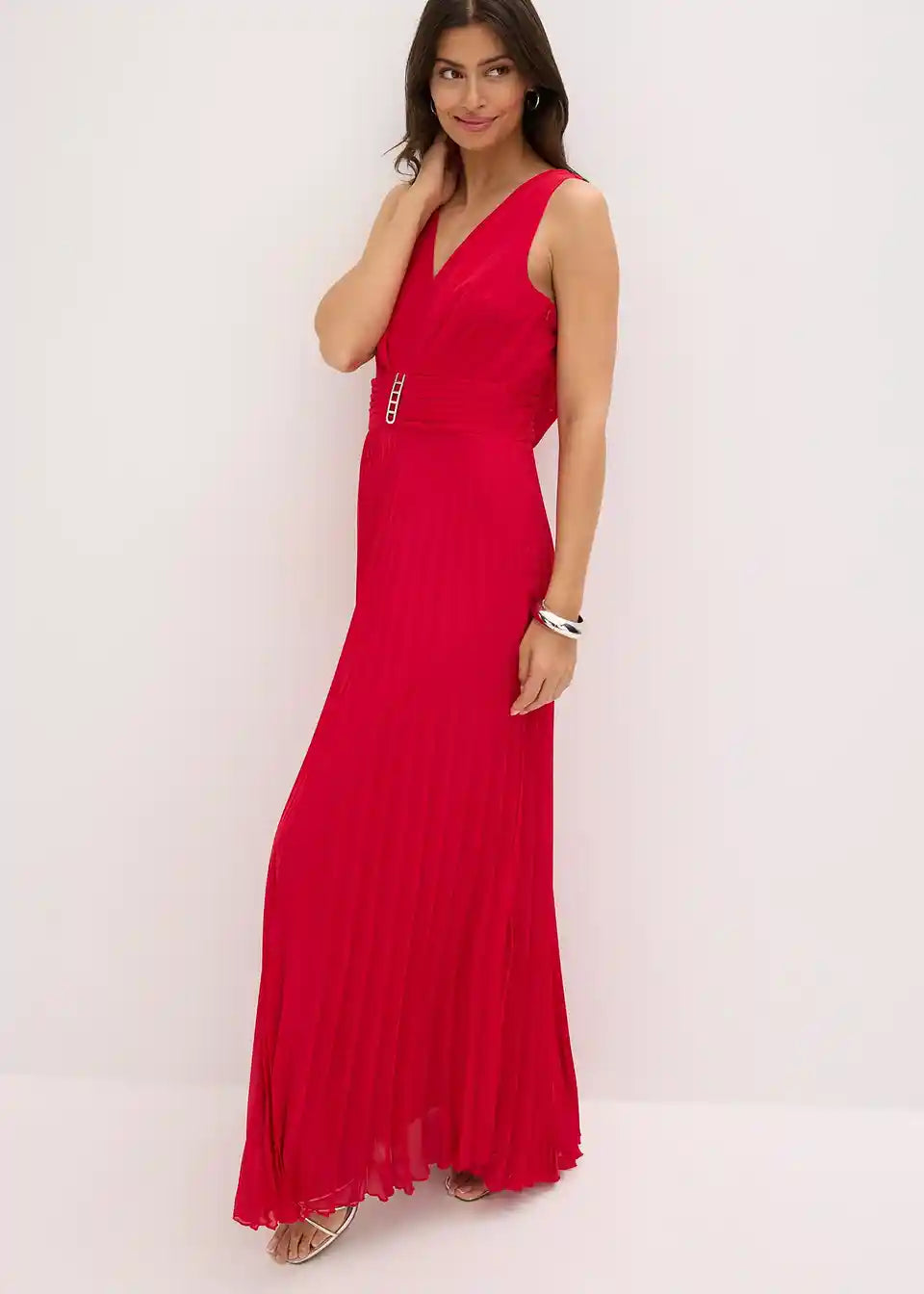 Šifonska obleka s plisiranim krilom in okrasno zaponko