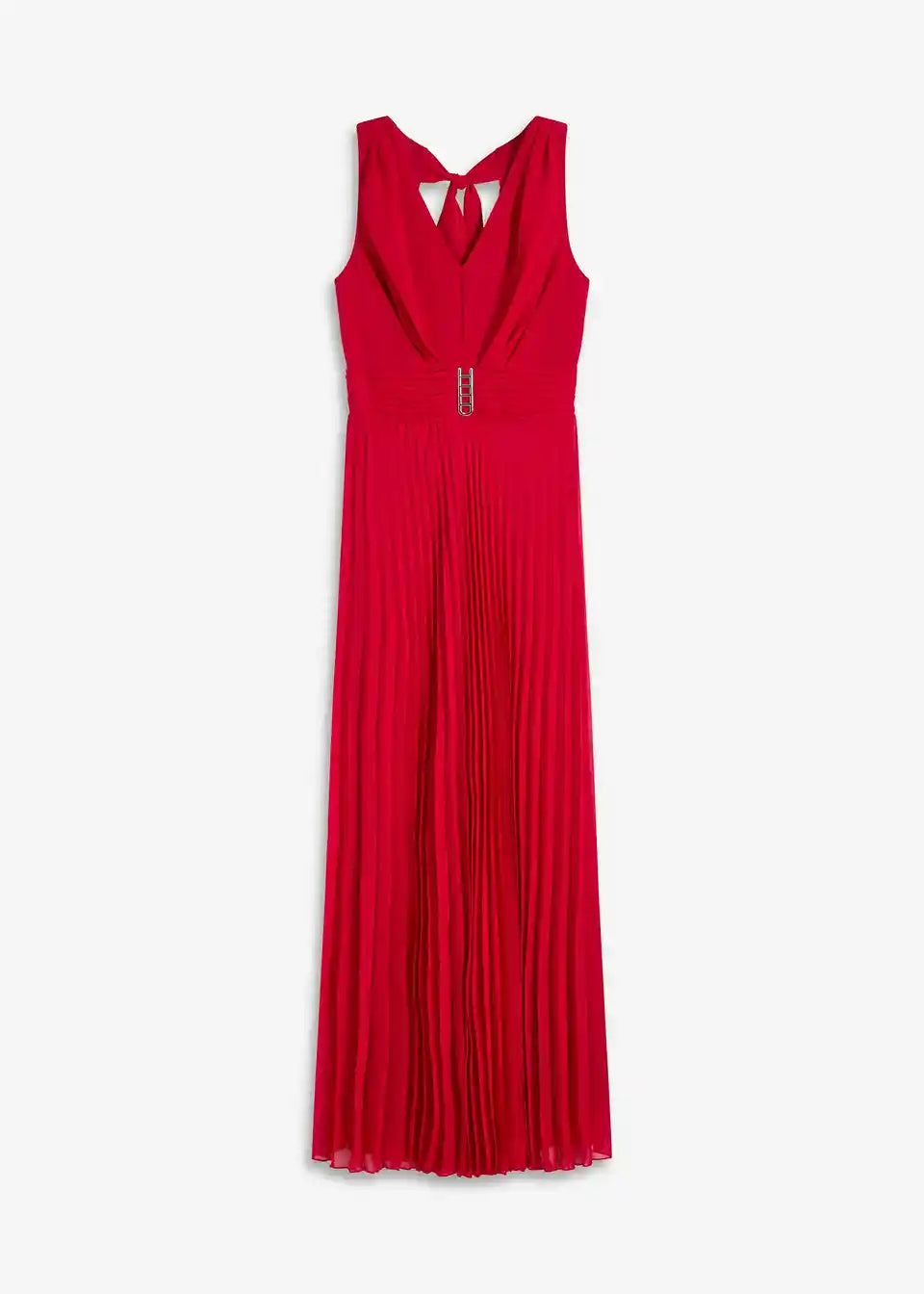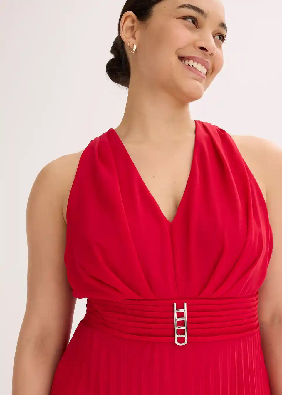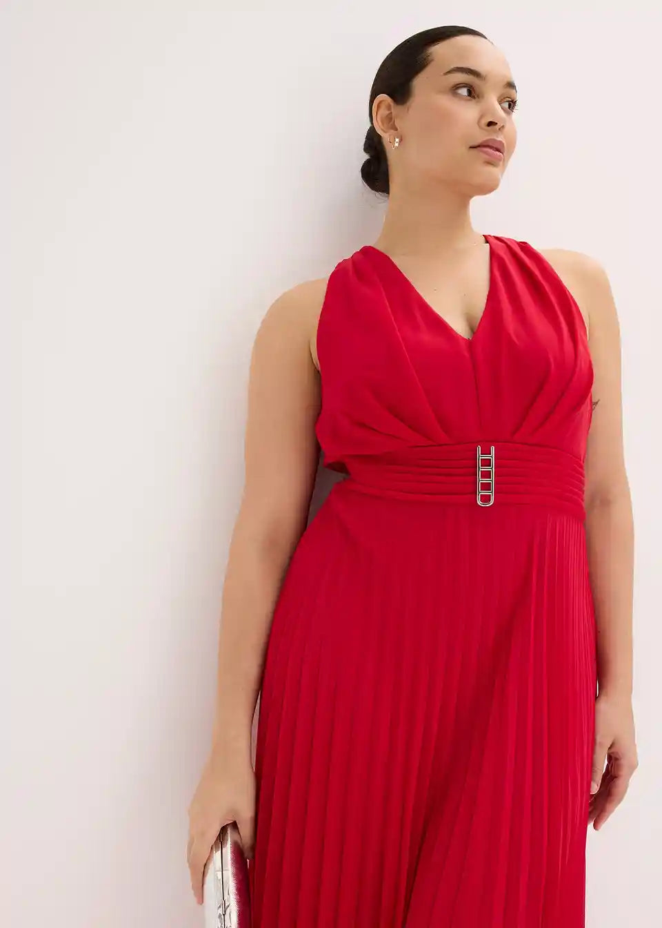 Šifonska obleka s plisiranim krilom in okrasno zaponko