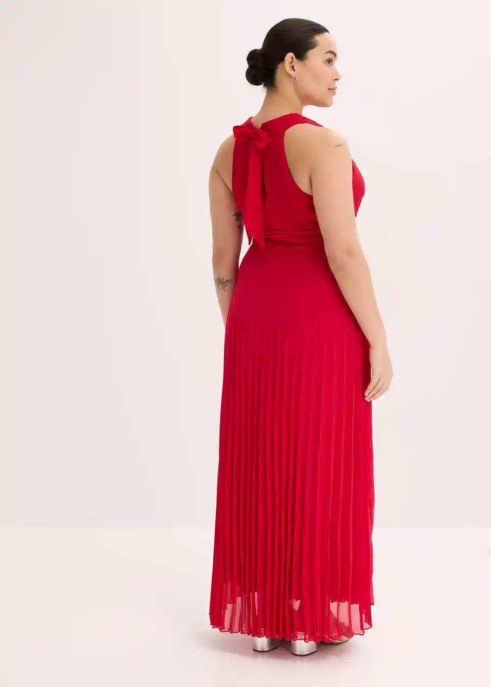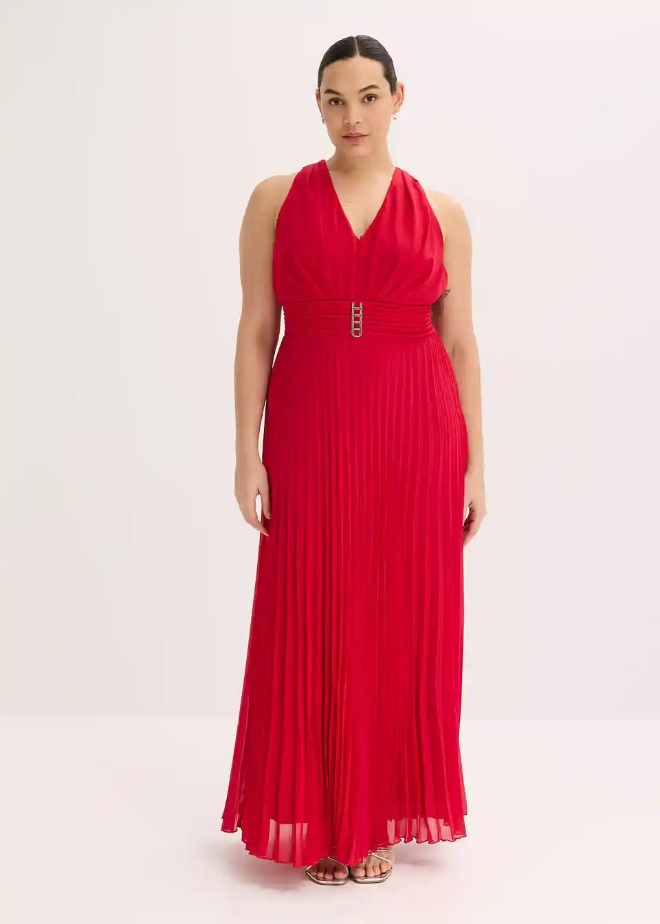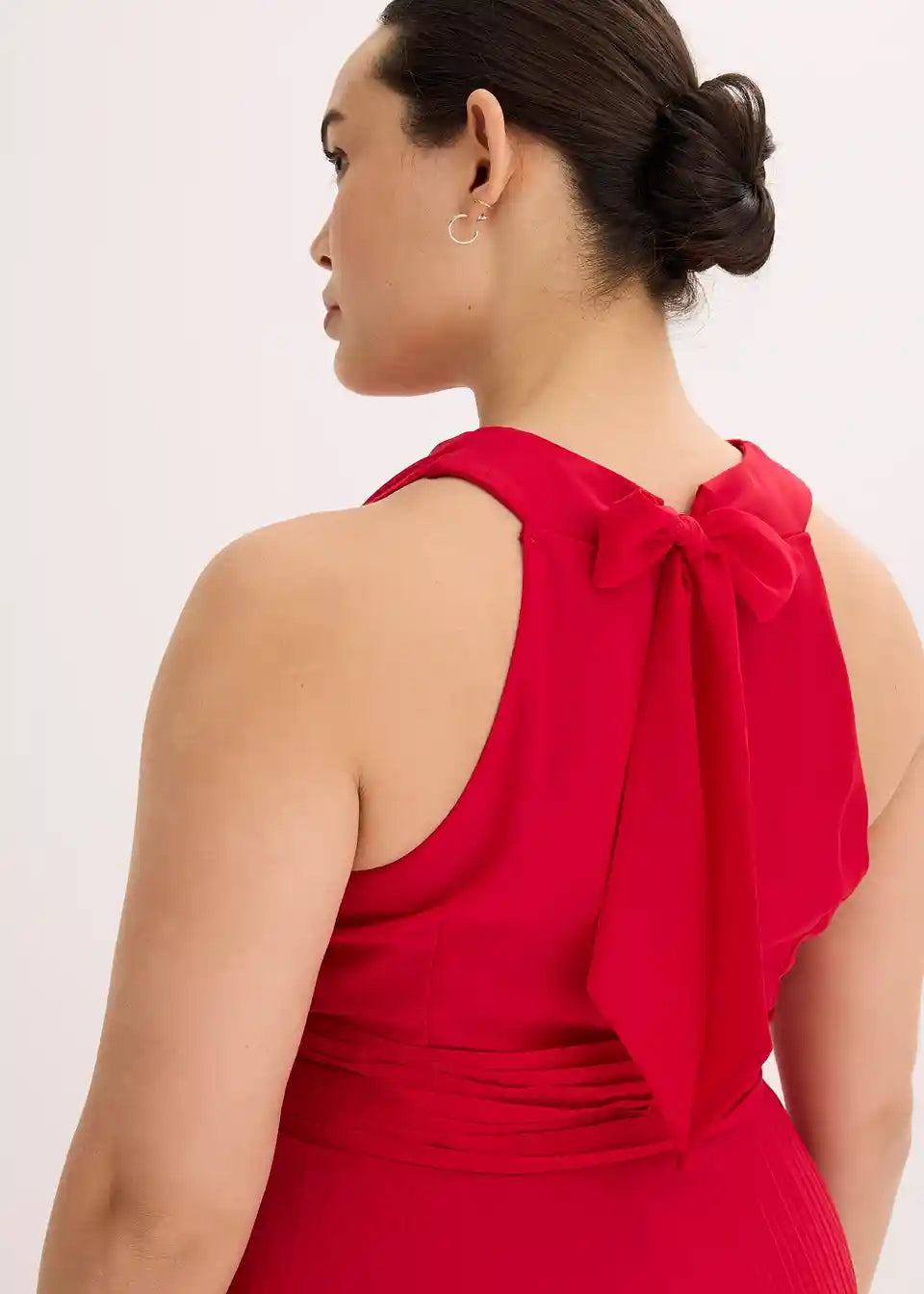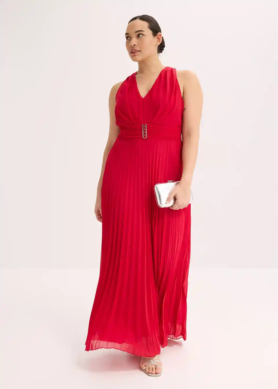 Šifonska obleka s plisiranim krilom in okrasno zaponko