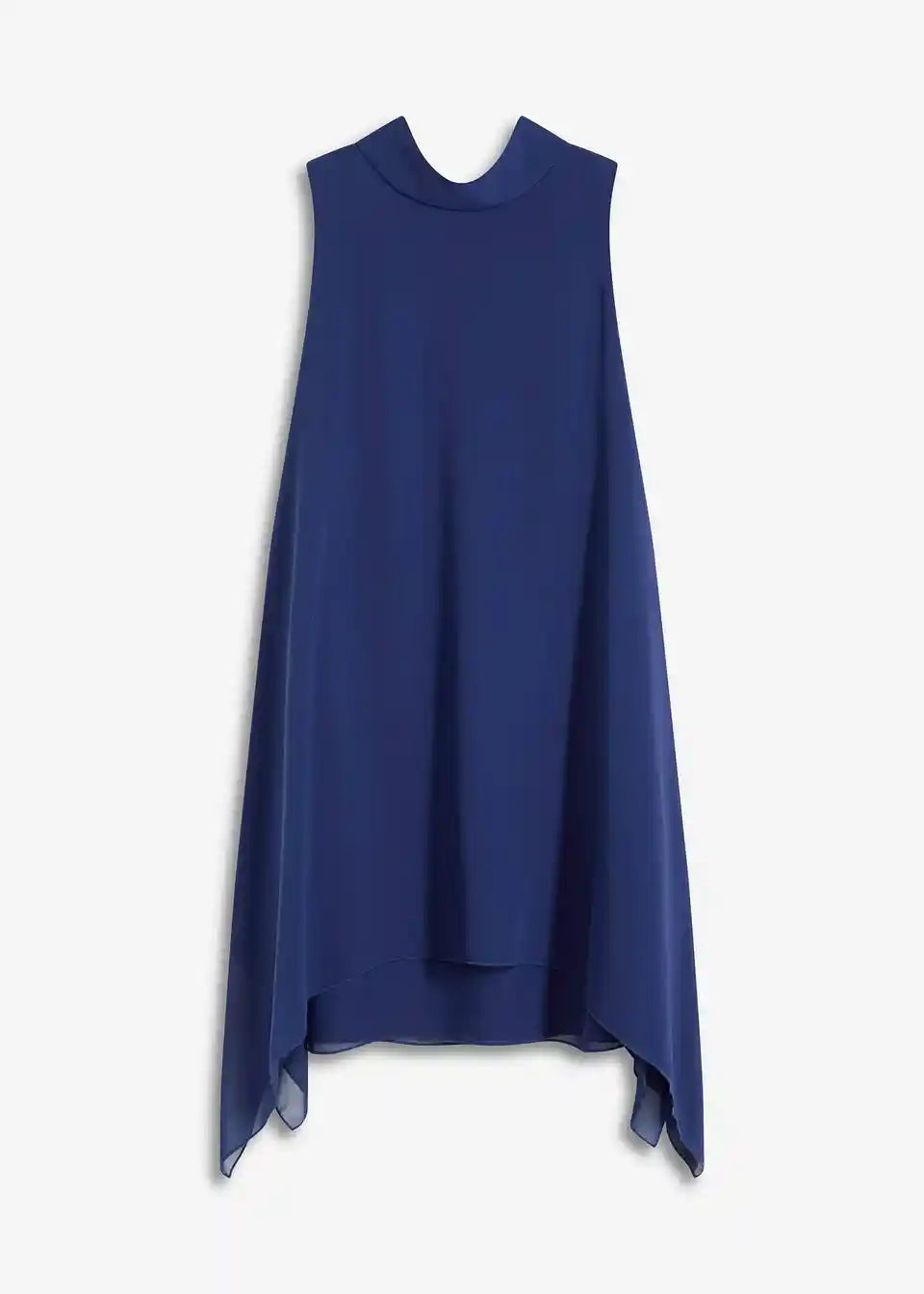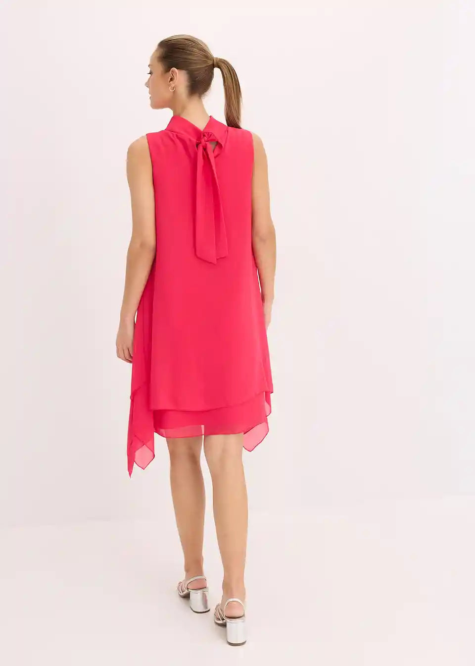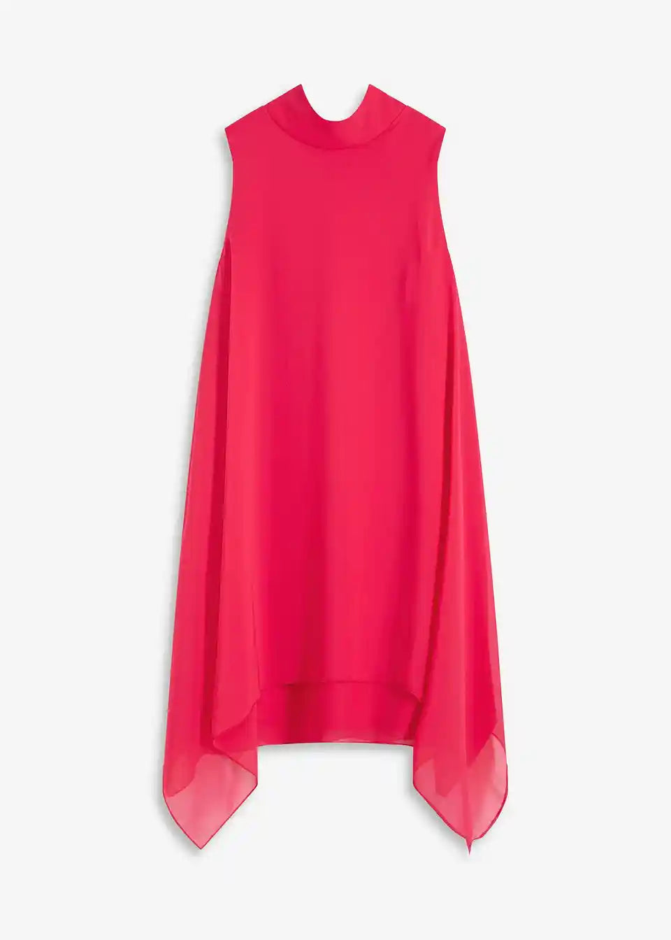 Moderno in ženstveno: asimetrična obleka iz finega šifona s preklopnim šal ovratnikom