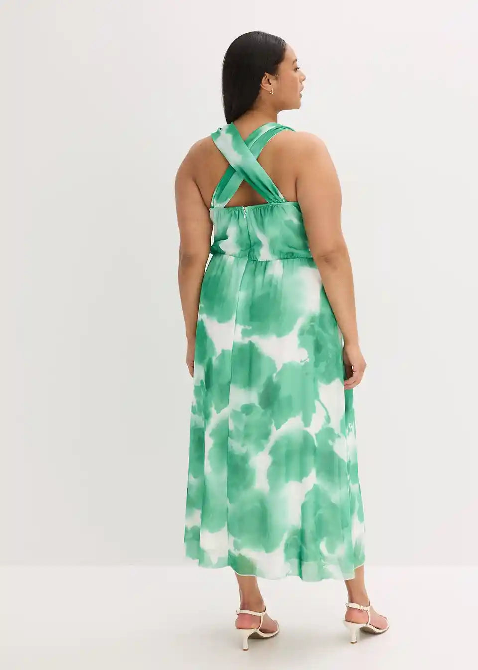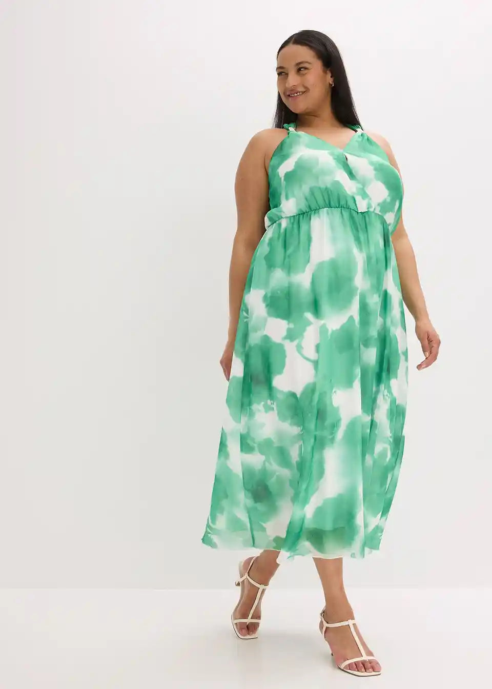 Šifonska obleka z naramnicami in dodatkom kot okras