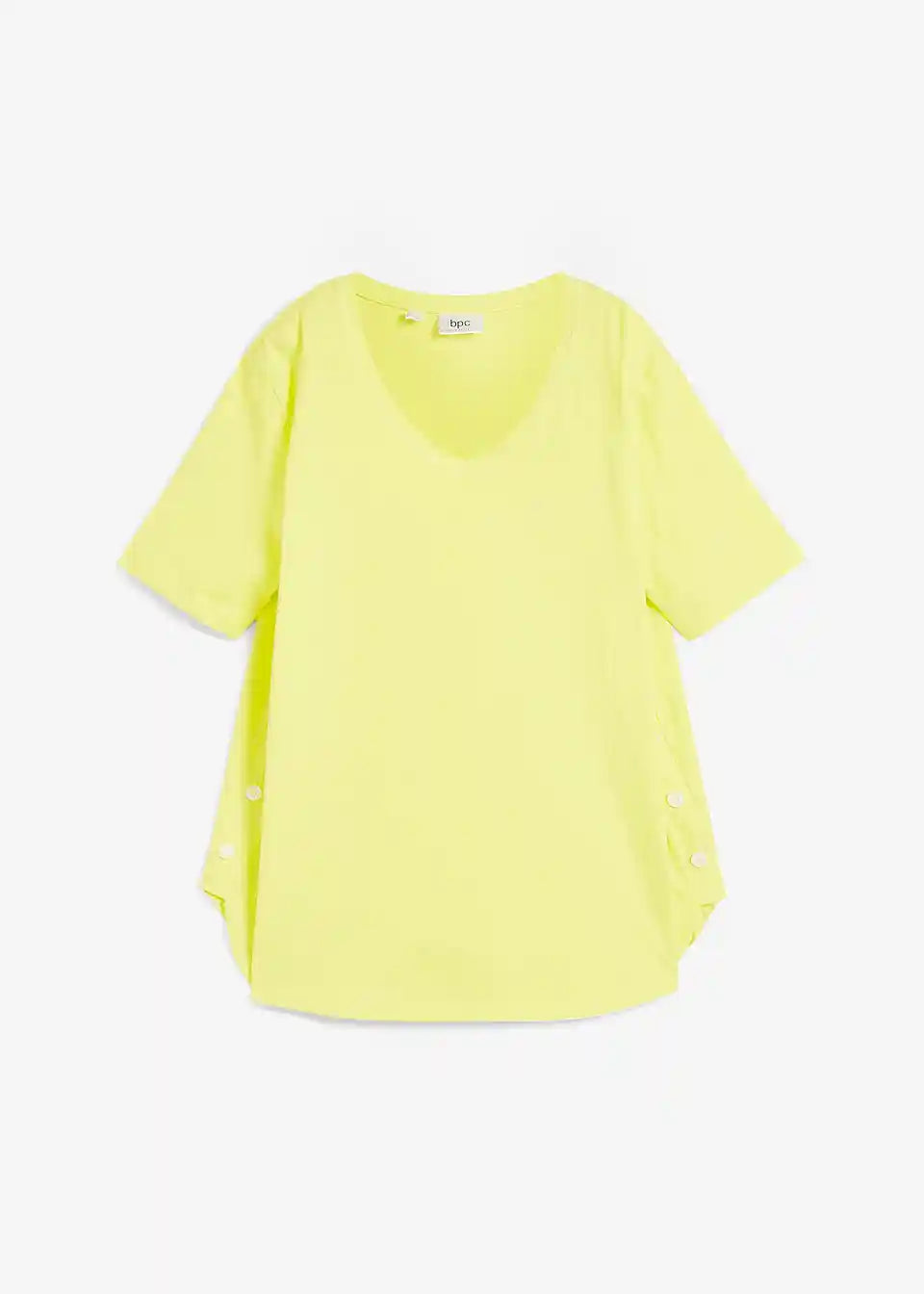 Majica s podrobnostjo z gumbi ob strani iz organskega bombaža in z V-izrezom