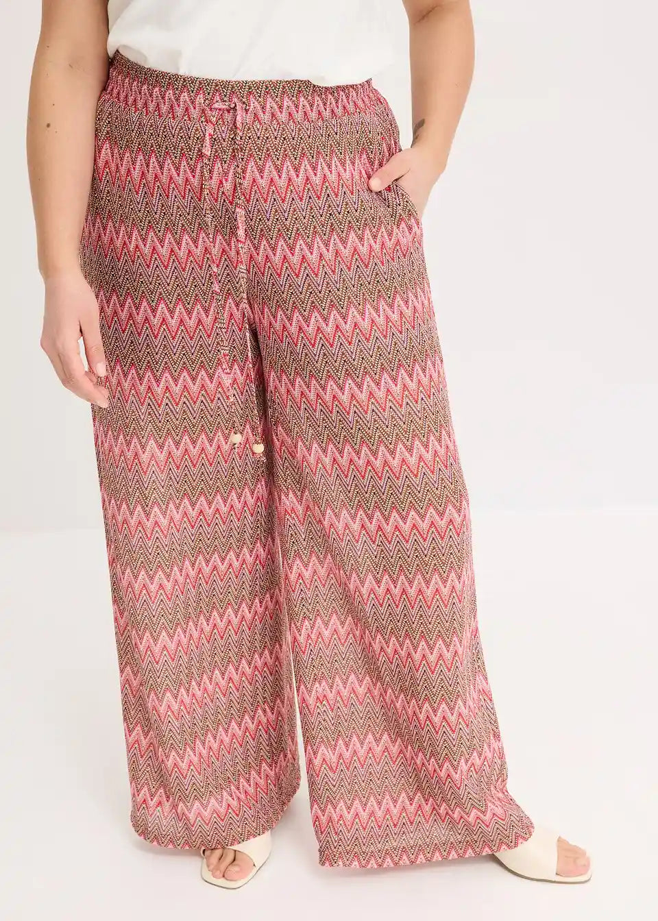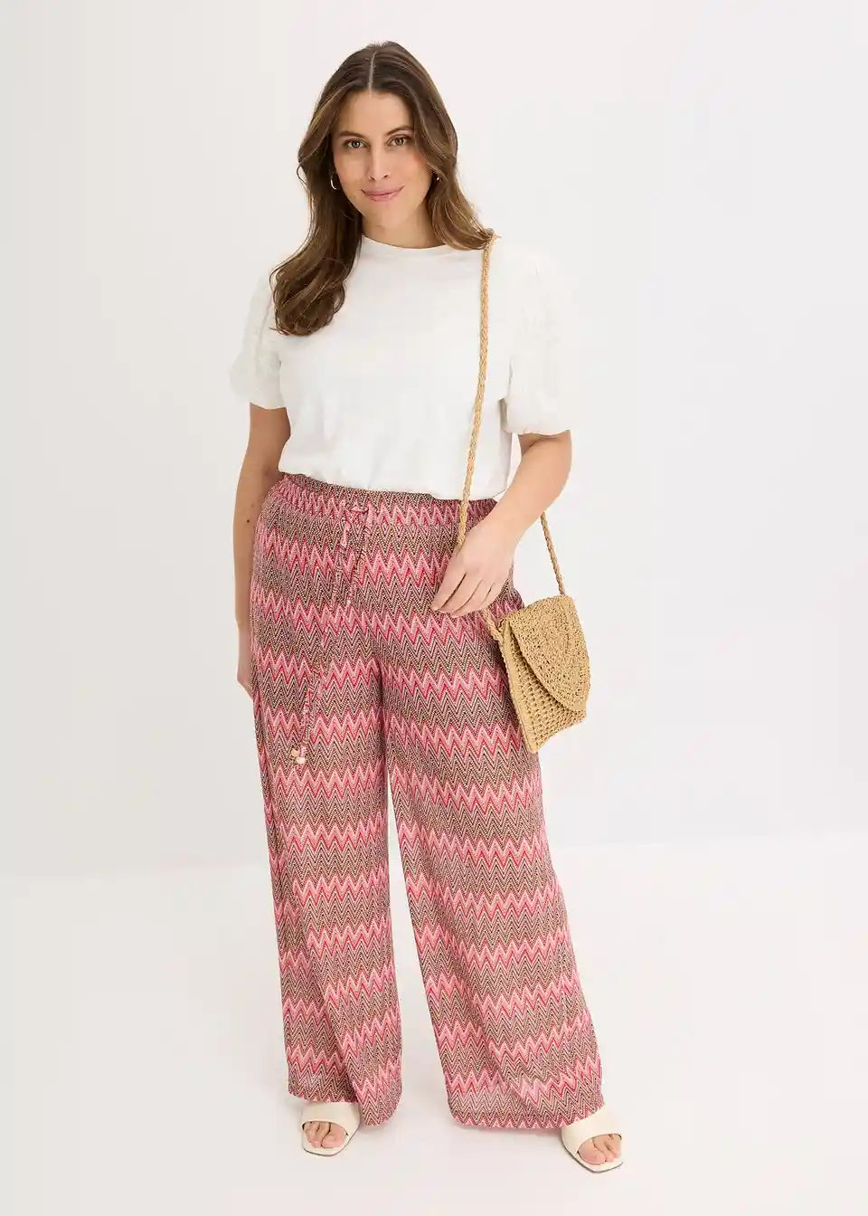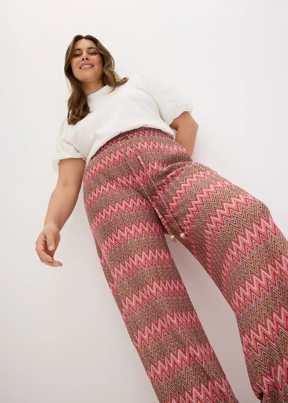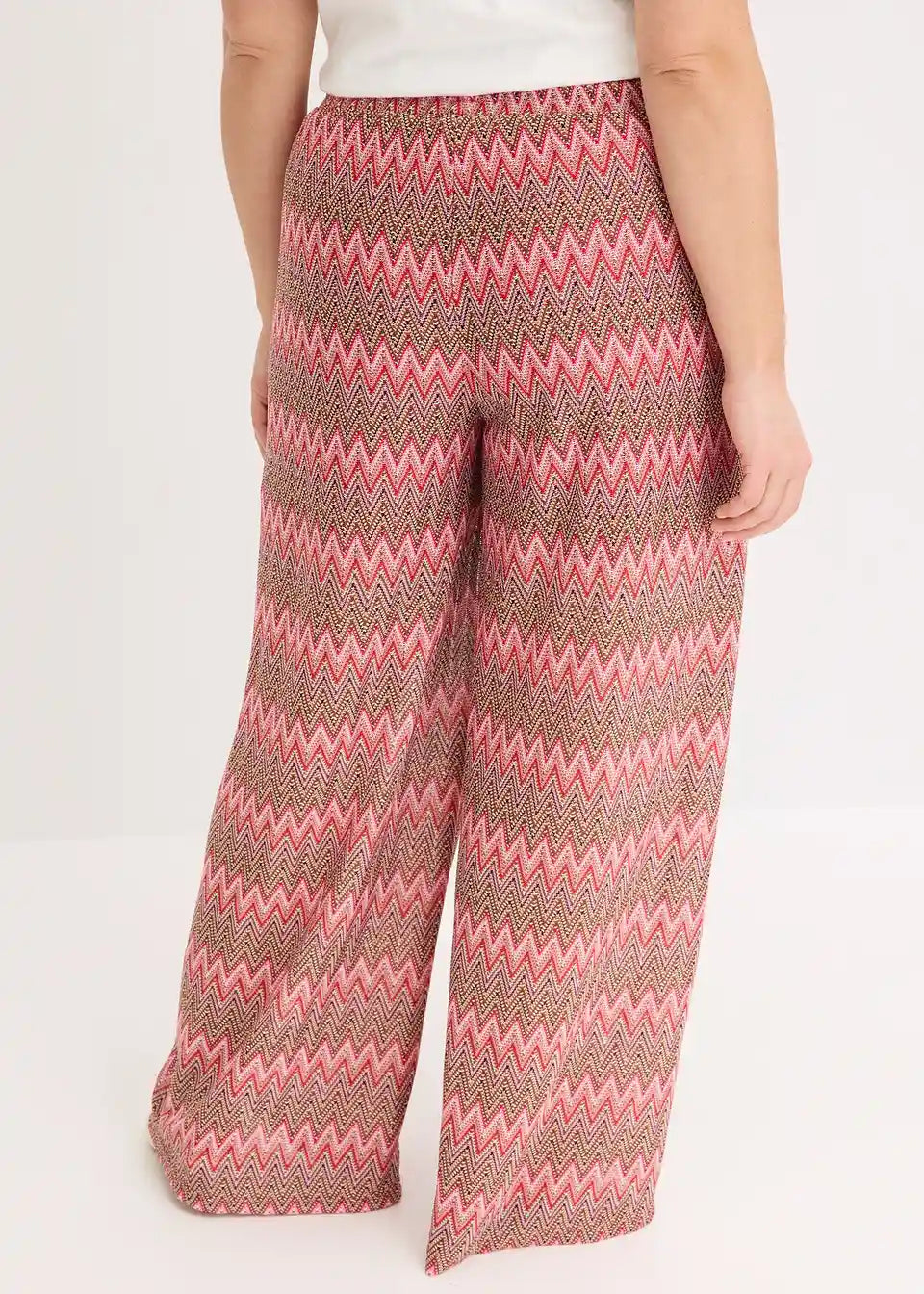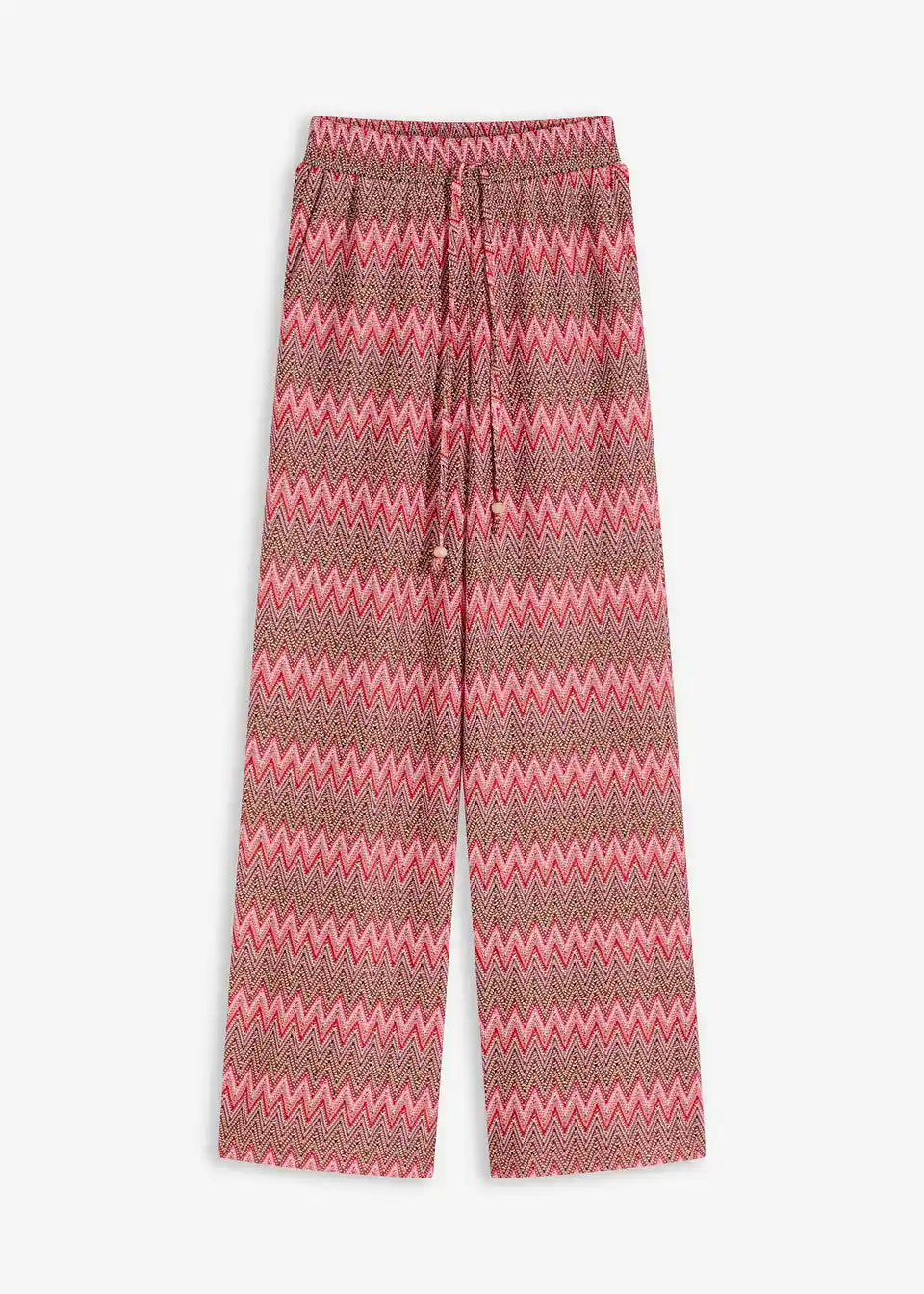 modne široko krojene hlače iz jerseya v videzu kvačkanja z elastičnim pasom