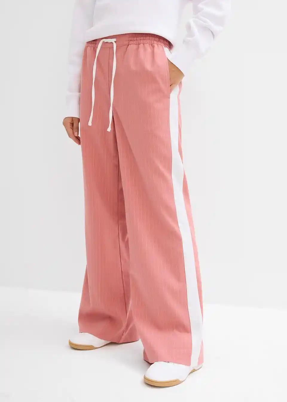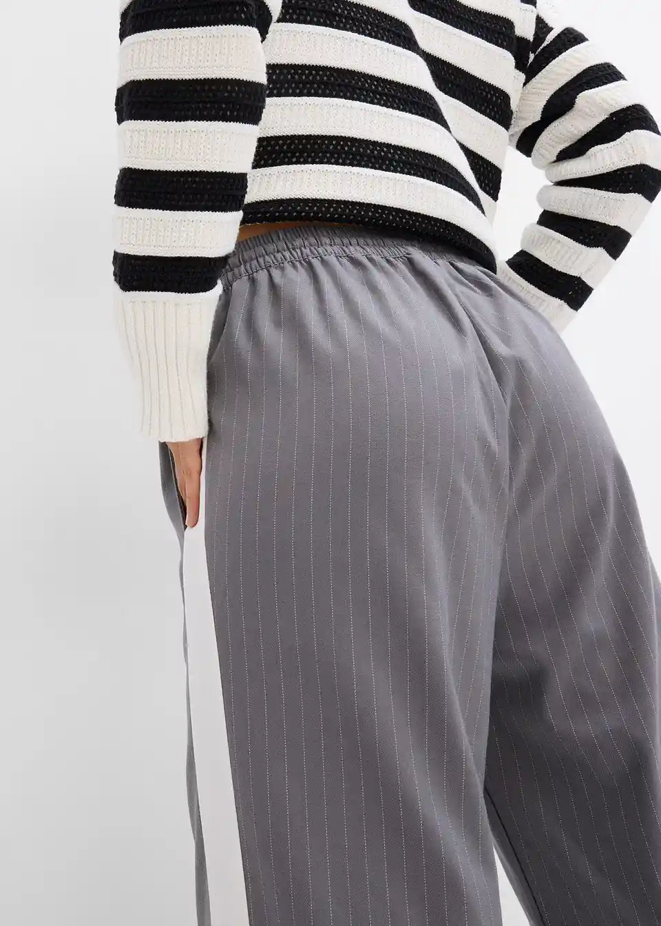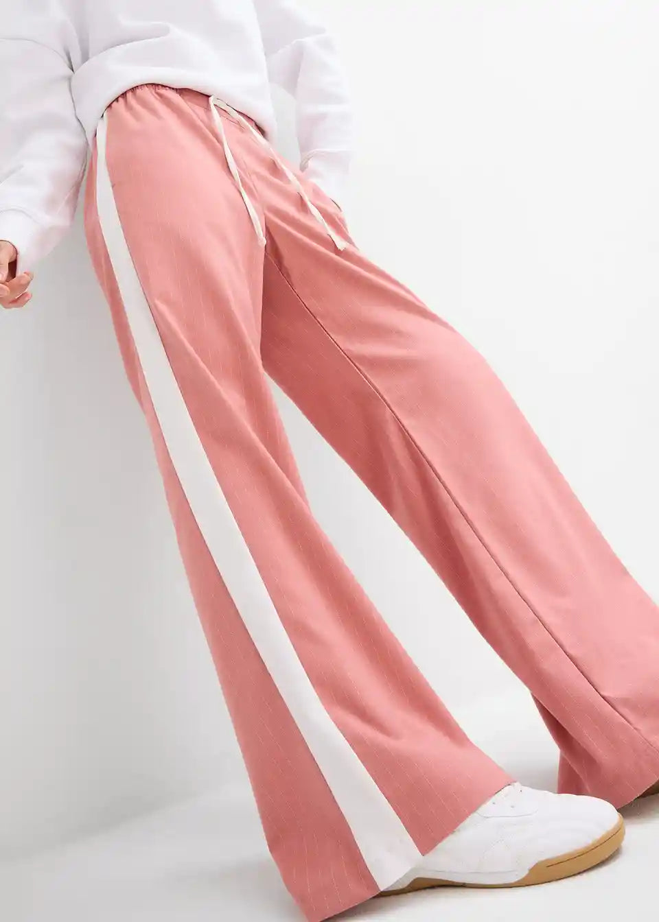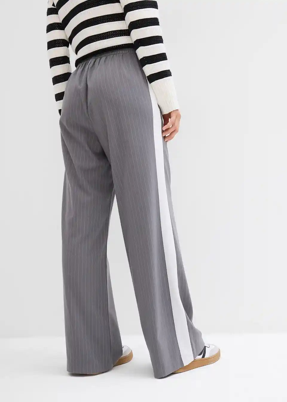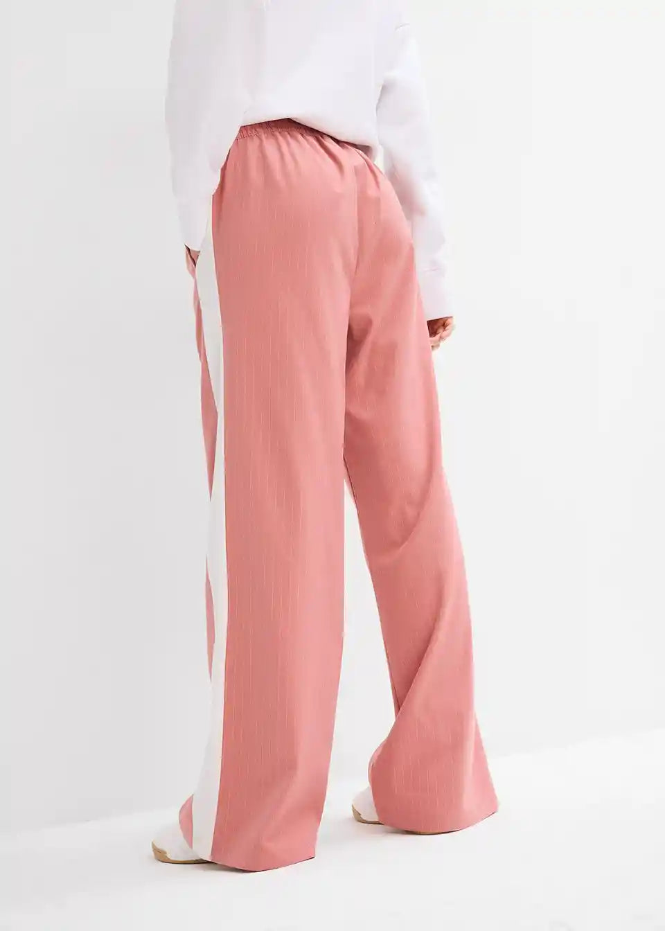 Široke hlače brez zapenjanja s kontrastnimi črtami