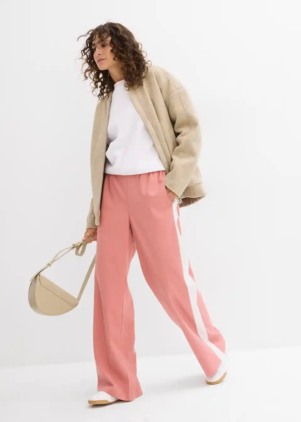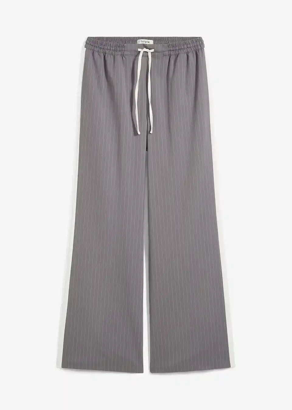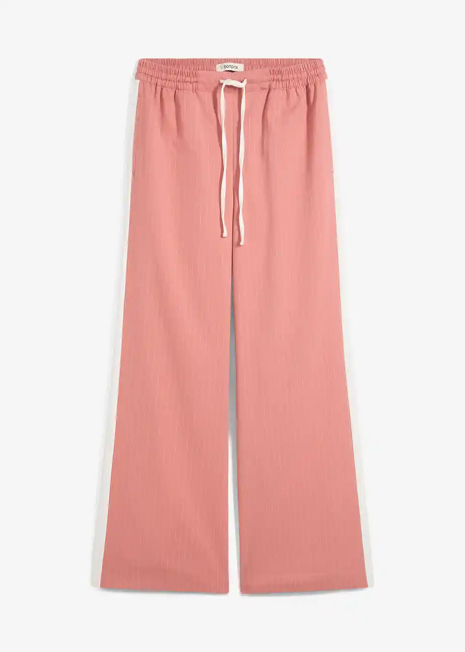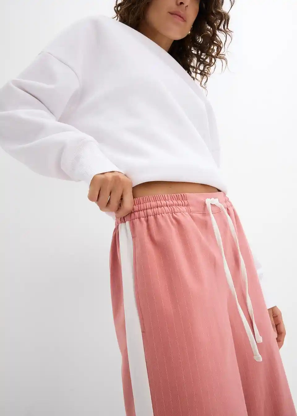 Široke hlače brez zapenjanja s kontrastnimi črtami