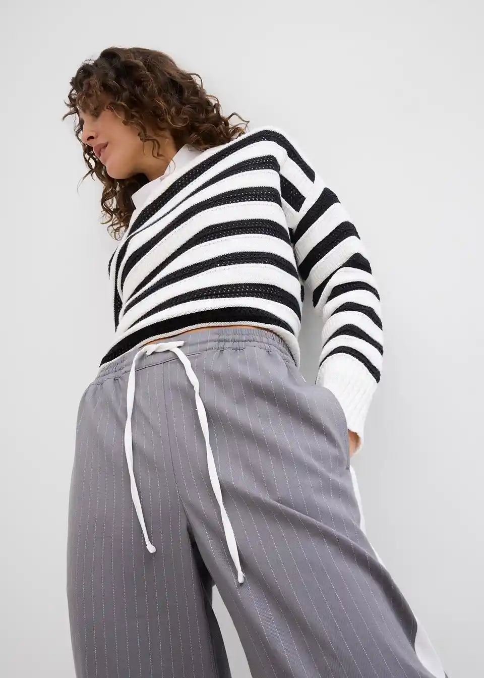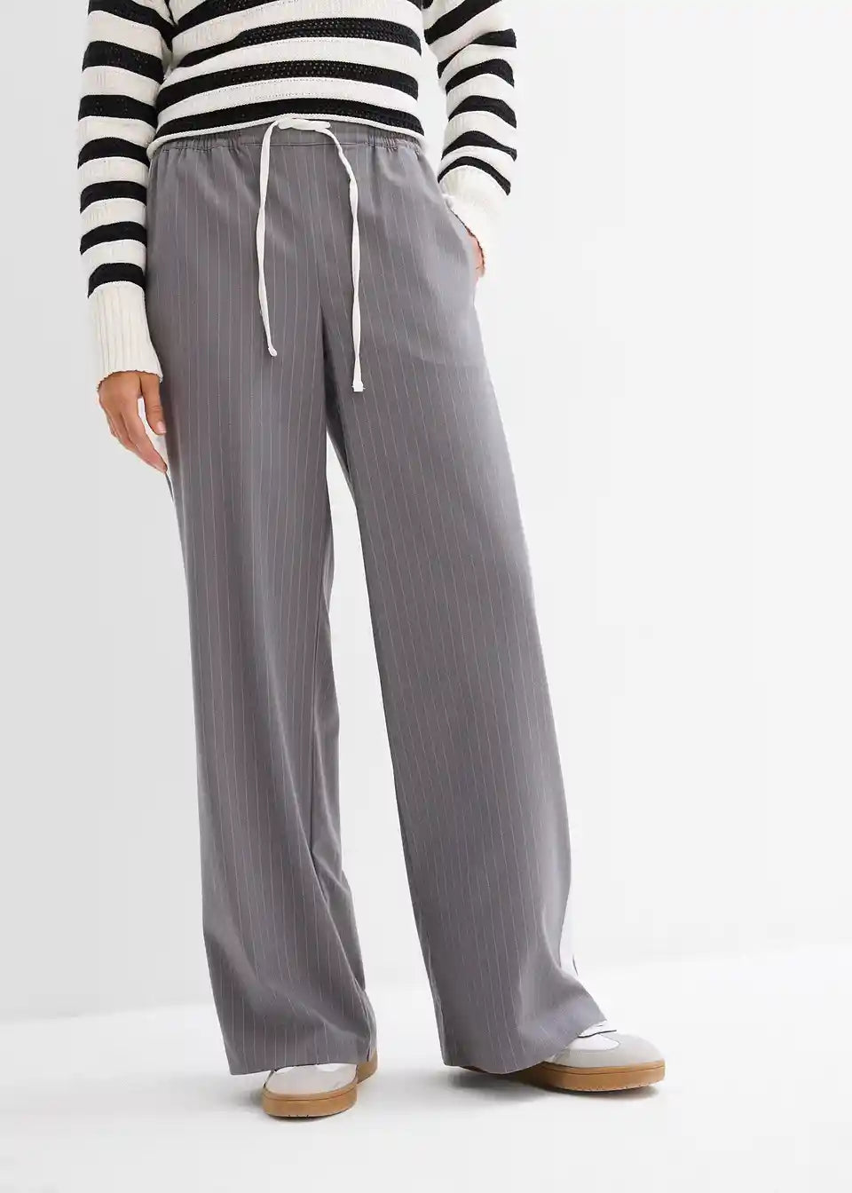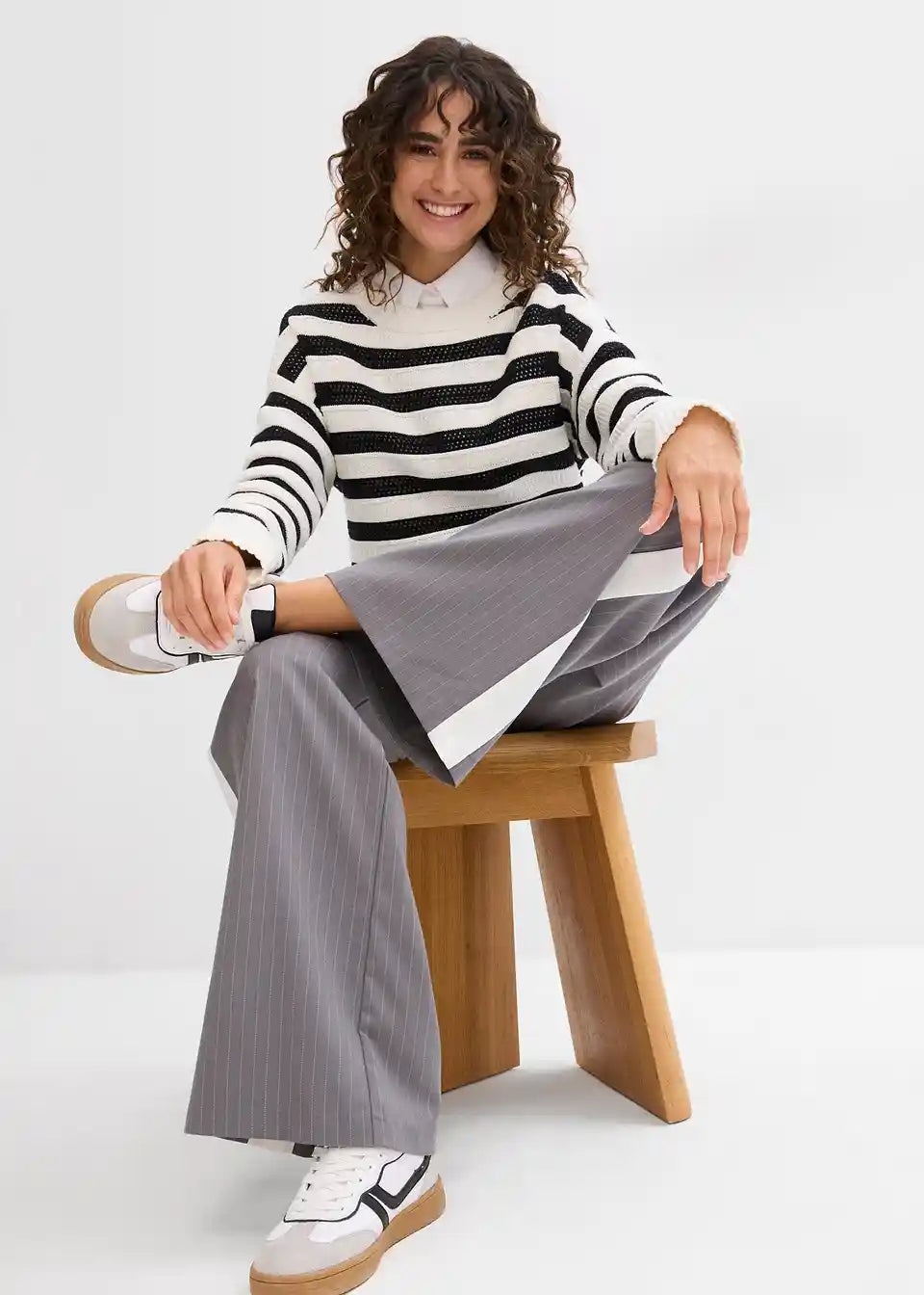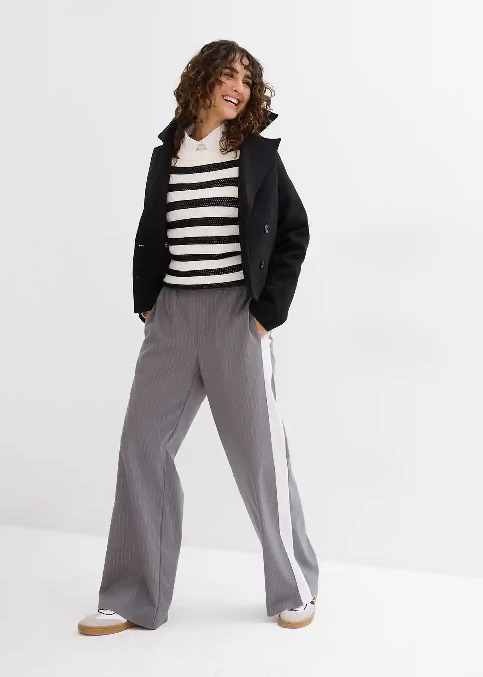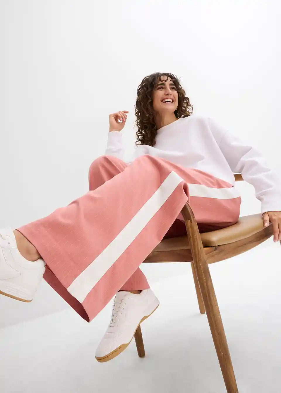 Široke hlače brez zapenjanja s kontrastnimi črtami