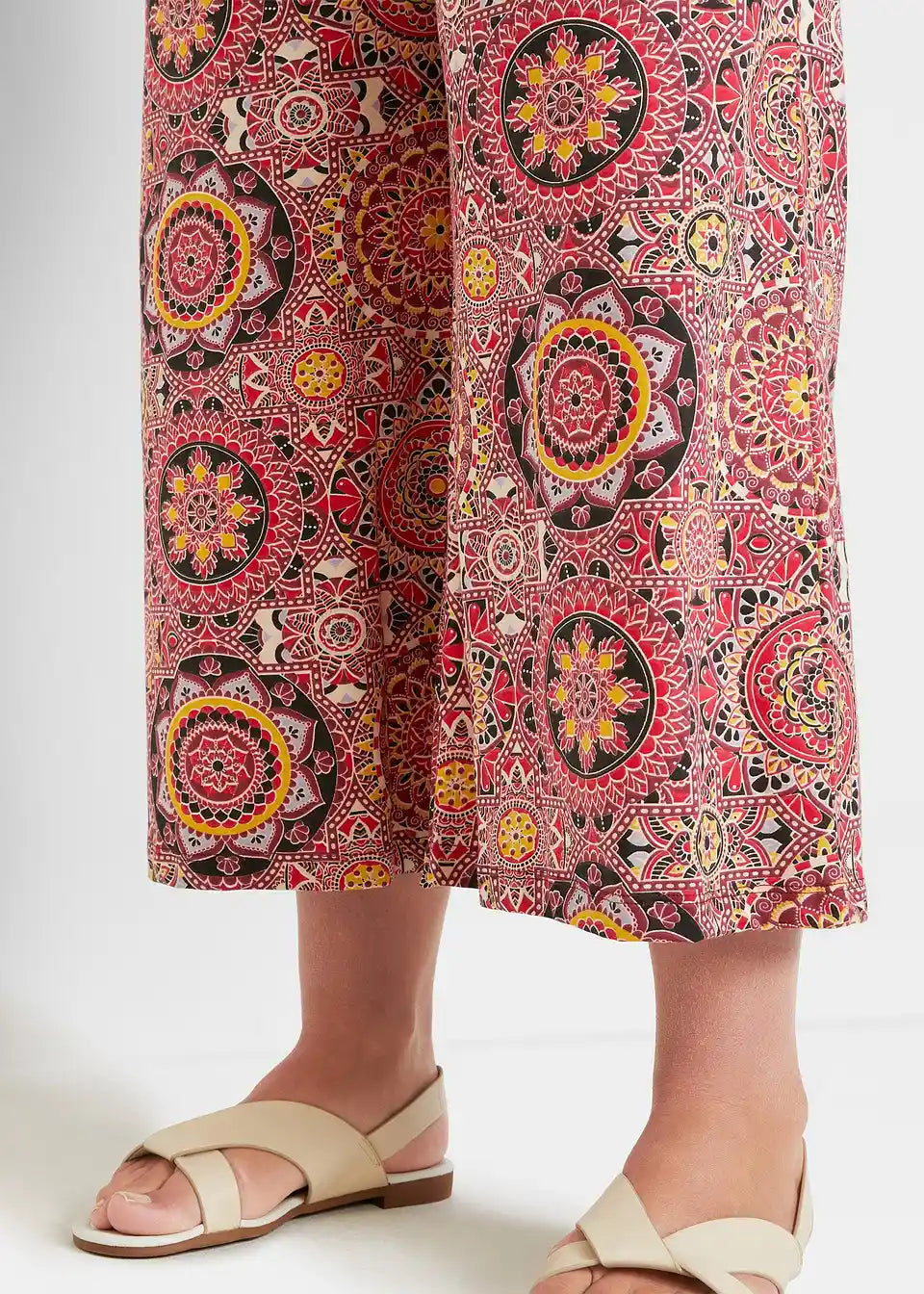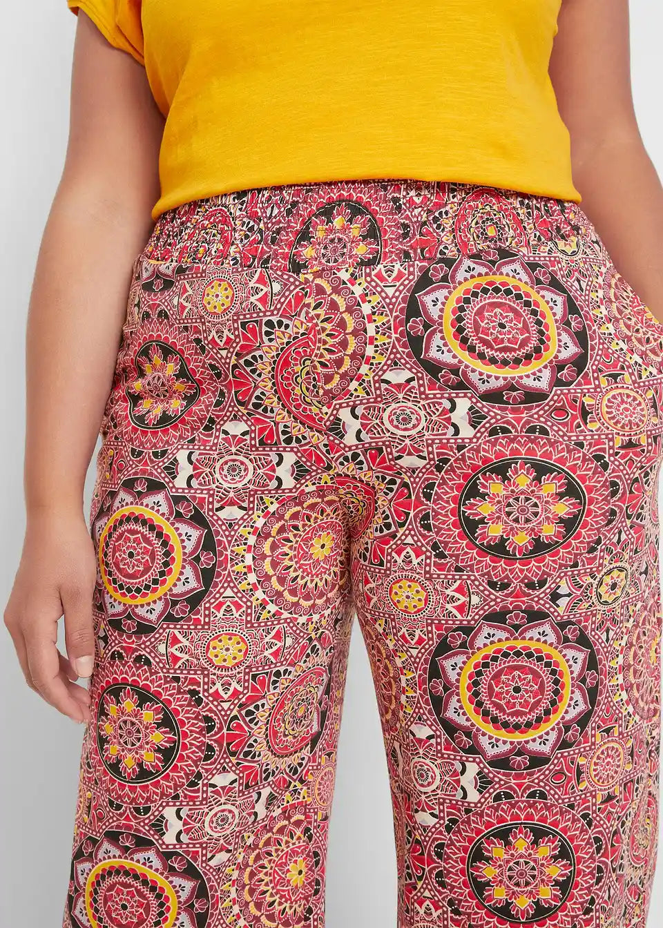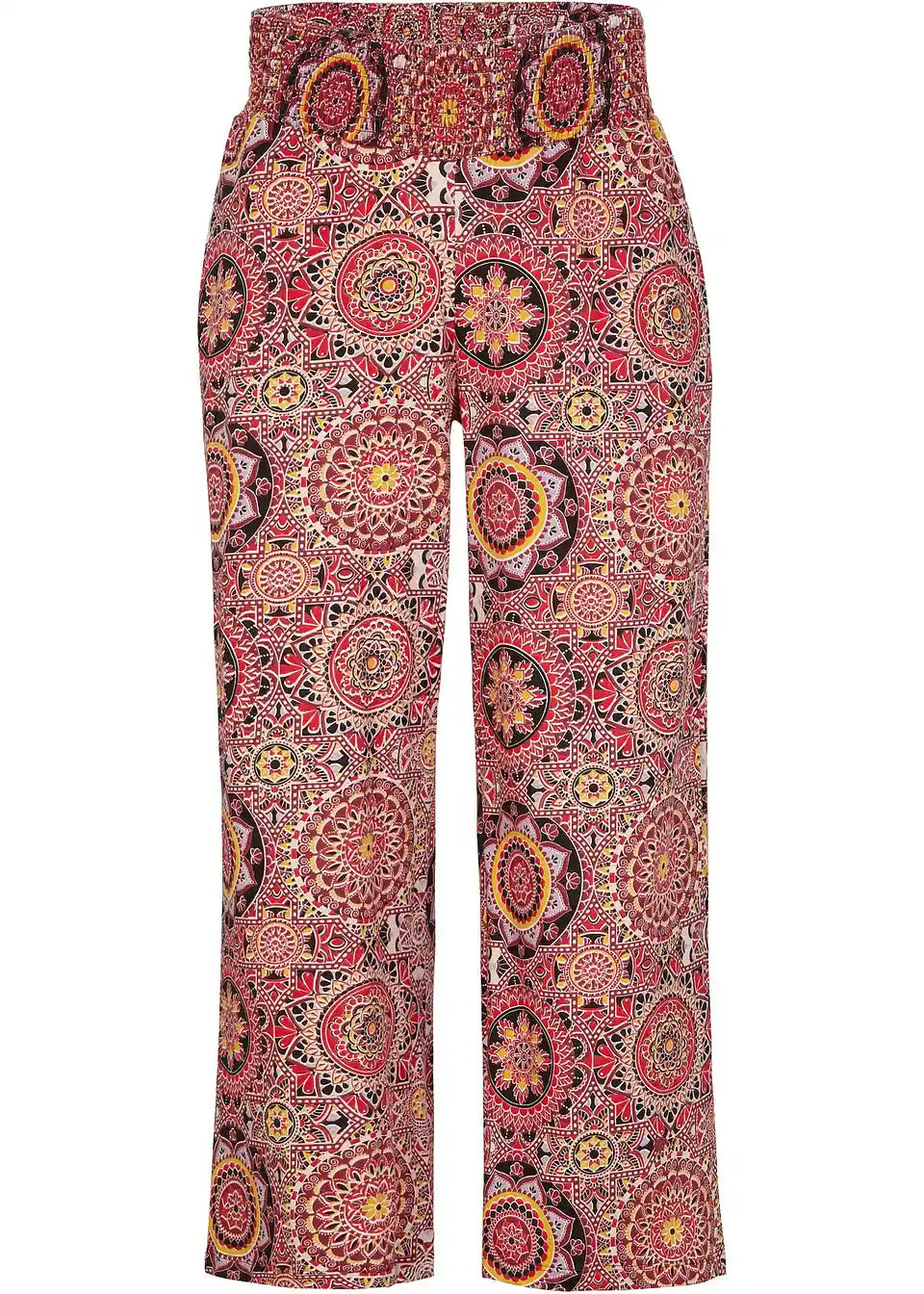 Udobne, široko krojene Jersey Culotte hlače s širokim smock pasom za večje udobje, 7/8 dolžine z orientalskim potiskom