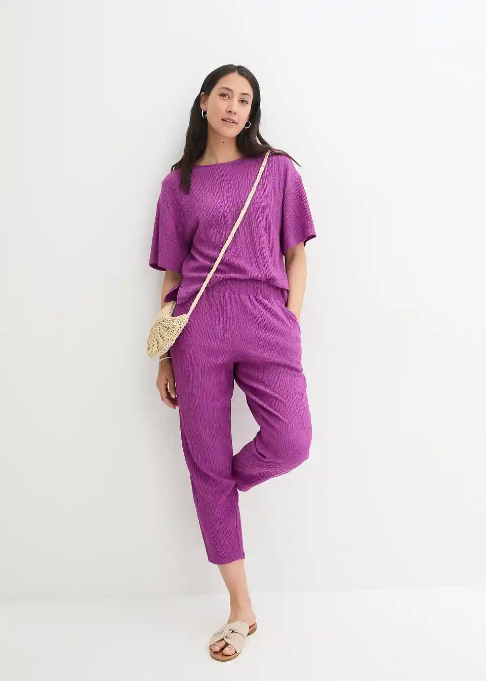 Široke hlače iz krepastega jerseyja v dolžini do gležnjev