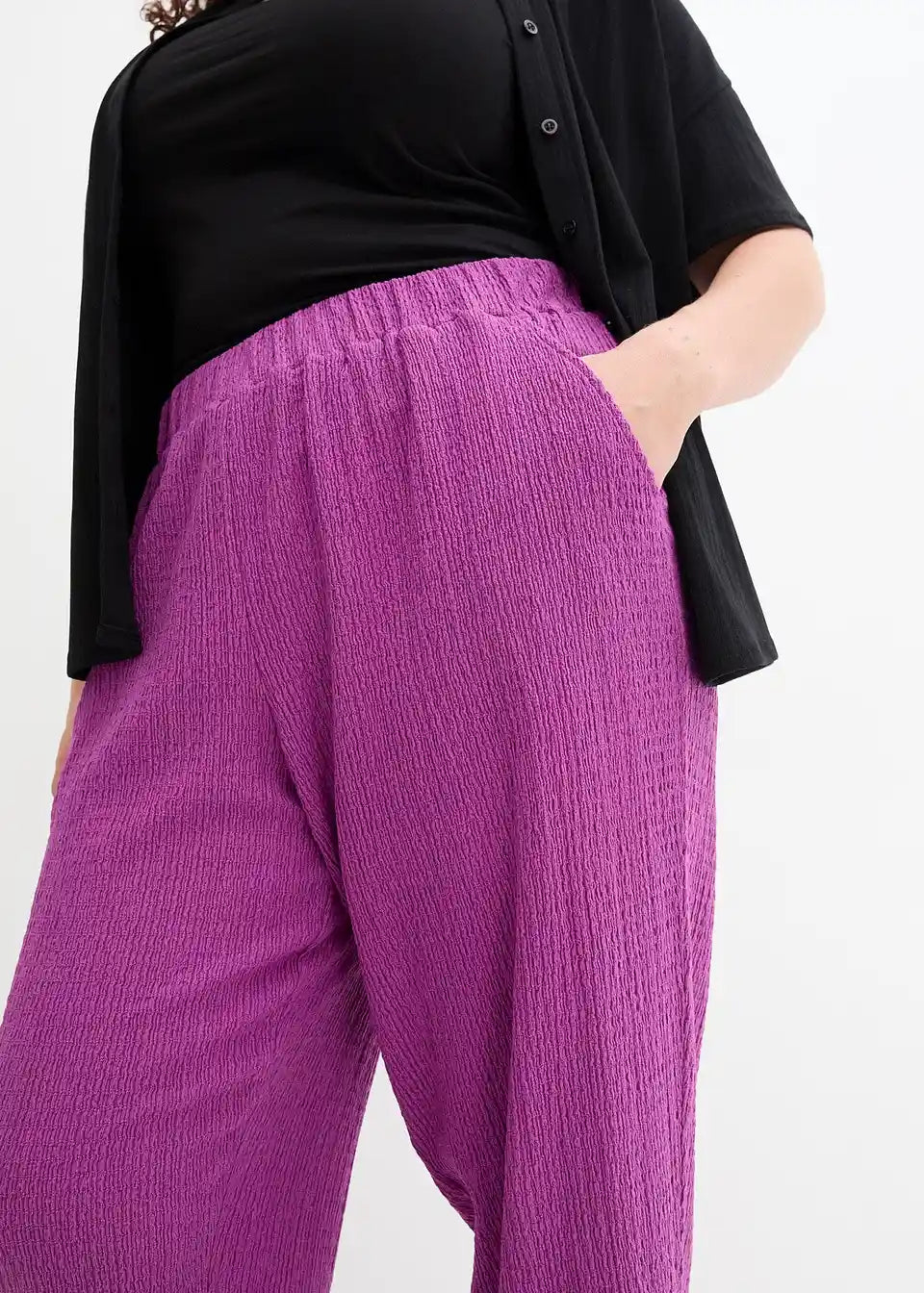 Široke hlače iz krepastega jerseyja v dolžini do gležnjev