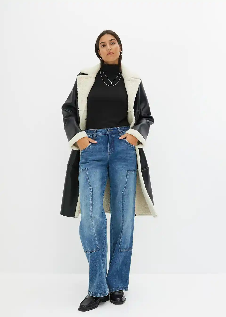 Kavbojke s širokimi hlačnicami in srednje visokim pasom