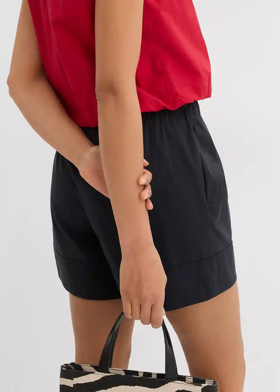 Kratke hlače s srednje visokim pasom, stranskimi žepi in elastičnim pasom
