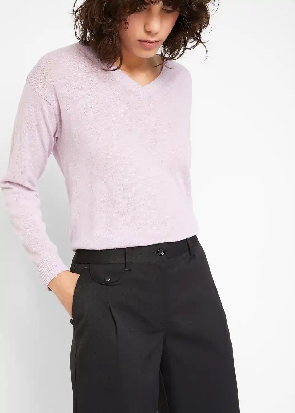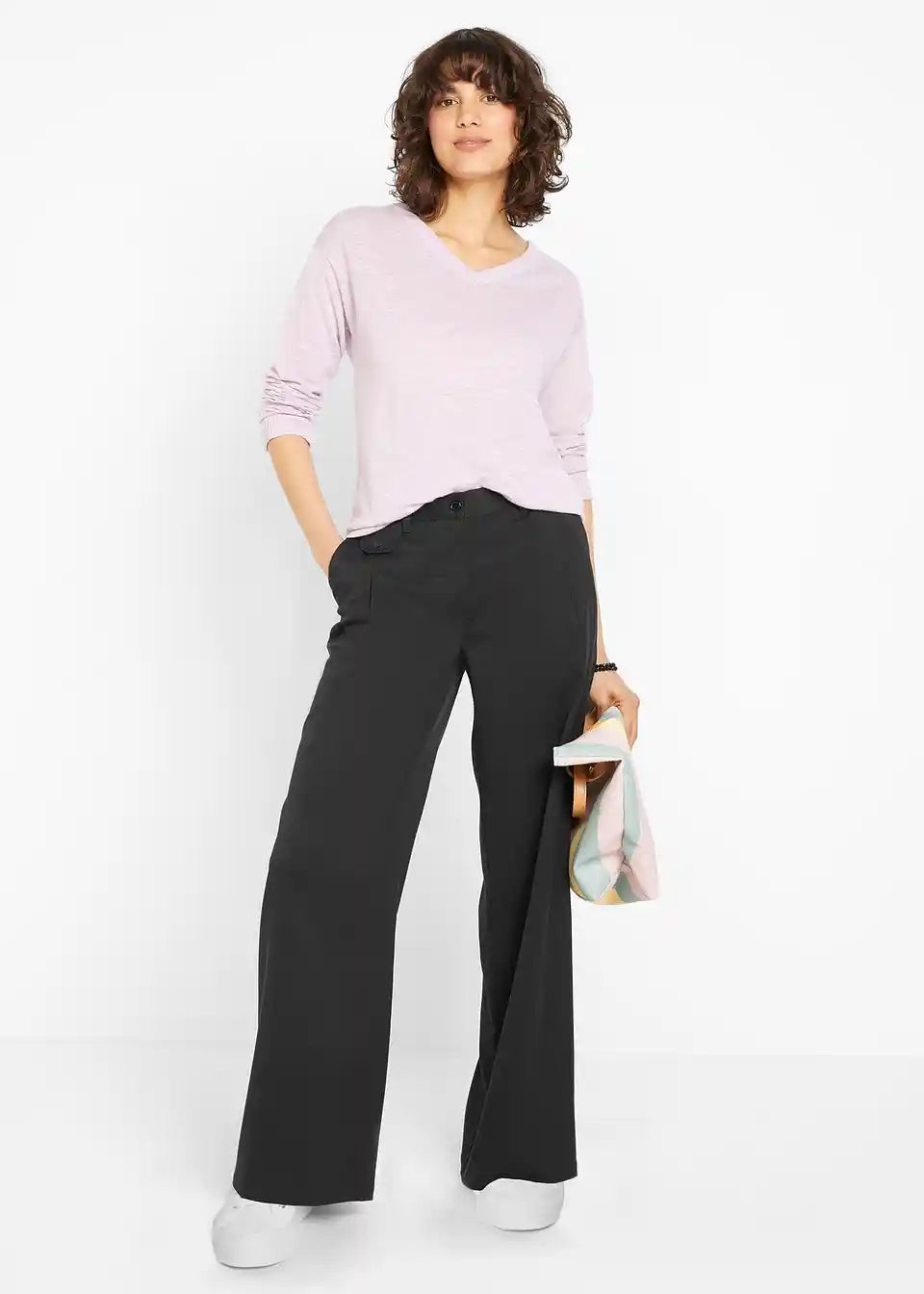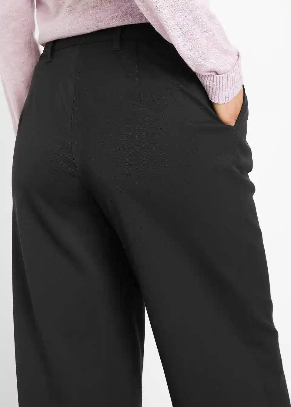 Široko krojene Marlene hlače s pasom High-Waist, gubami na pasu in trendovskimi detajli na žepih