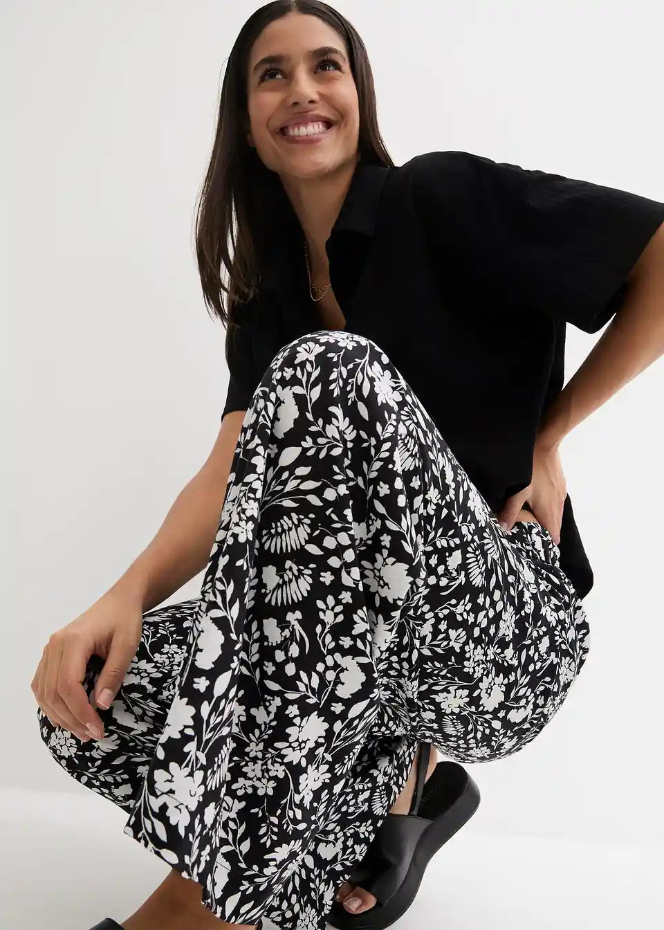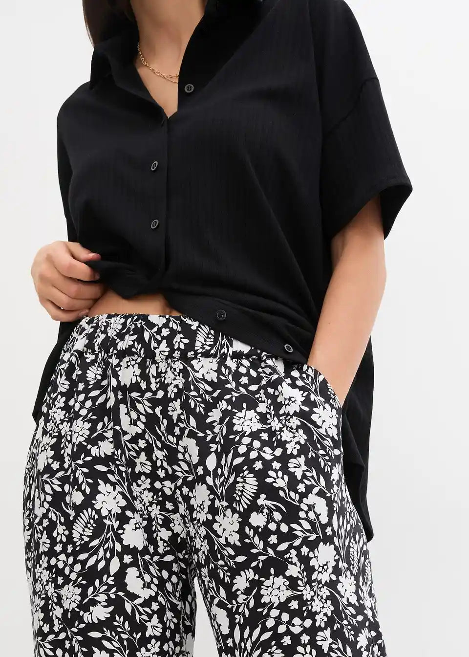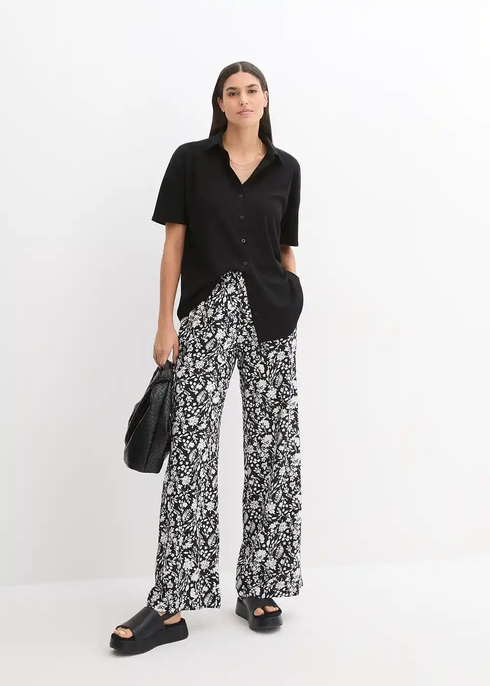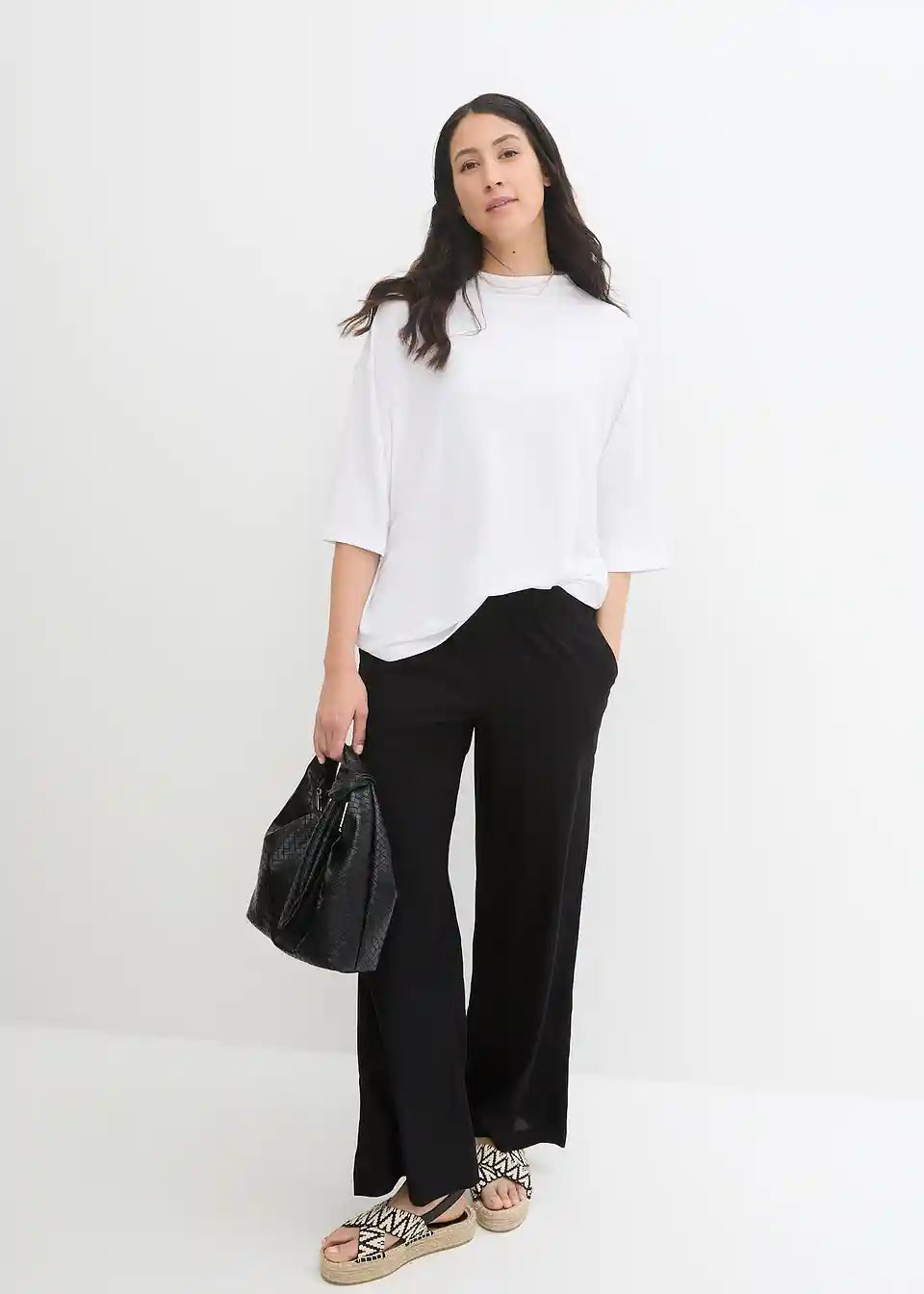 Dolge Palazzo hlače, ki objemajo boke zaradi širokega kroja