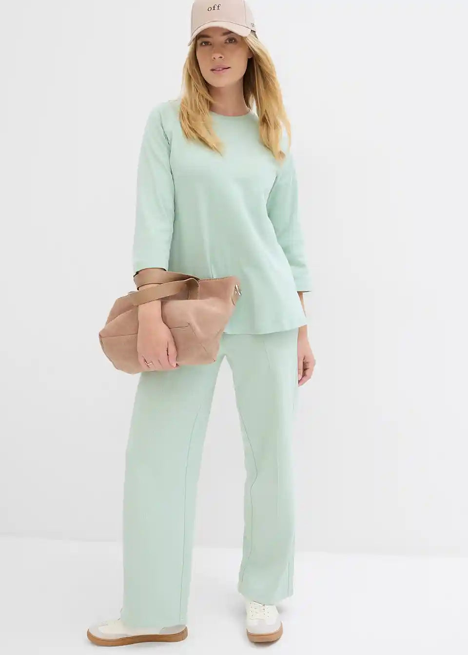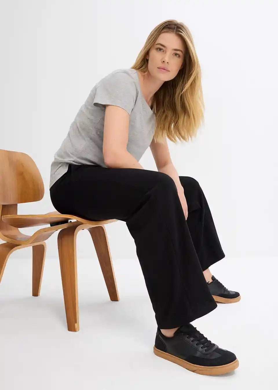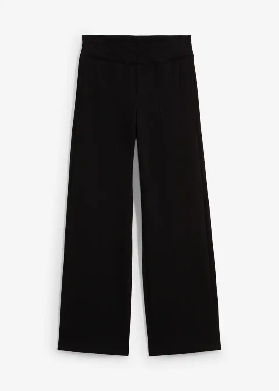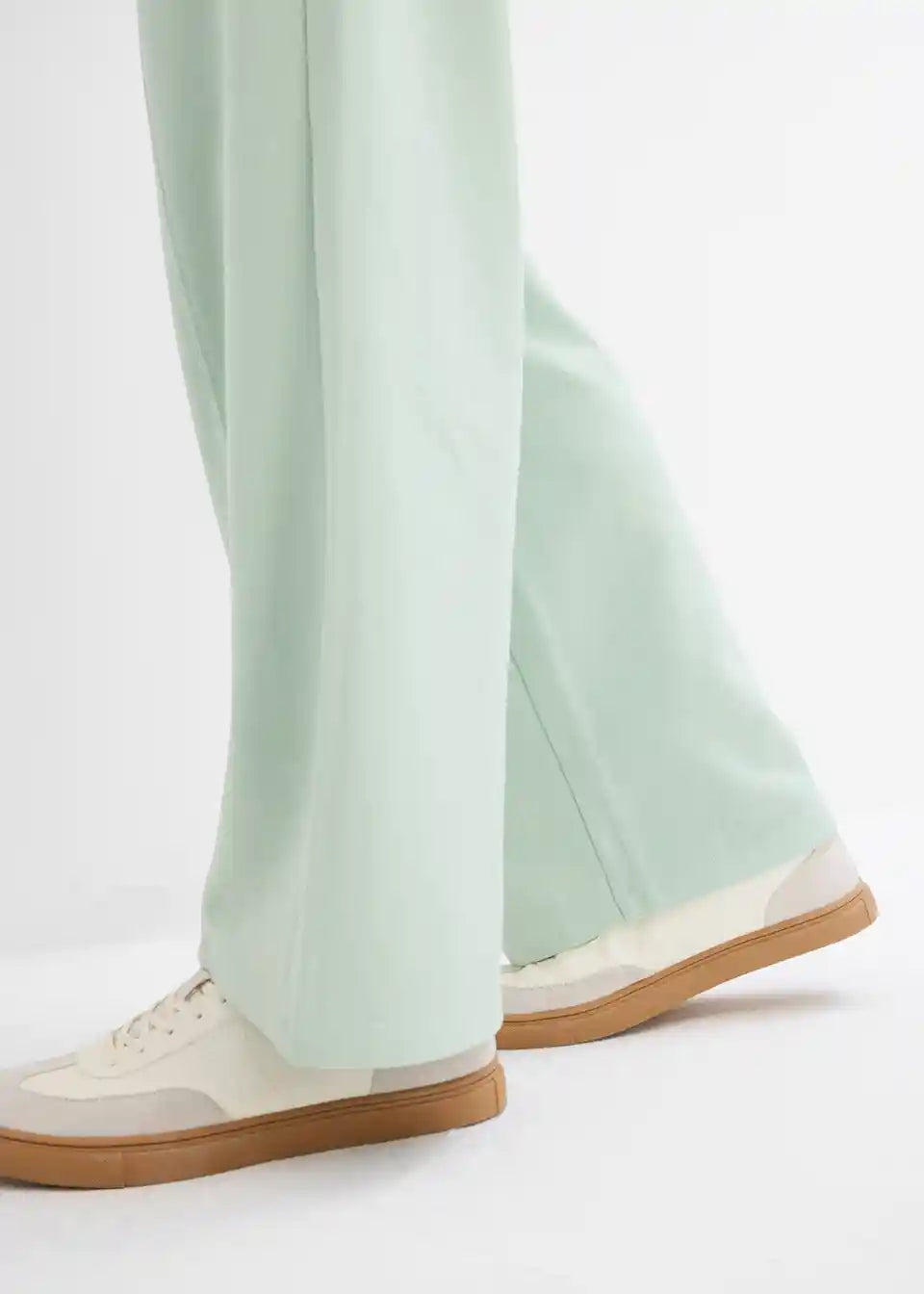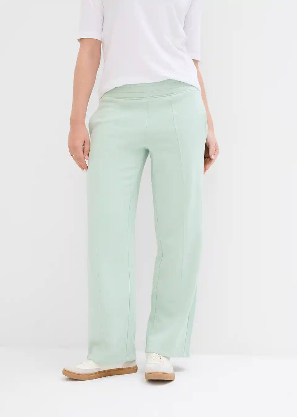 Široke hlače iz trikoja z oblikovalnim prešivom spredaj