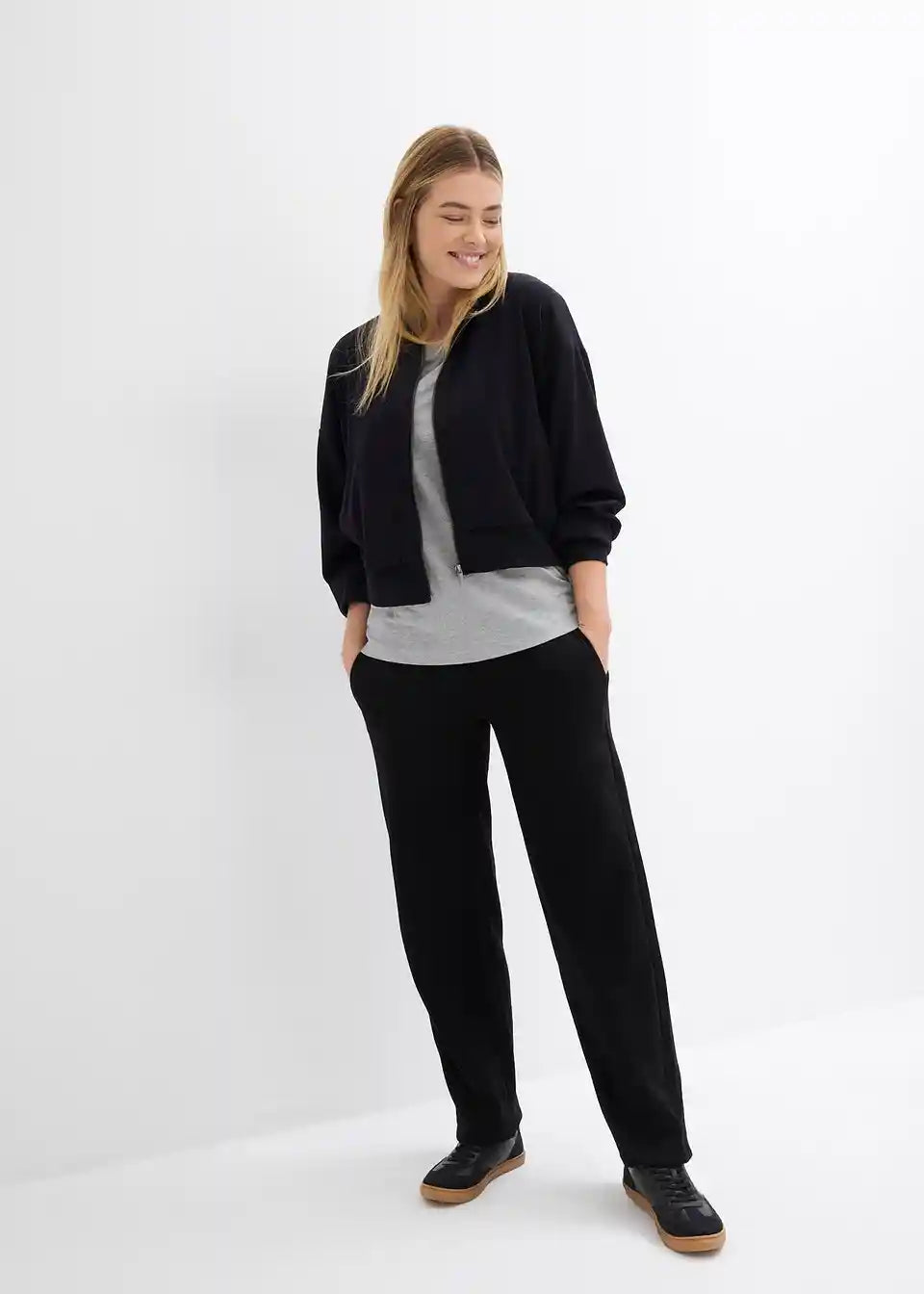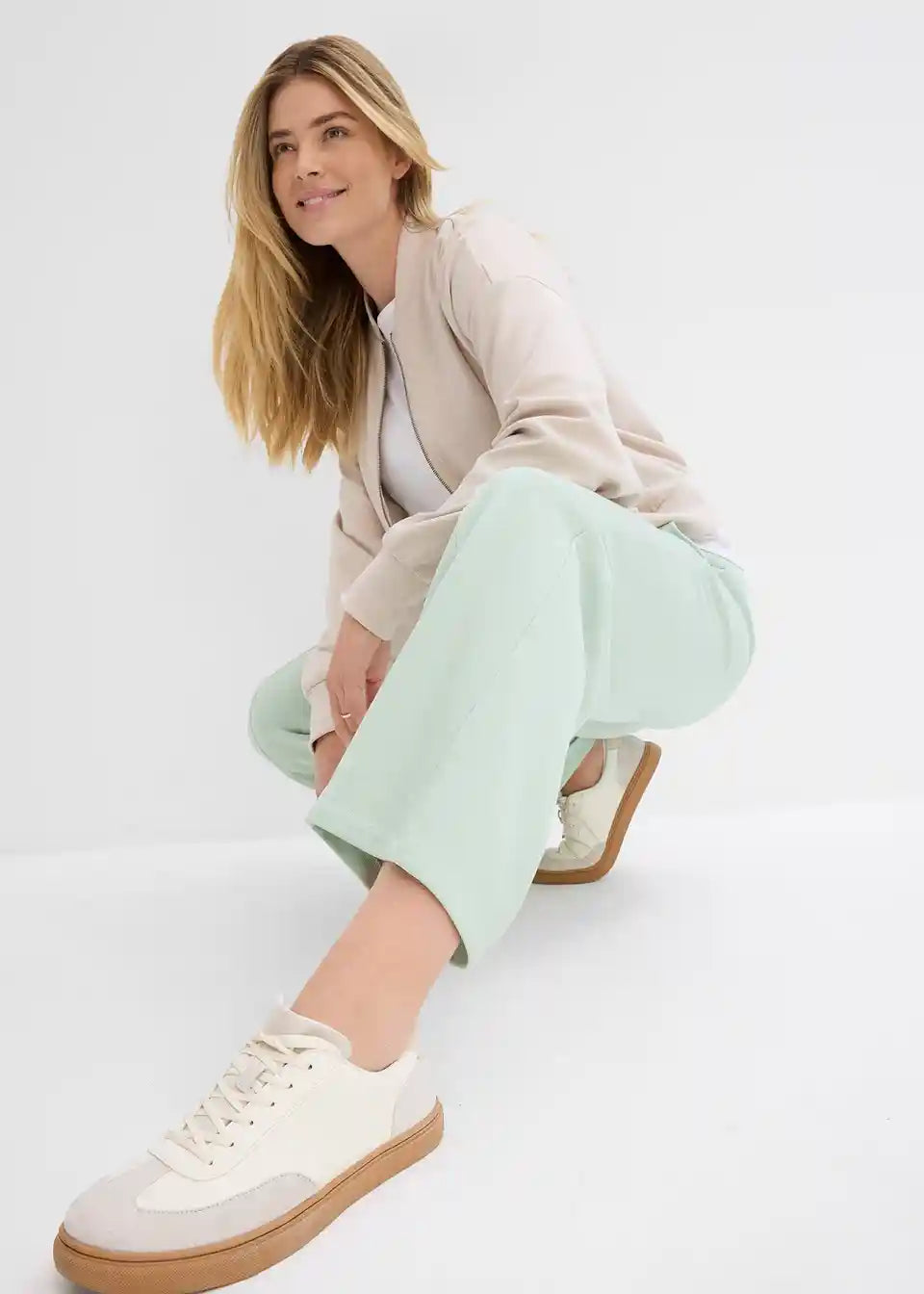 Široke sweat hlače z udobnim pasom in delitvenim šivom spredaj
