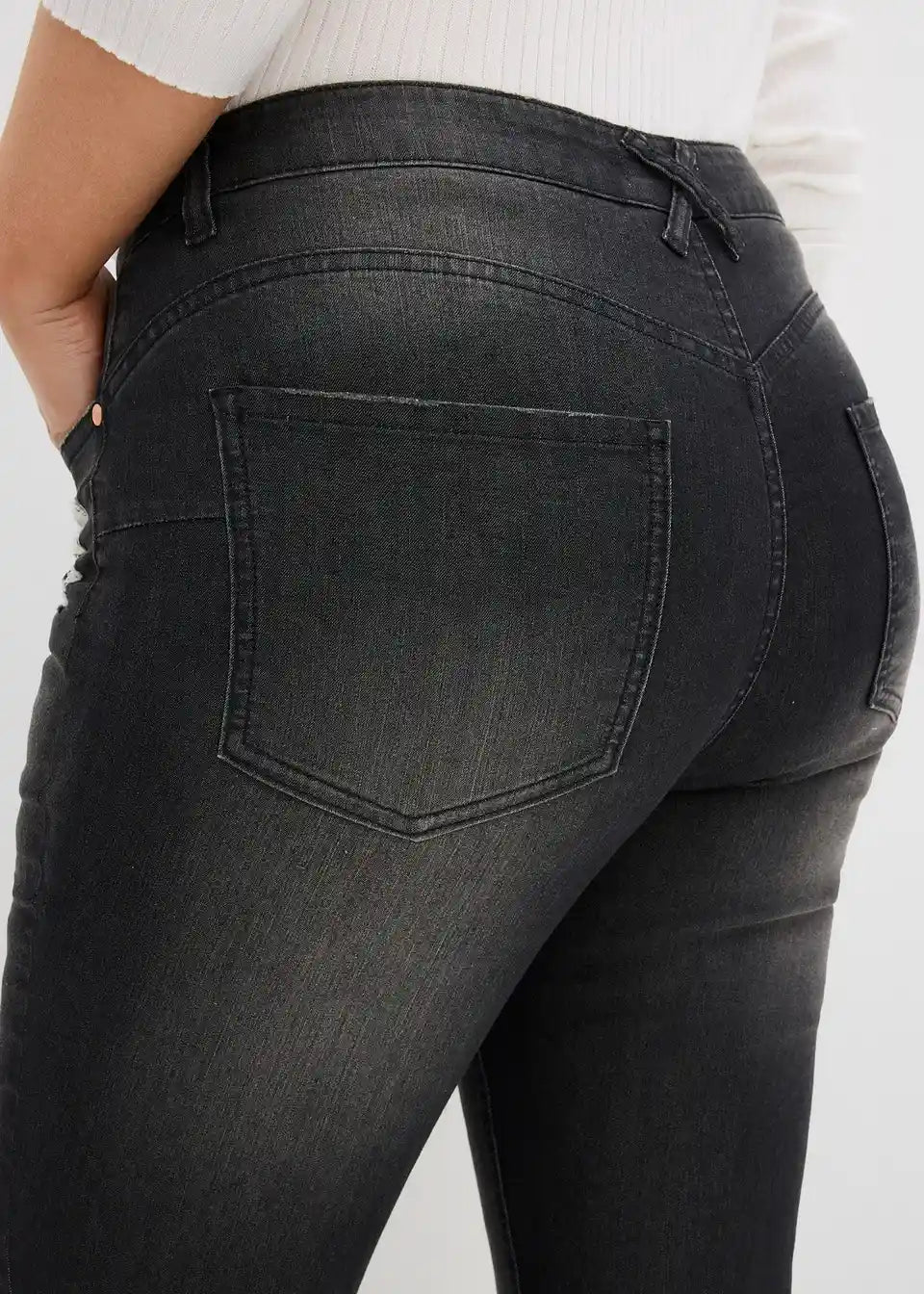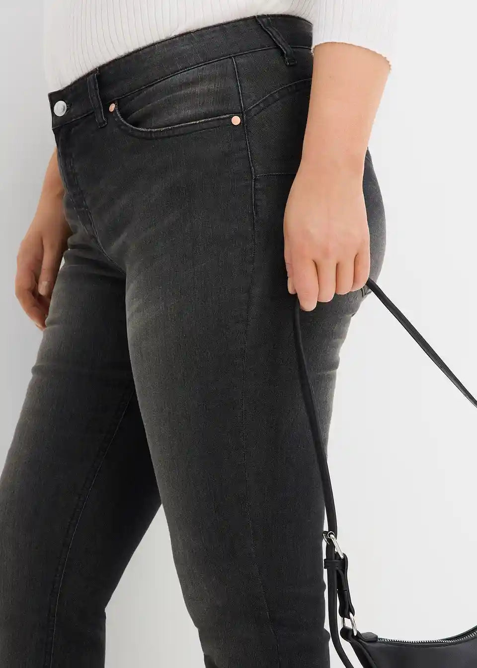 Oprijete kavbojke z visokim pasom in stretch materialom