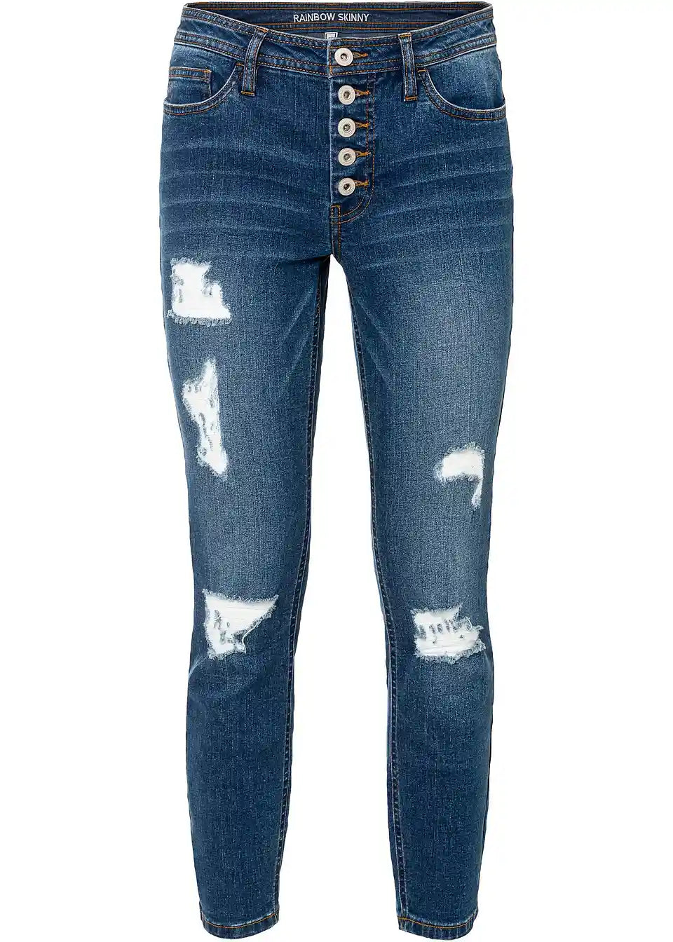 Oprijete kavbojke s srednje visokim pasom in uničenimi predeli