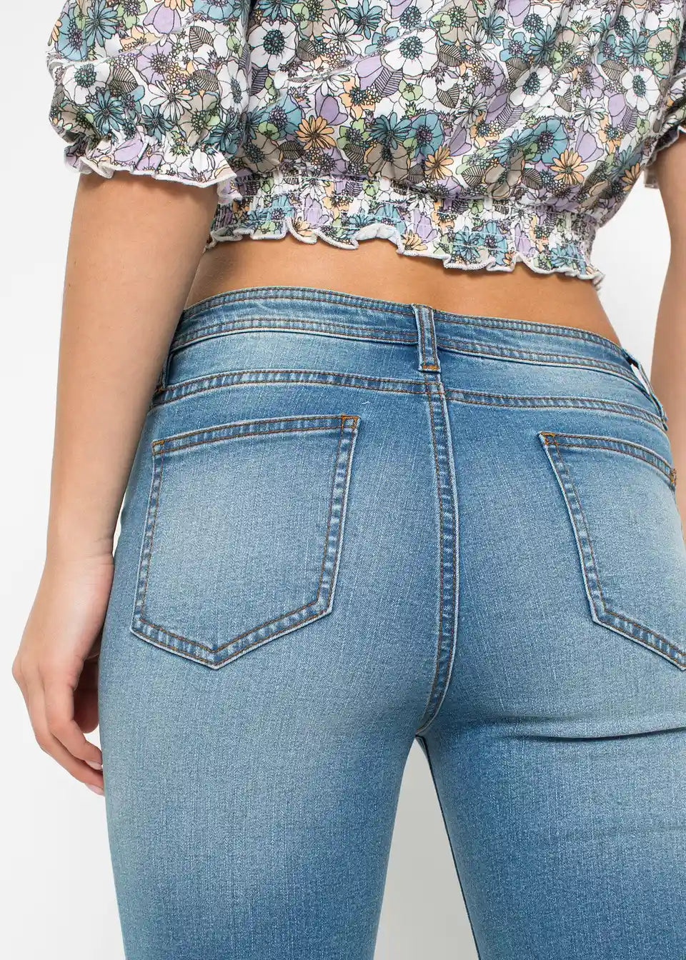Oprijete kavbojke s srednje visokim pasom in uničenimi predeli