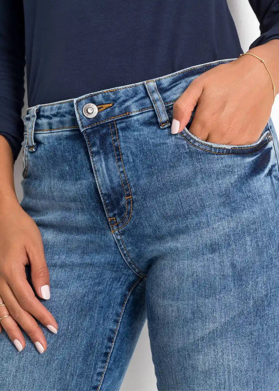 Oprijete kavbojke s srednje visokim pasom in stretch materialom