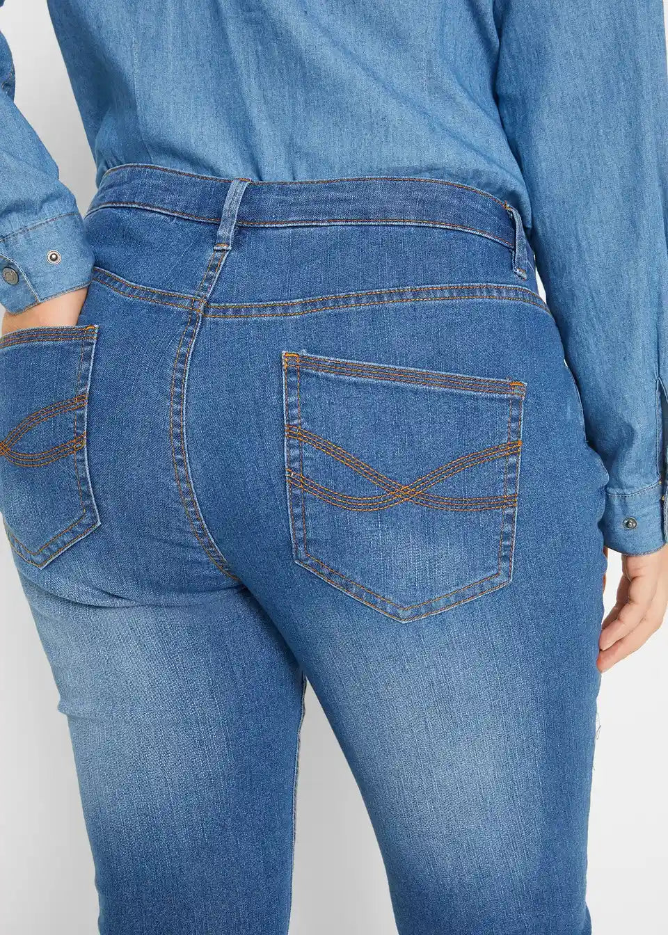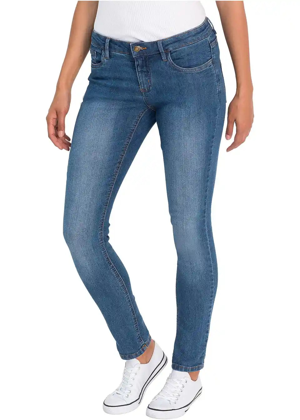 Čudovite udobne raztegljive kavbojke blagovne znamke John Baner so nepogrešljiv osnovni kos, ki ga lahko poljubno kombinirate v prostem času. Zelo ozek kroj hlač na igriv način poudari žensko postavo in zagotavlja odlično udobje med nošenjem. Rahlo obdelan videz spredaj in zadaj daje trendovske poudarke in naredi hlače osupljive v vsakdanjem življenju.