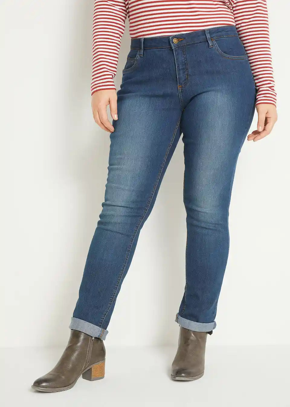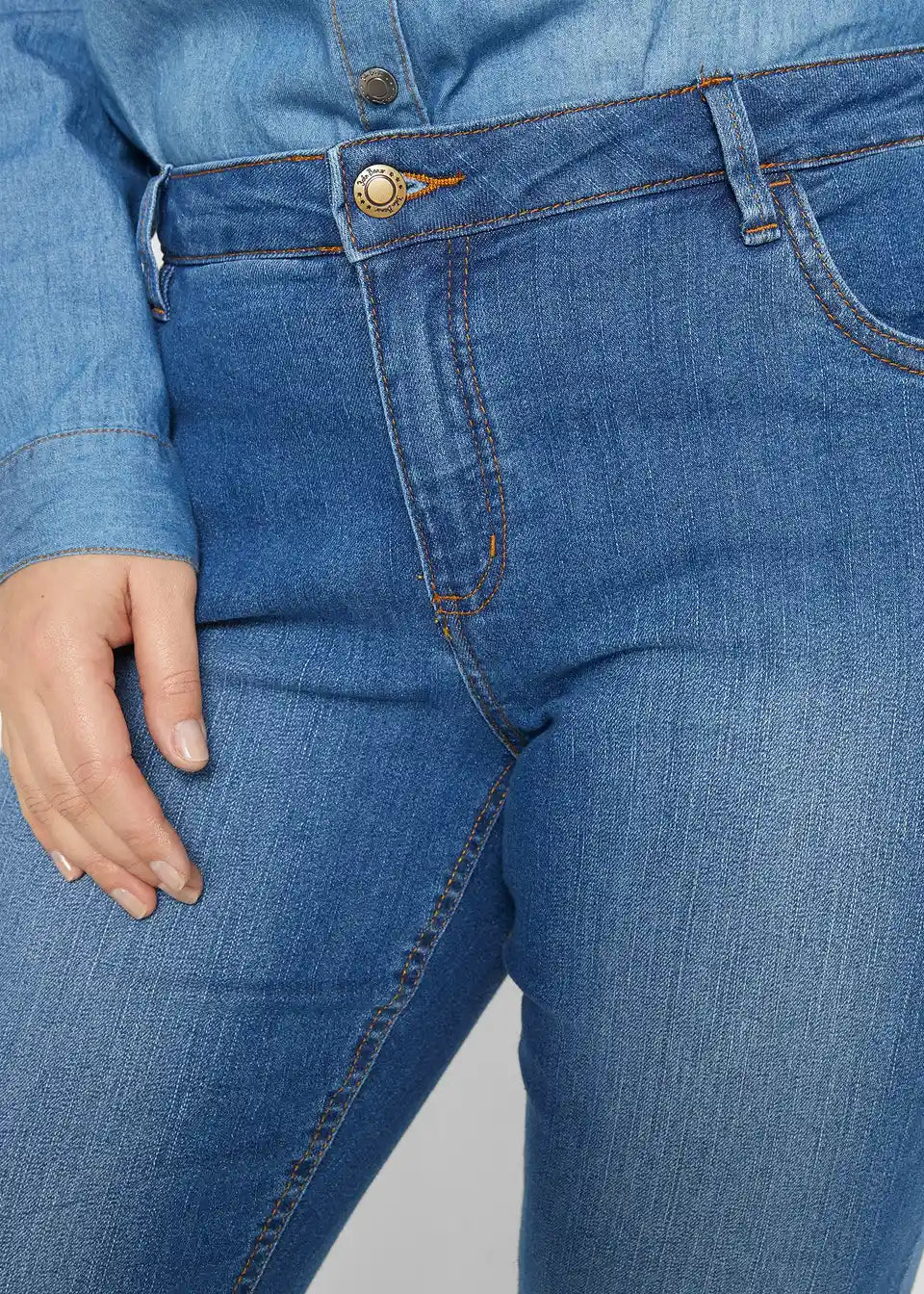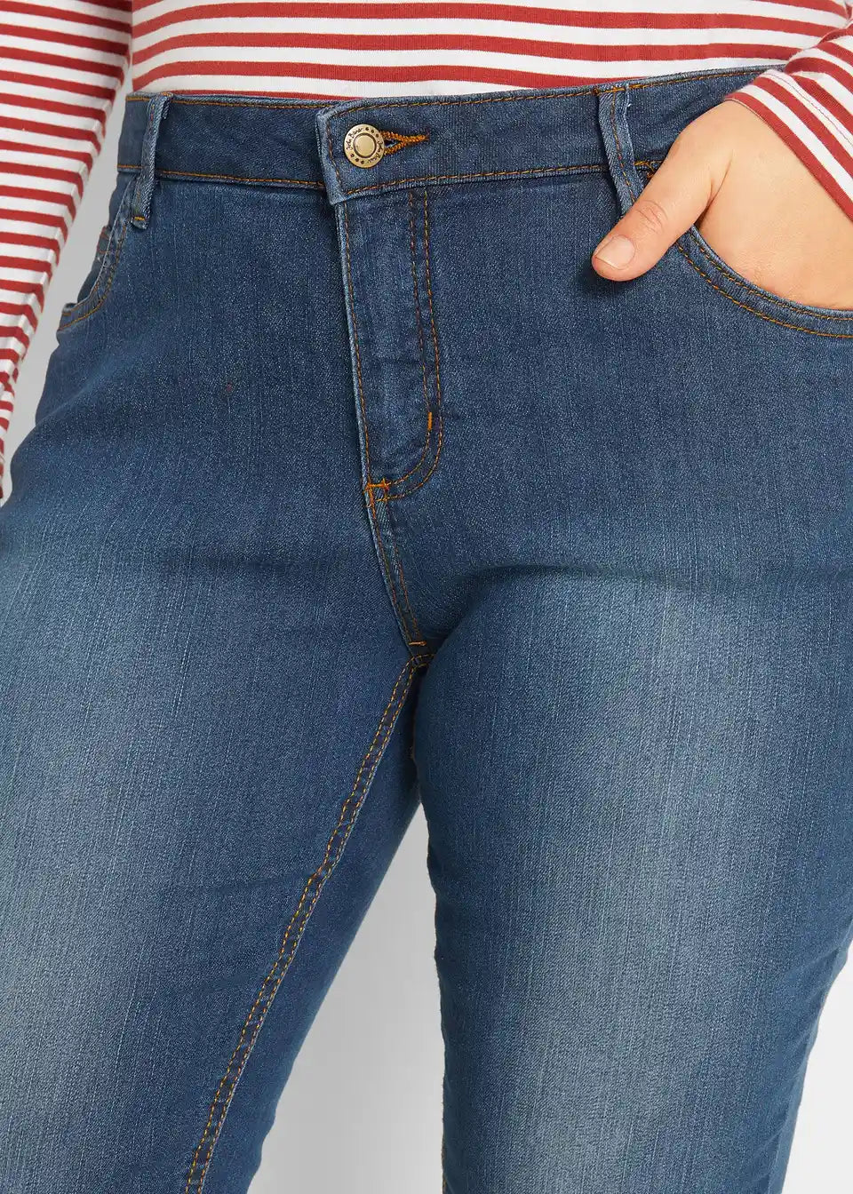 Oprijete kavbojke s srednje visokim pasom in stretch materialom