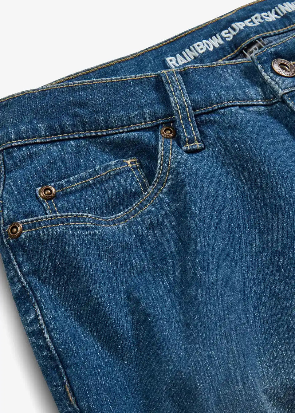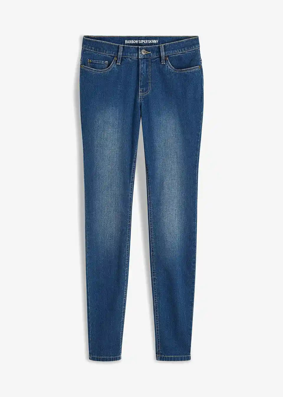 Te Super Skinny Jeans so pravi nepogrešljiv kos za garderobo. Z izjemno ozkim krojem lepo poudarijo noge. Prepričajo z modernim obdelanim videzom in klasičnim petžepnim dizajnom. Trendne hlače omogočajo številne možnosti kombiniranja: bodisi z ležerno majico in supergami ali z moderno bluzo in gležnarji – z njimi so možni številni individualni stili.